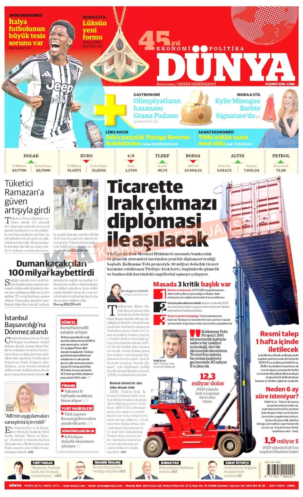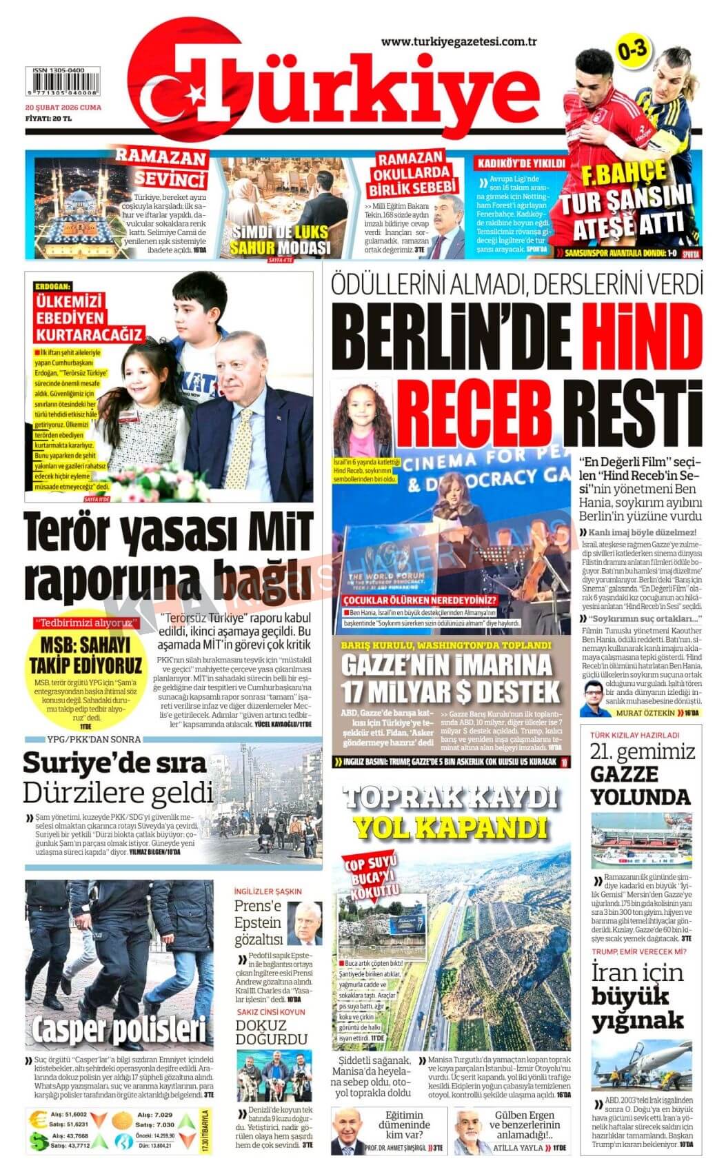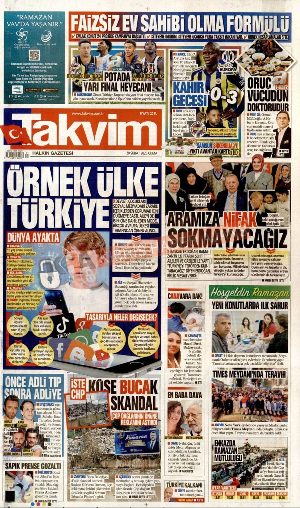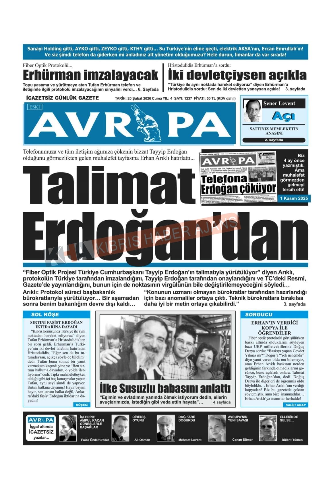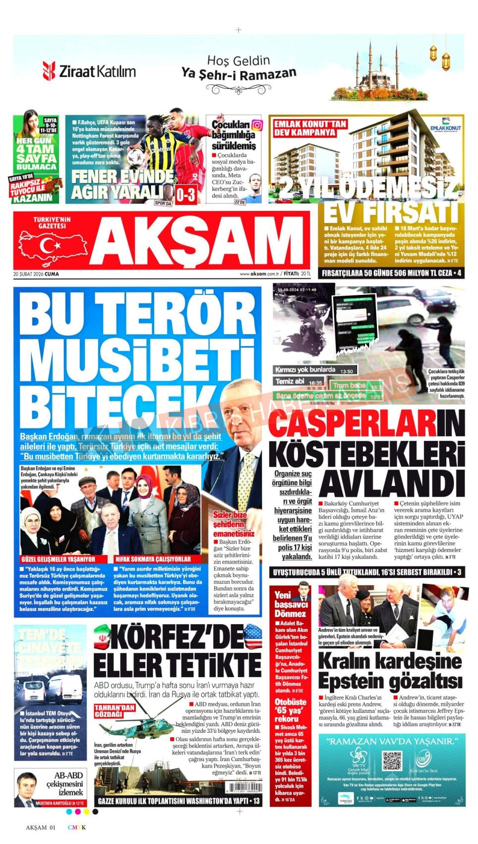 KKTC-TC Gazetelerinde Bugün (20 ŞUBAT 2026)