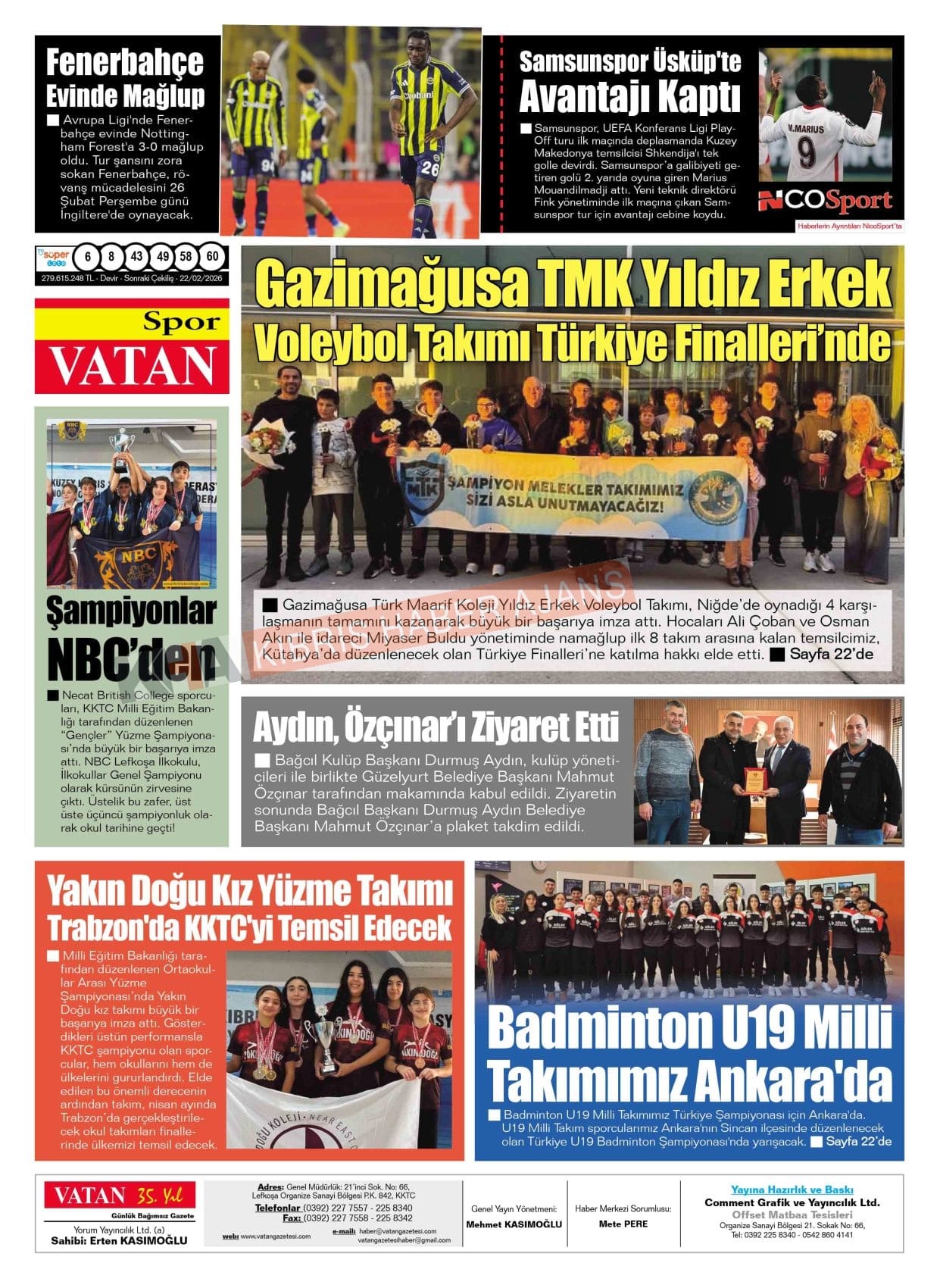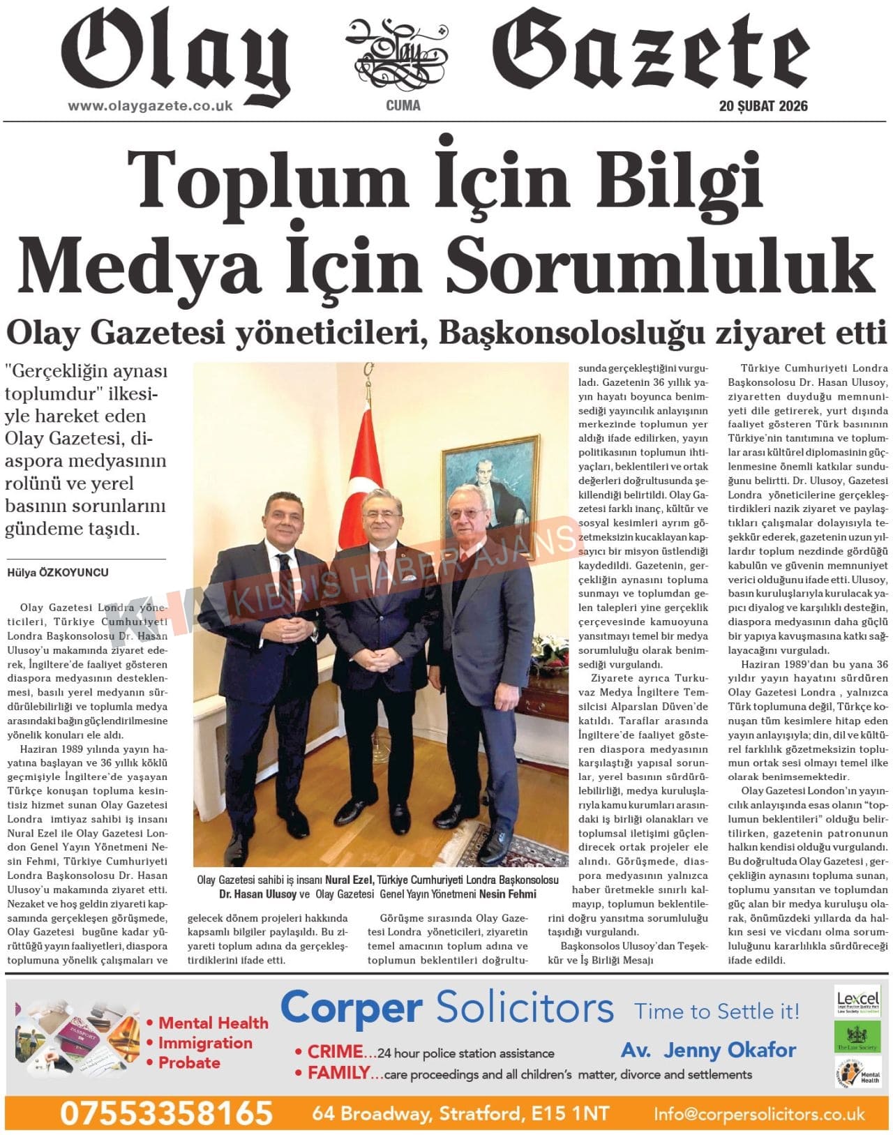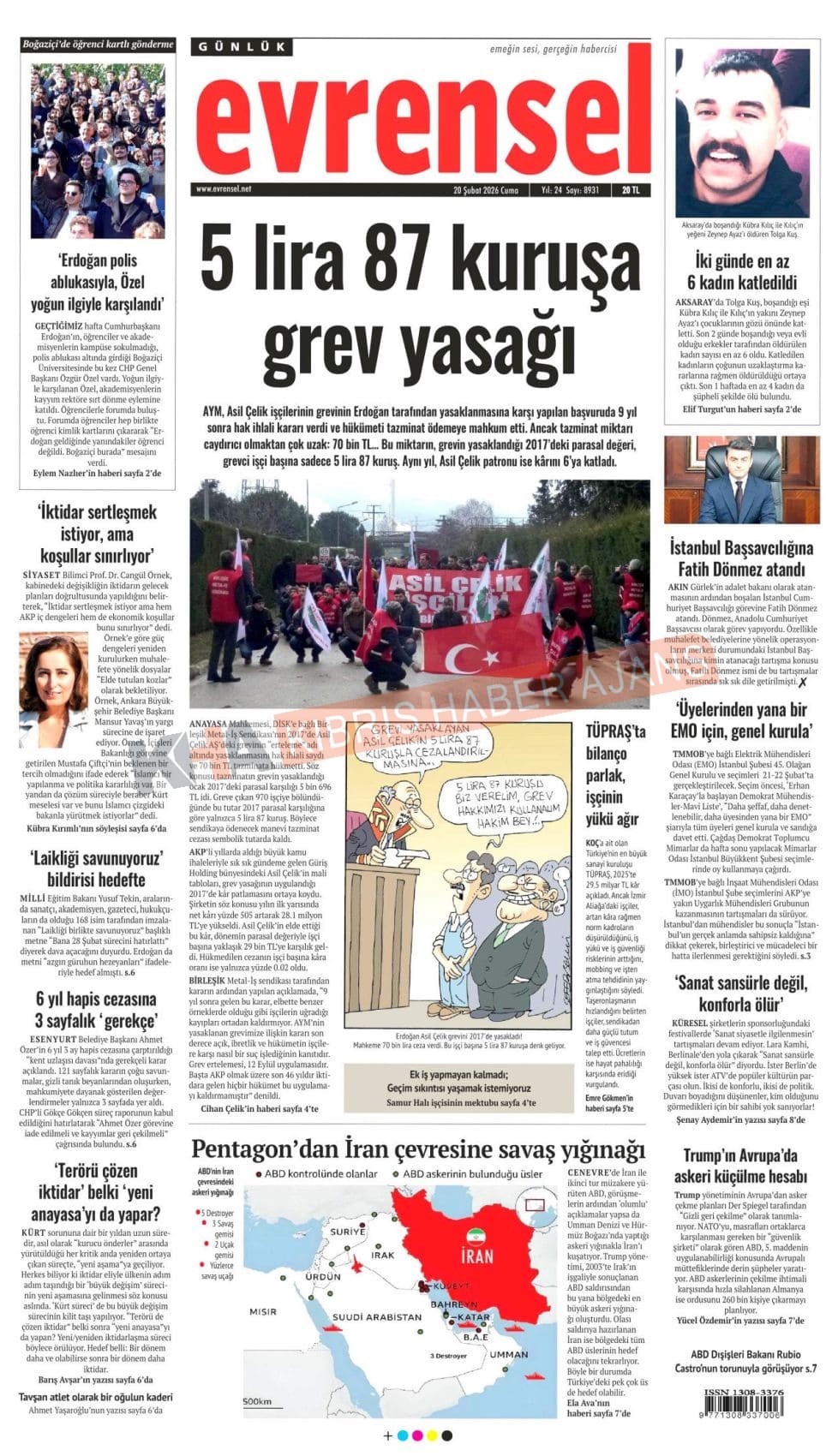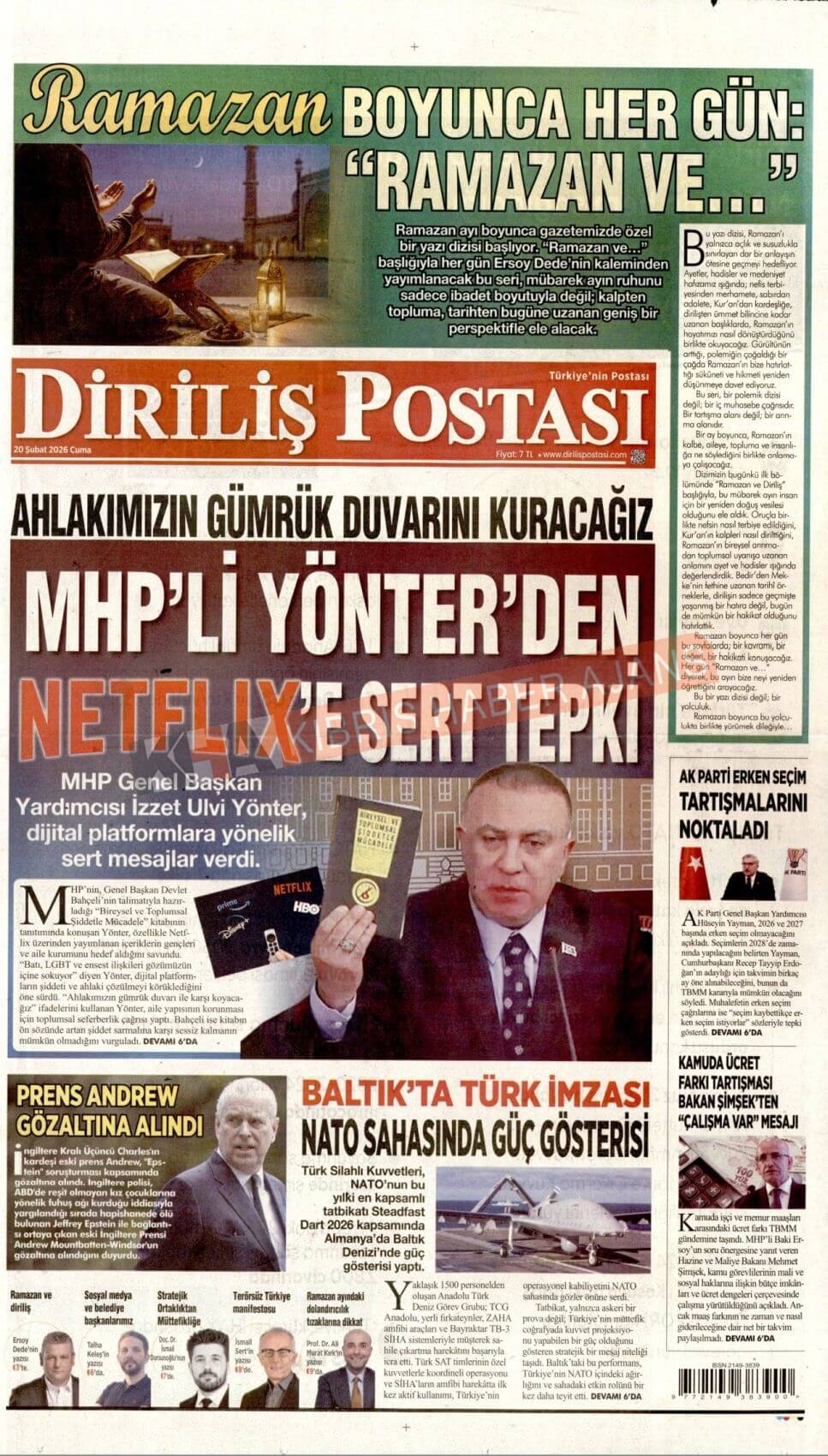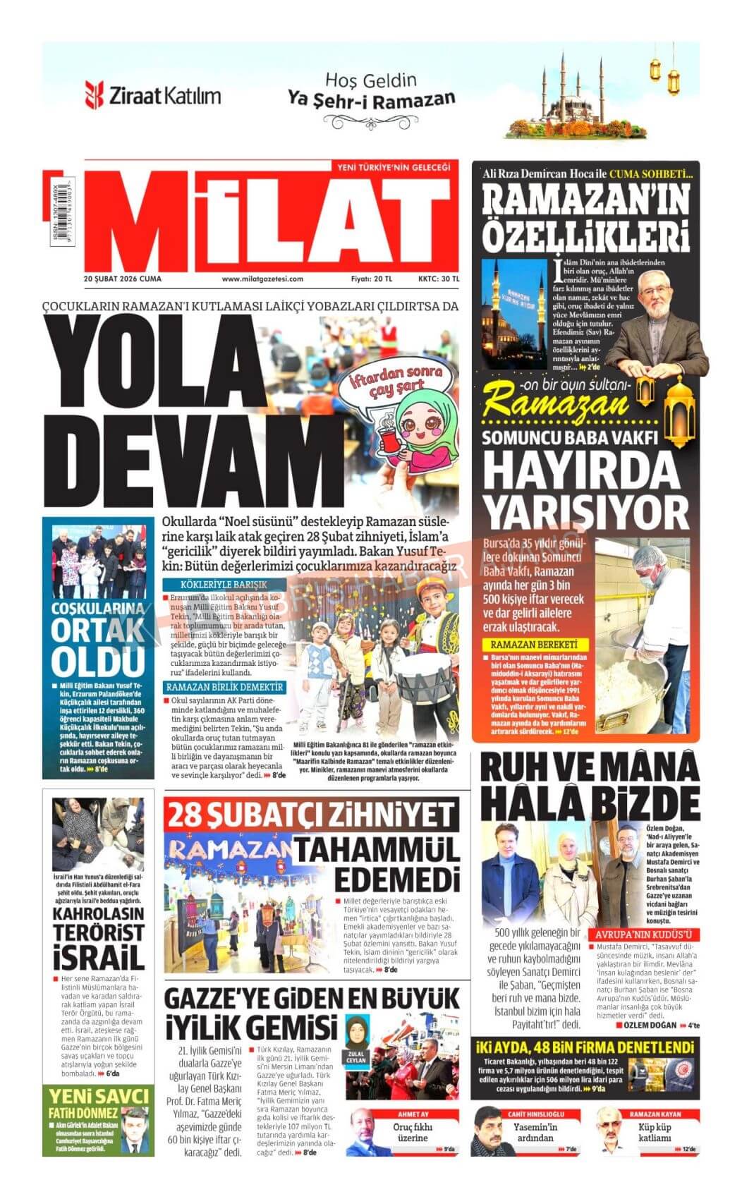 KKTC-TC Gazetelerinde Bugün (20 ŞUBAT 2026)