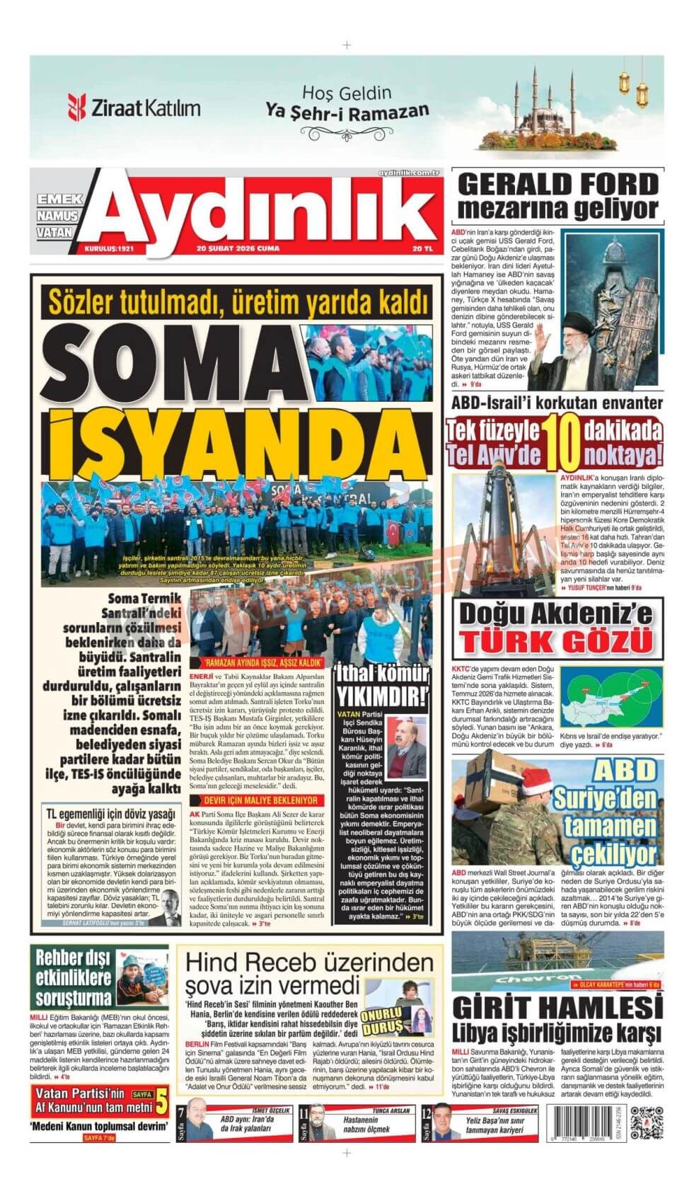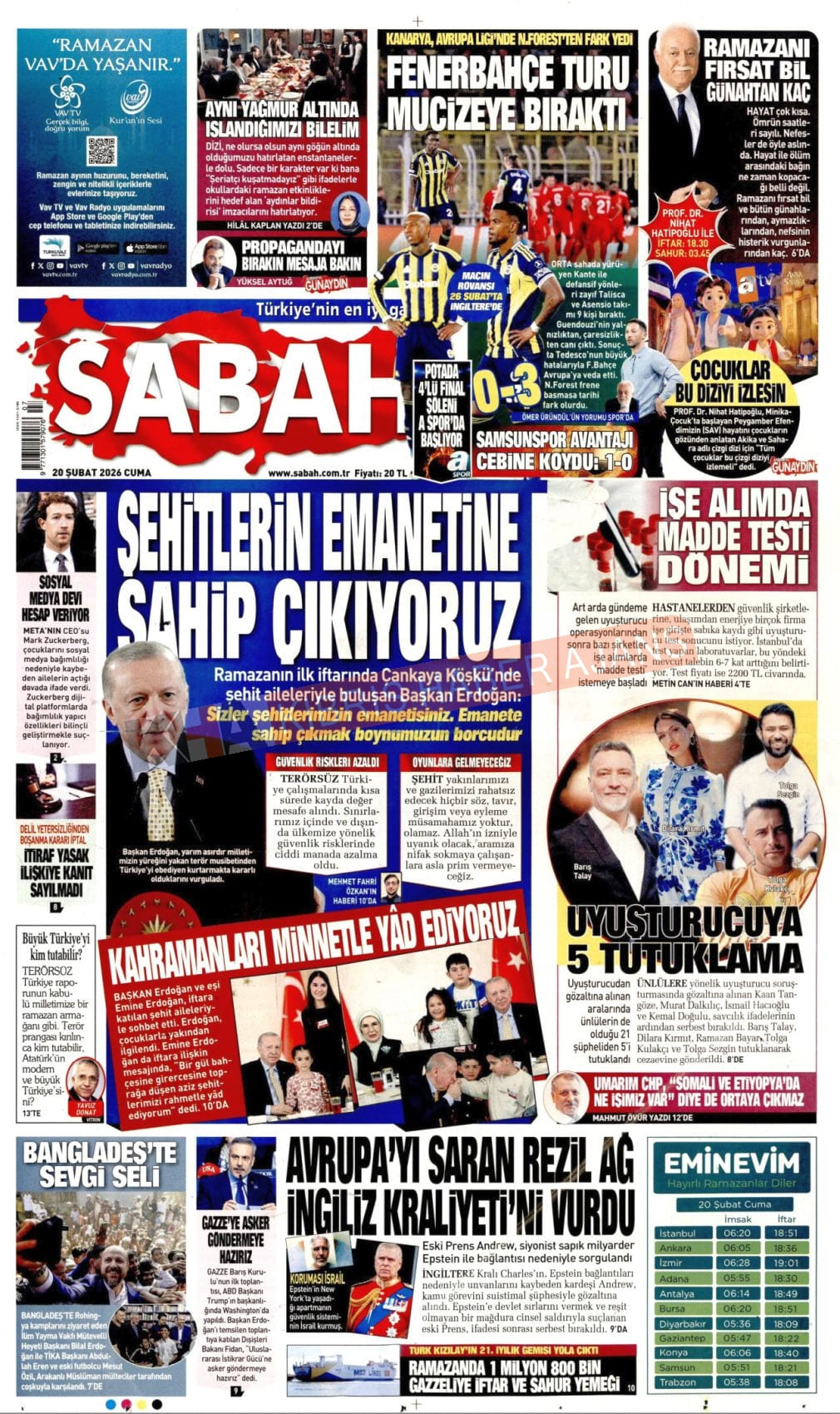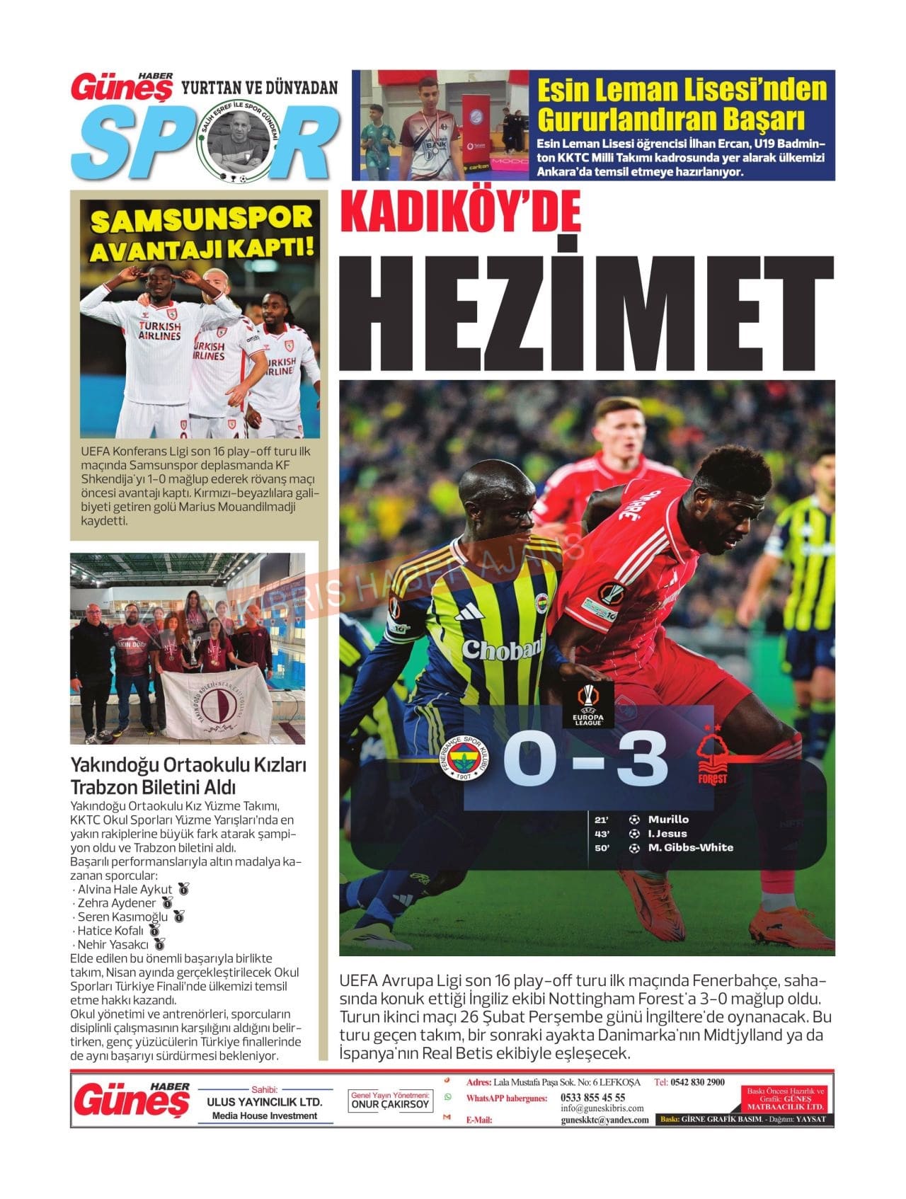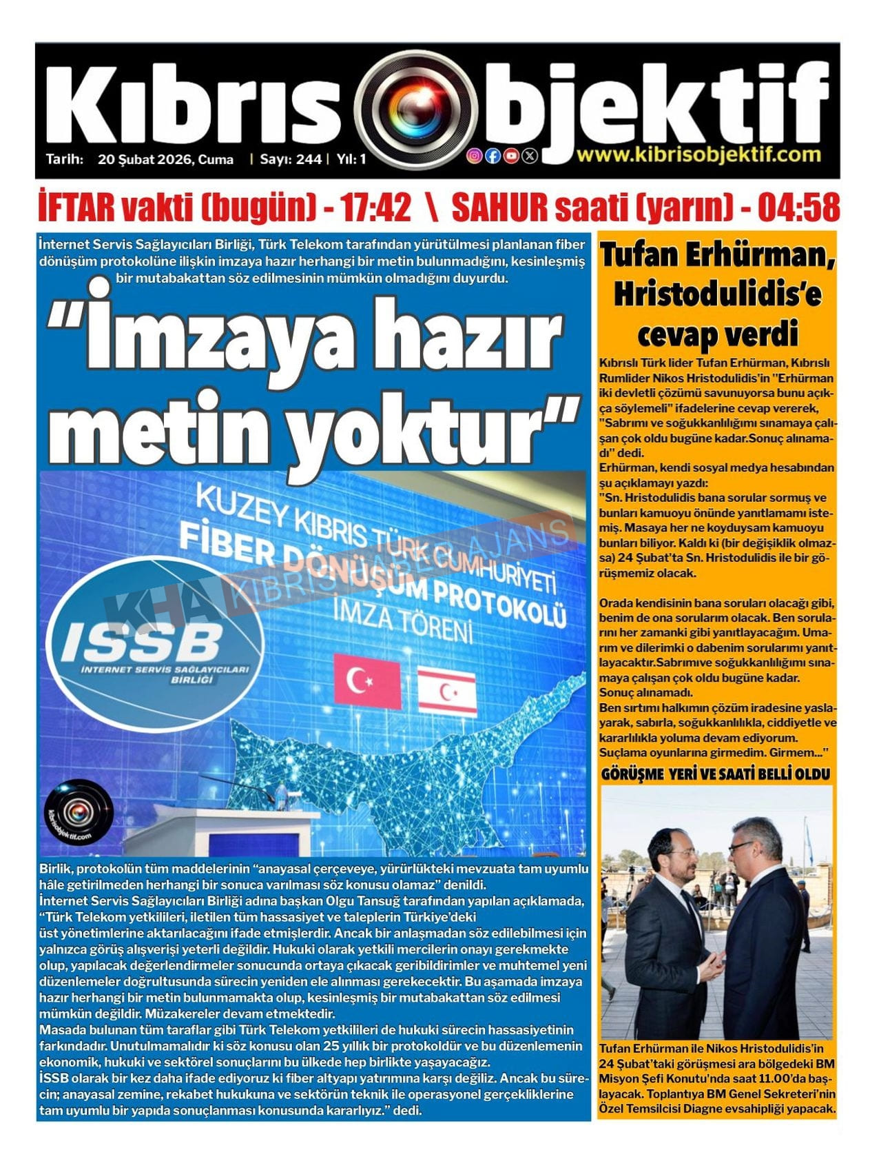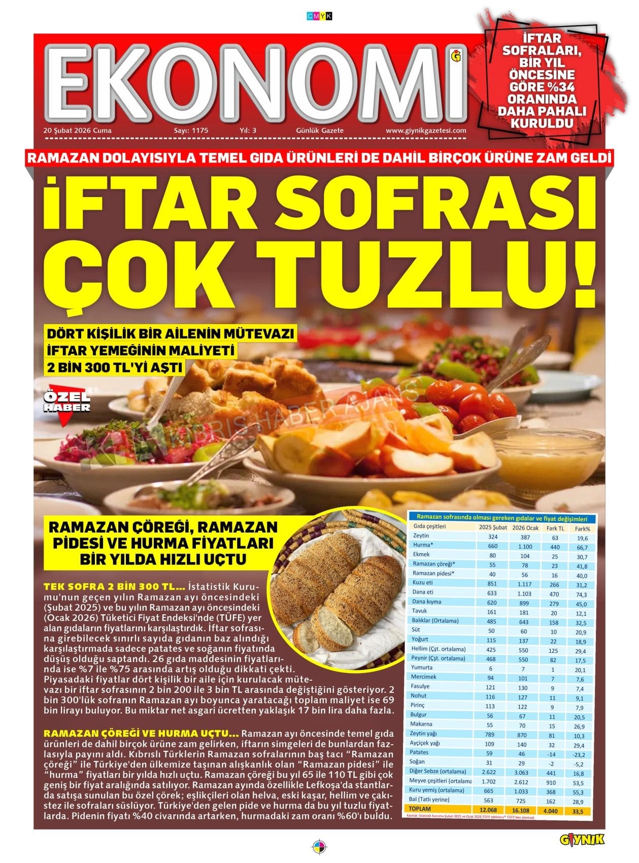 KKTC-TC Gazetelerinde Bugün (20 ŞUBAT 2026)