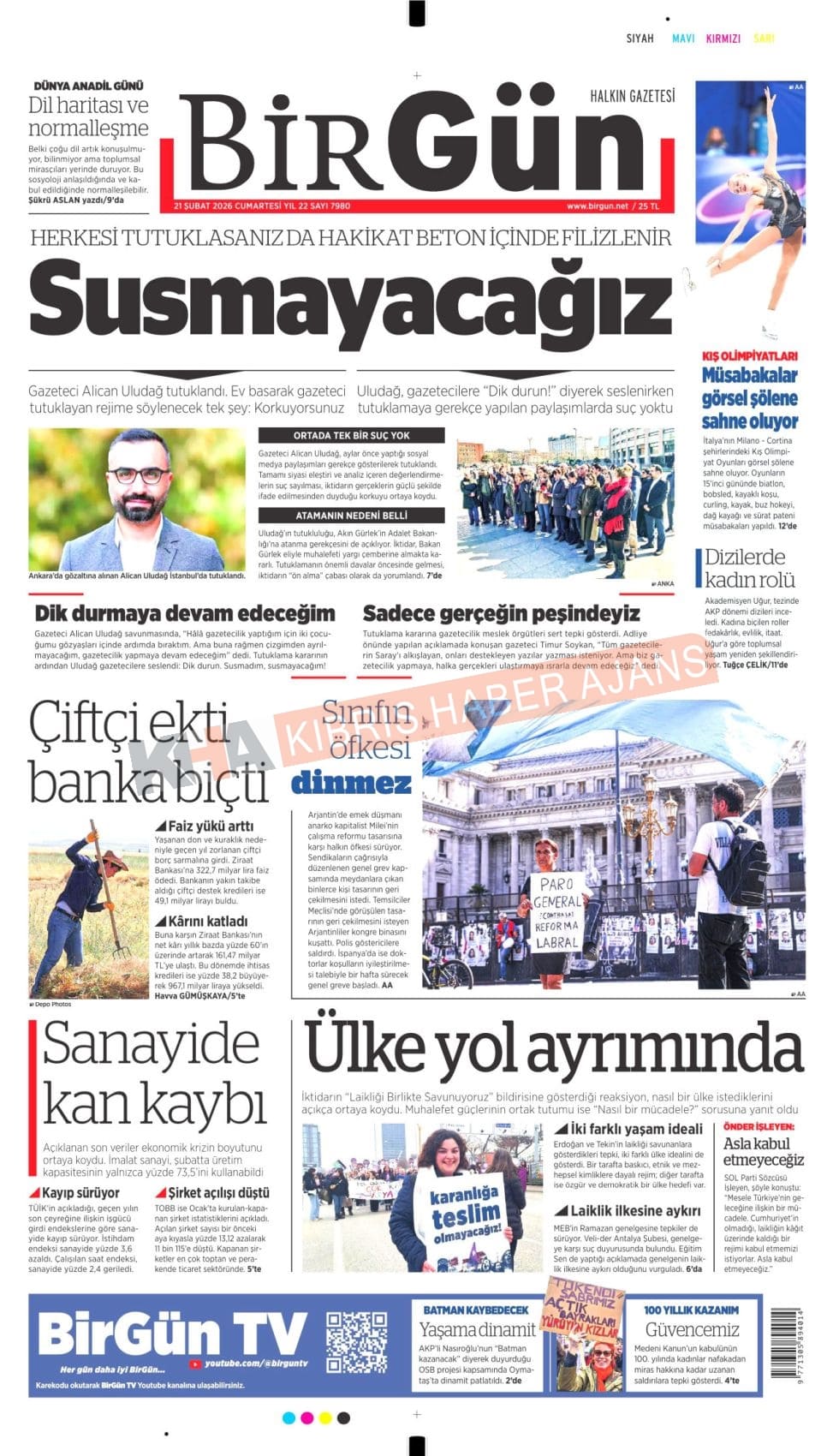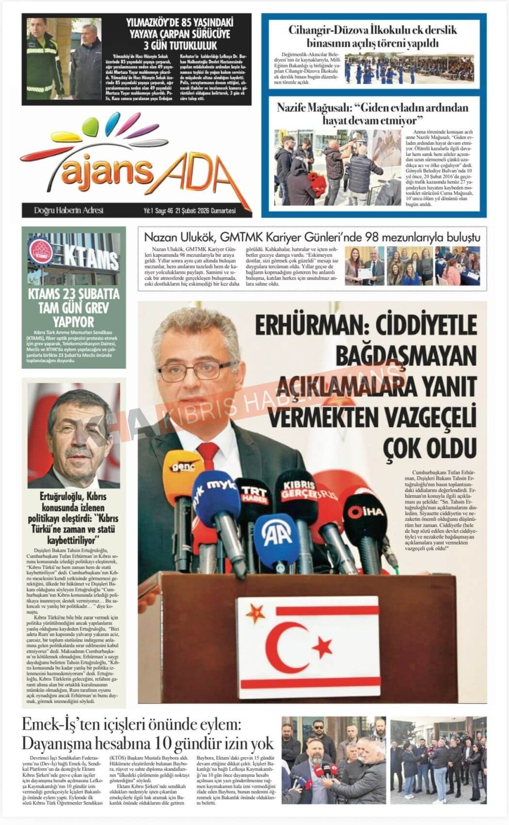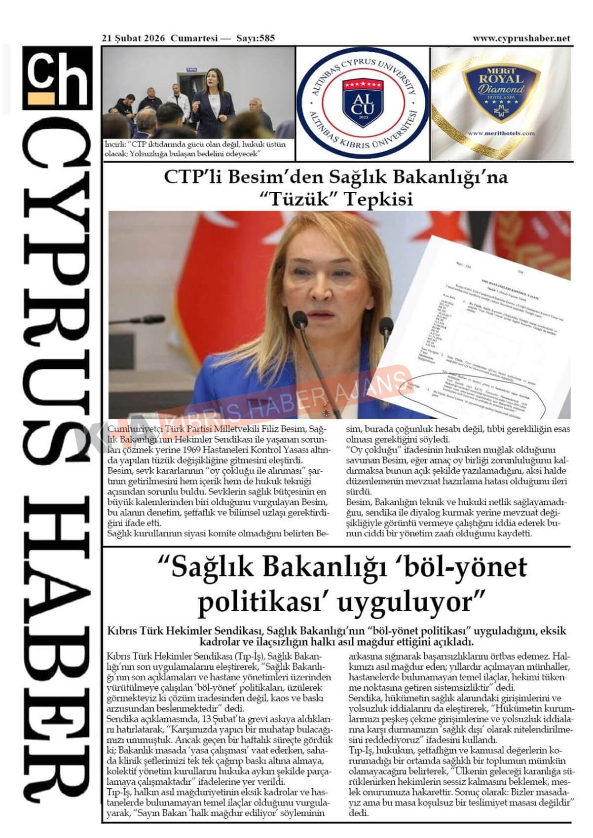 Sitede yayınlanan gazetelerdeki içeriklerden gazete sahipleri sorumludur. Yayınlanan gazeteler ve içeriklerinden Kıbrıs Haber Ajans ve Ajans Cyprus sorumlu tutulamaz.