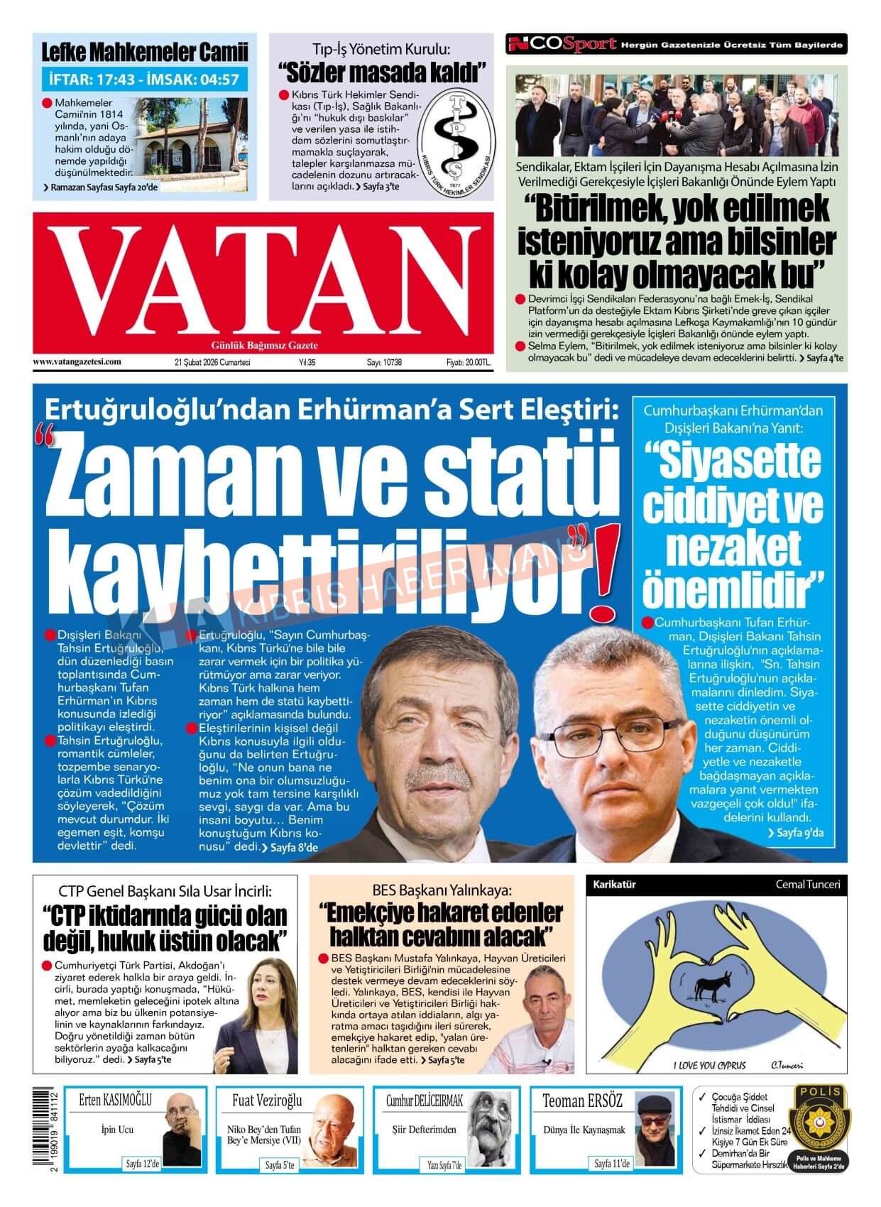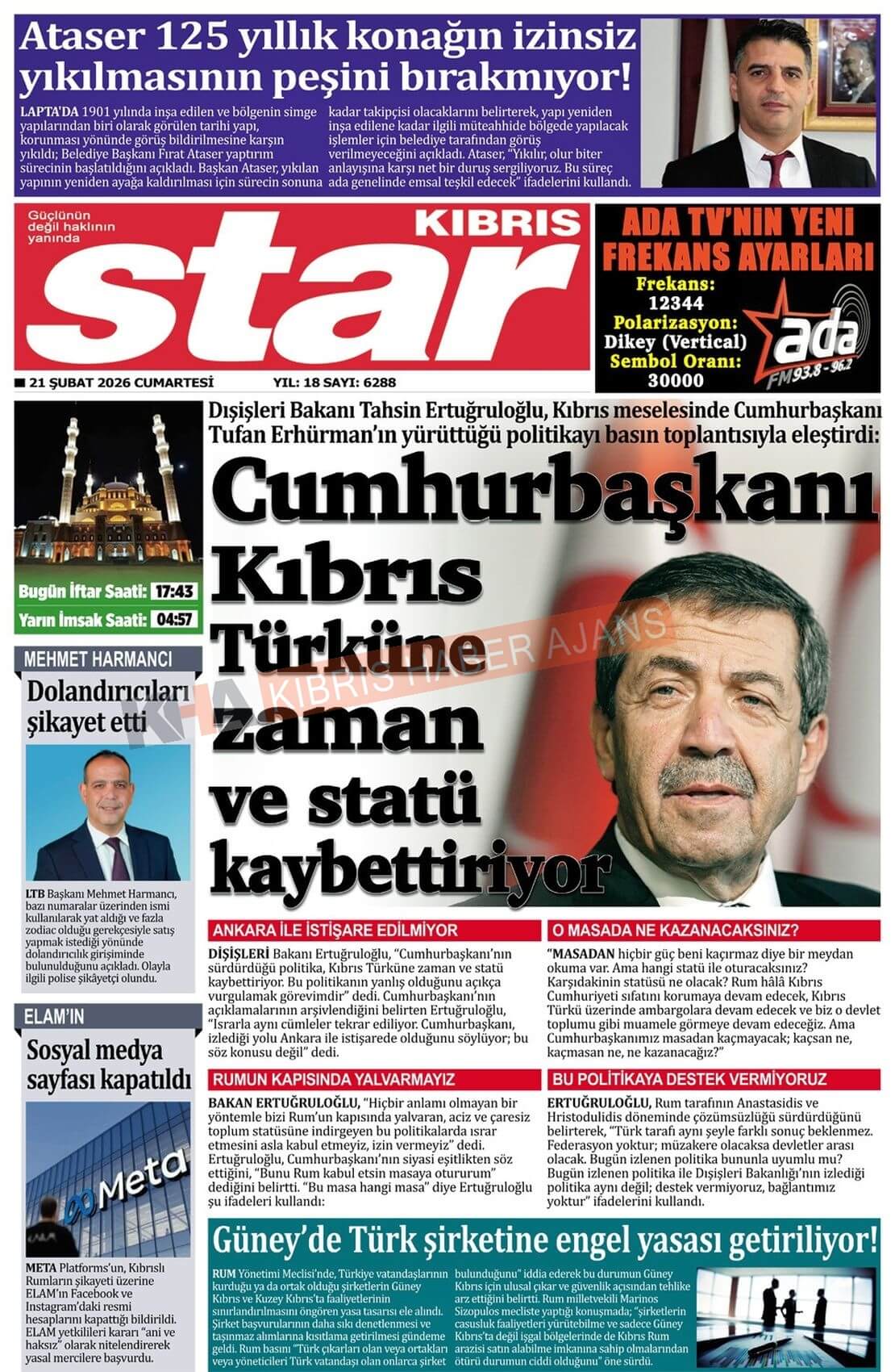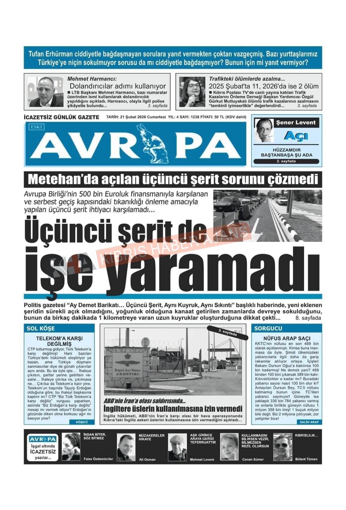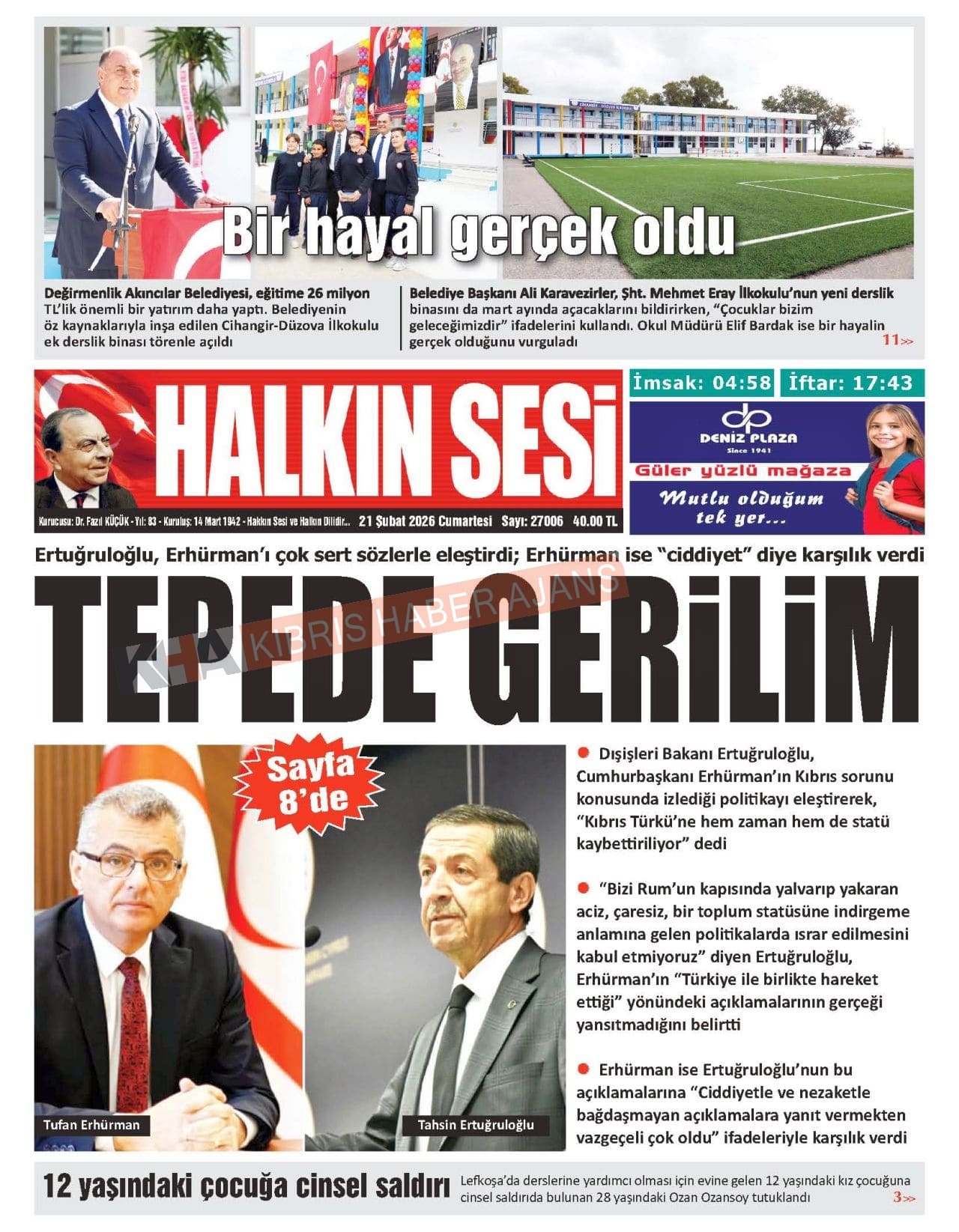 Sitede yayınlanan gazetelerdeki içeriklerden gazete sahipleri sorumludur. Yayınlanan gazeteler ve içeriklerinden Kıbrıs Haber Ajans ve Ajans Cyprus sorumlu tutulamaz.