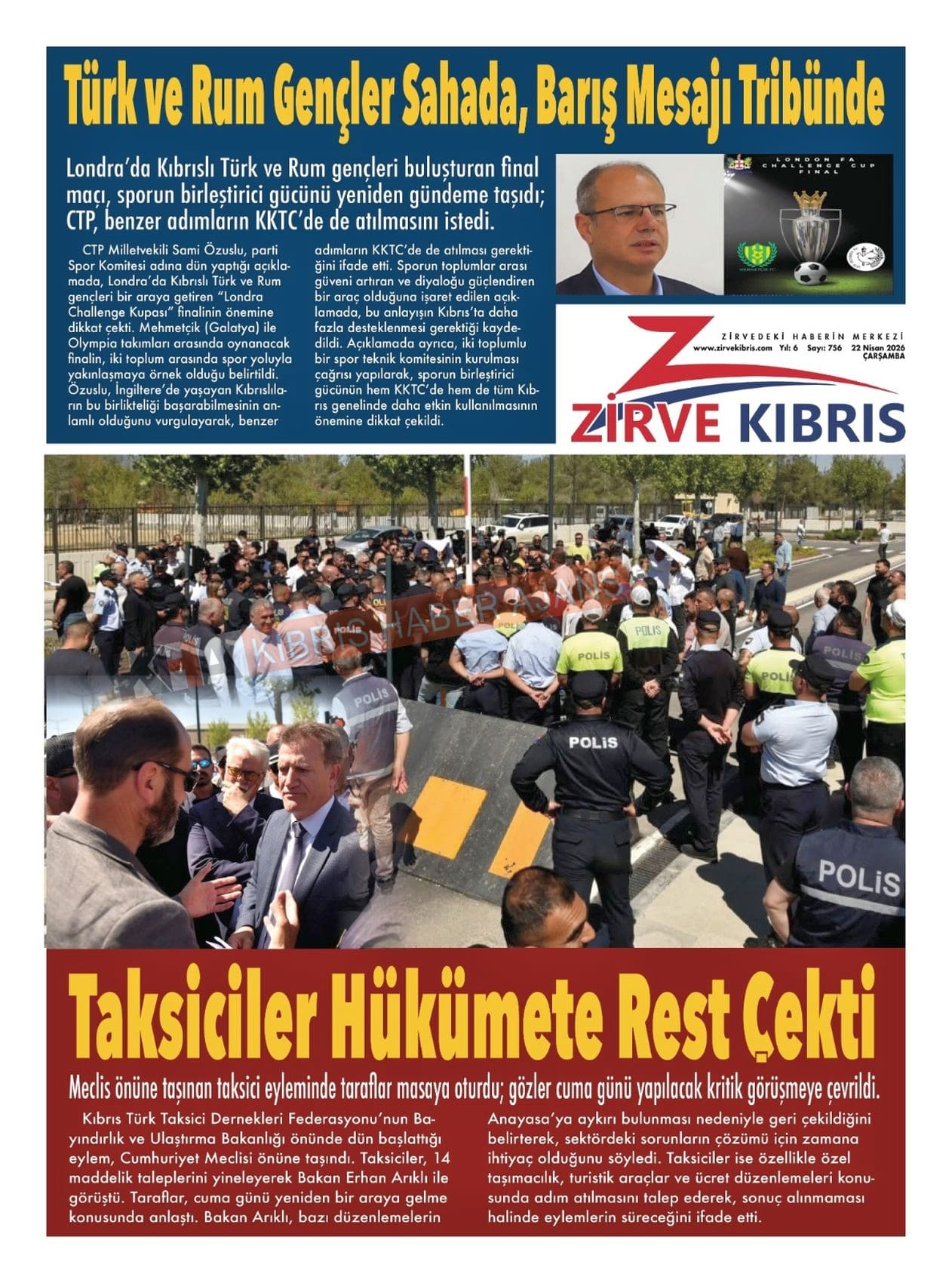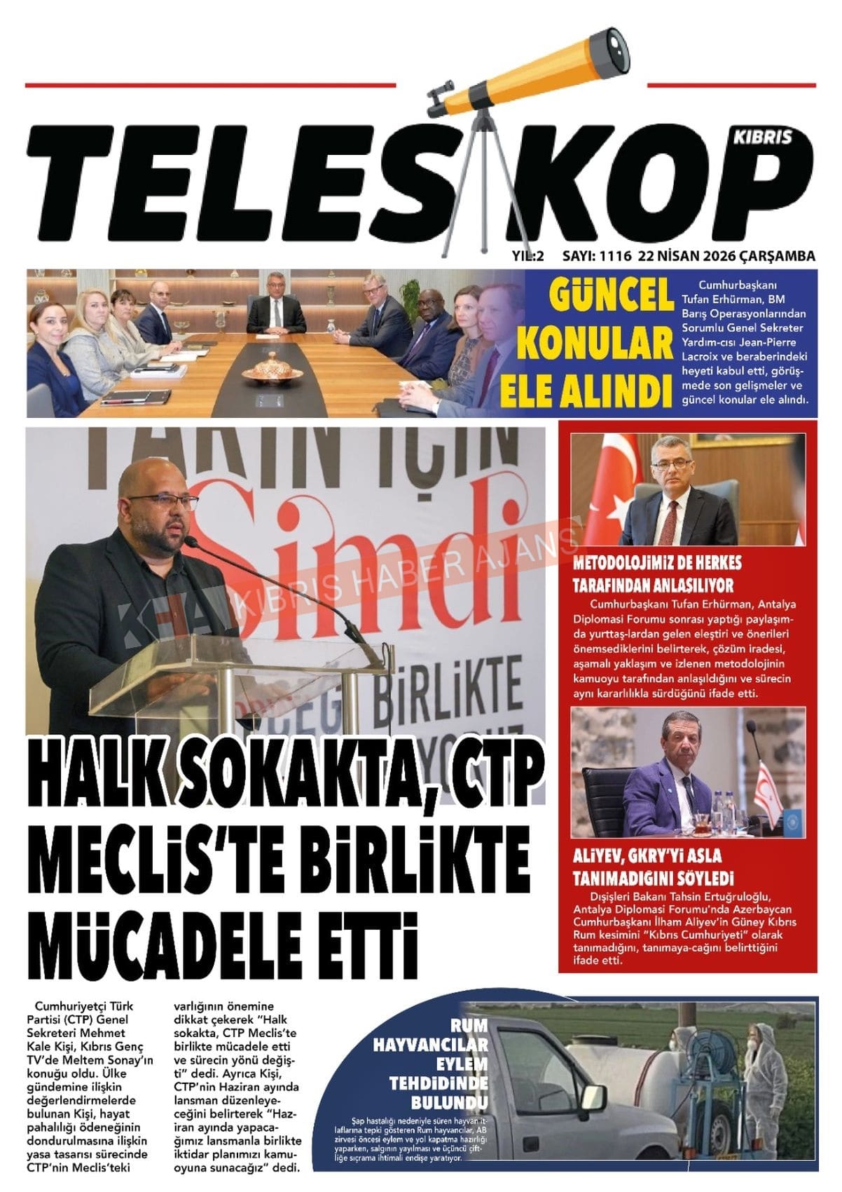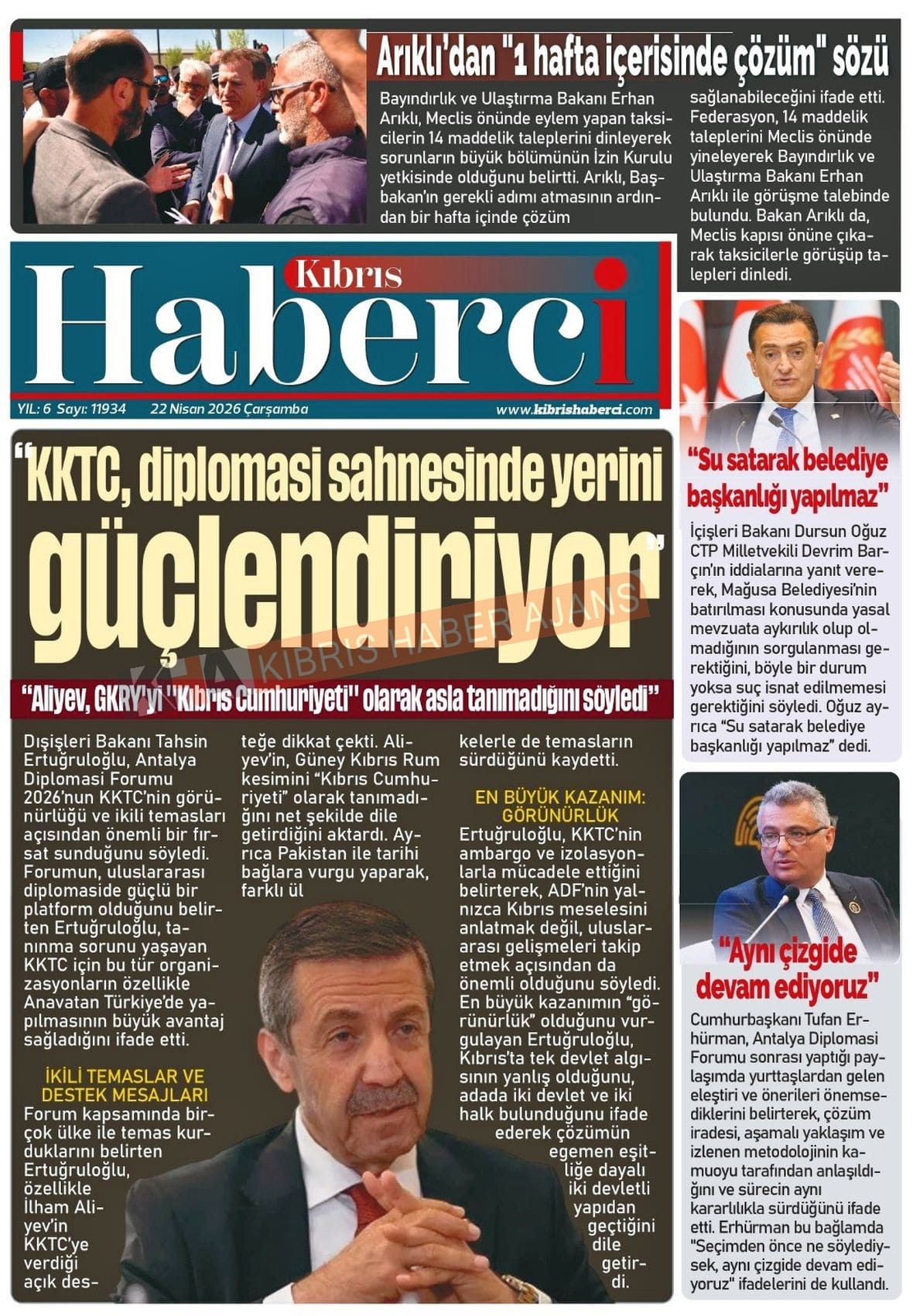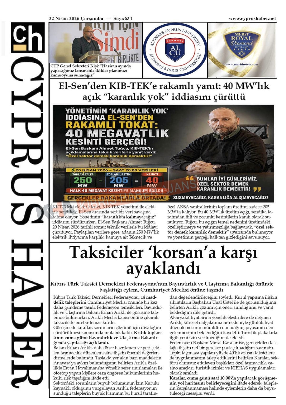 Sitede yayınlanan gazetelerdeki içeriklerden gazete sahipleri sorumludur. Yayınlanan gazeteler ve içeriklerinden Kıbrıs Haber Ajans ve Ajans Cyprus sorumlu tutulamaz.