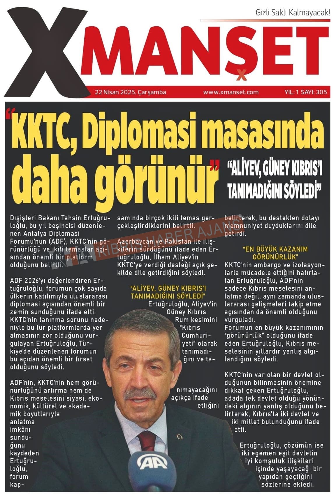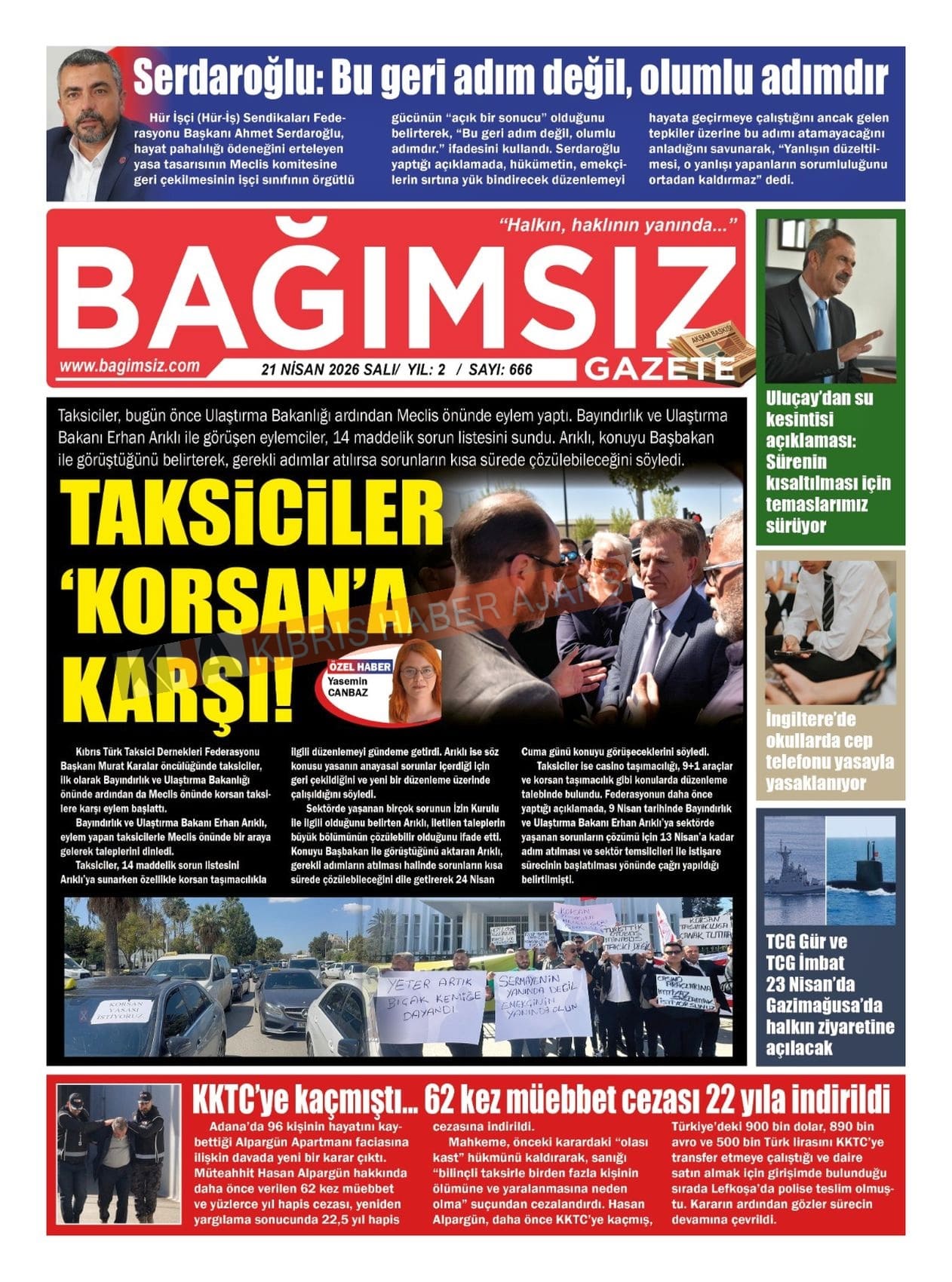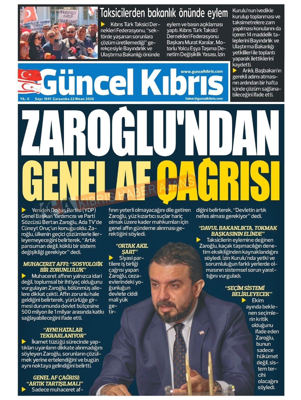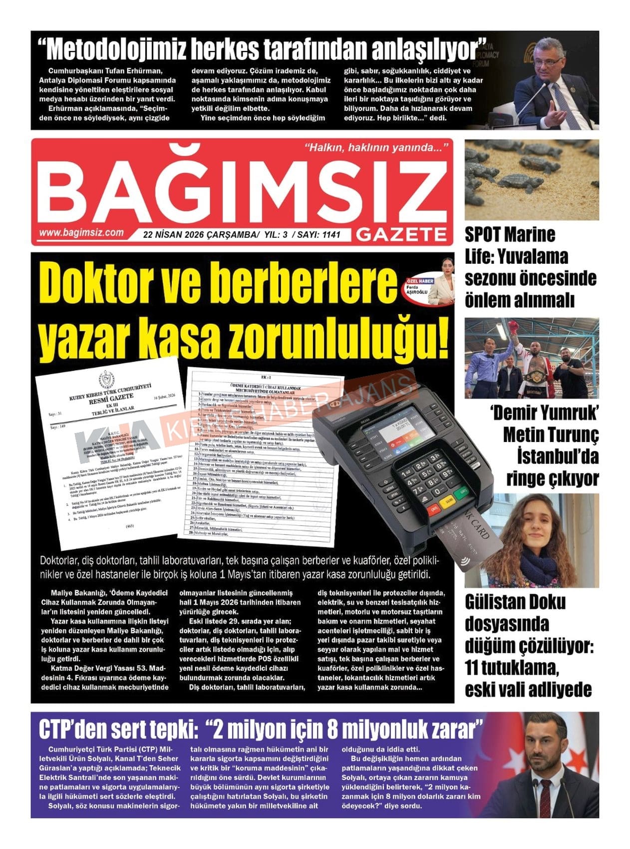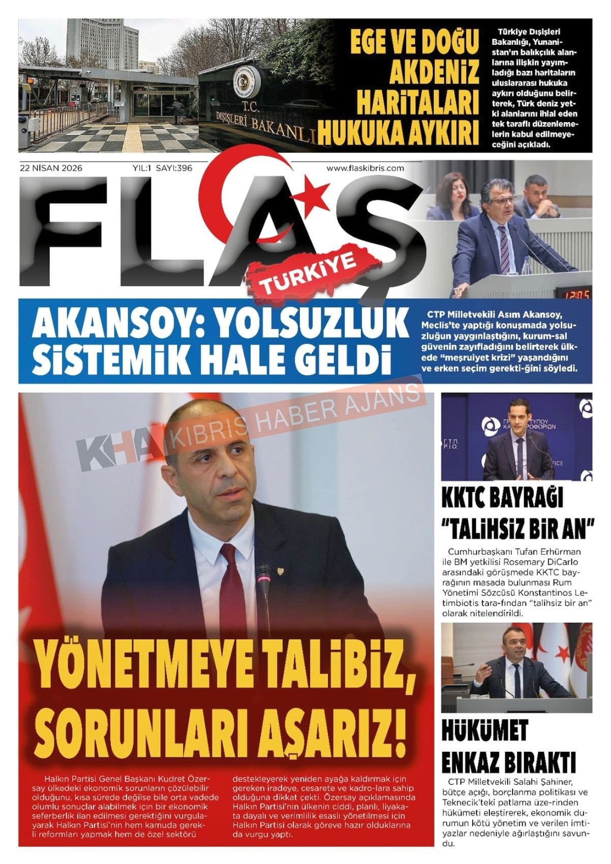 Sitede yayınlanan gazetelerdeki içeriklerden gazete sahipleri sorumludur. Yayınlanan gazeteler ve içeriklerinden Kıbrıs Haber Ajans ve Ajans Cyprus sorumlu tutulamaz.