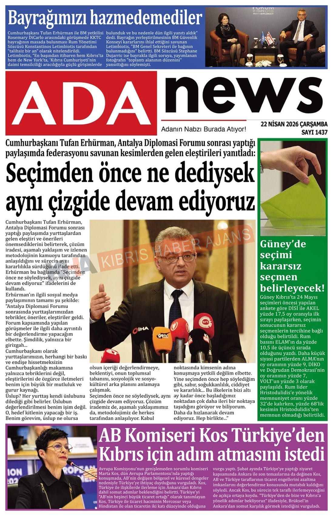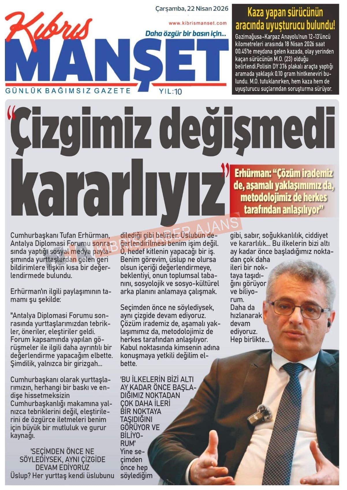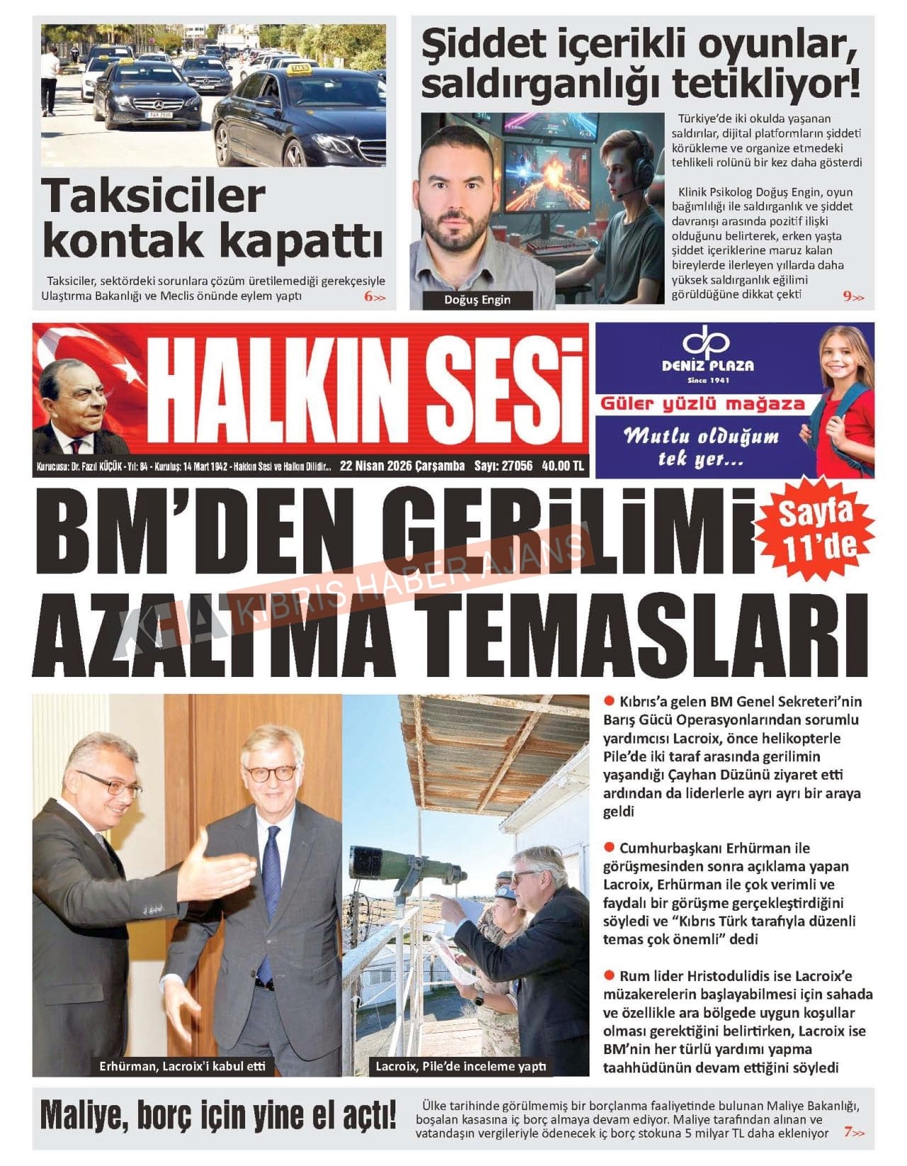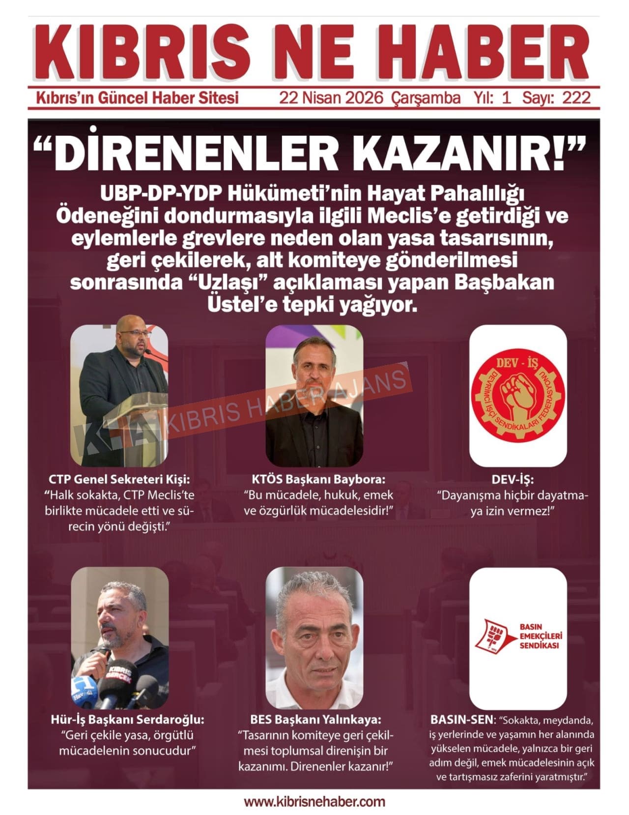 Sitede yayınlanan gazetelerdeki içeriklerden gazete sahipleri sorumludur. Yayınlanan gazeteler ve içeriklerinden Kıbrıs Haber Ajans ve Ajans Cyprus sorumlu tutulamaz.