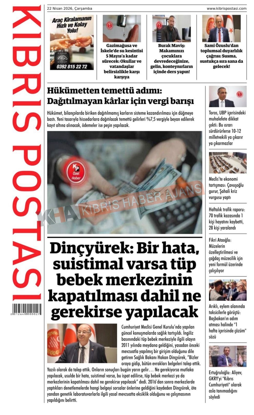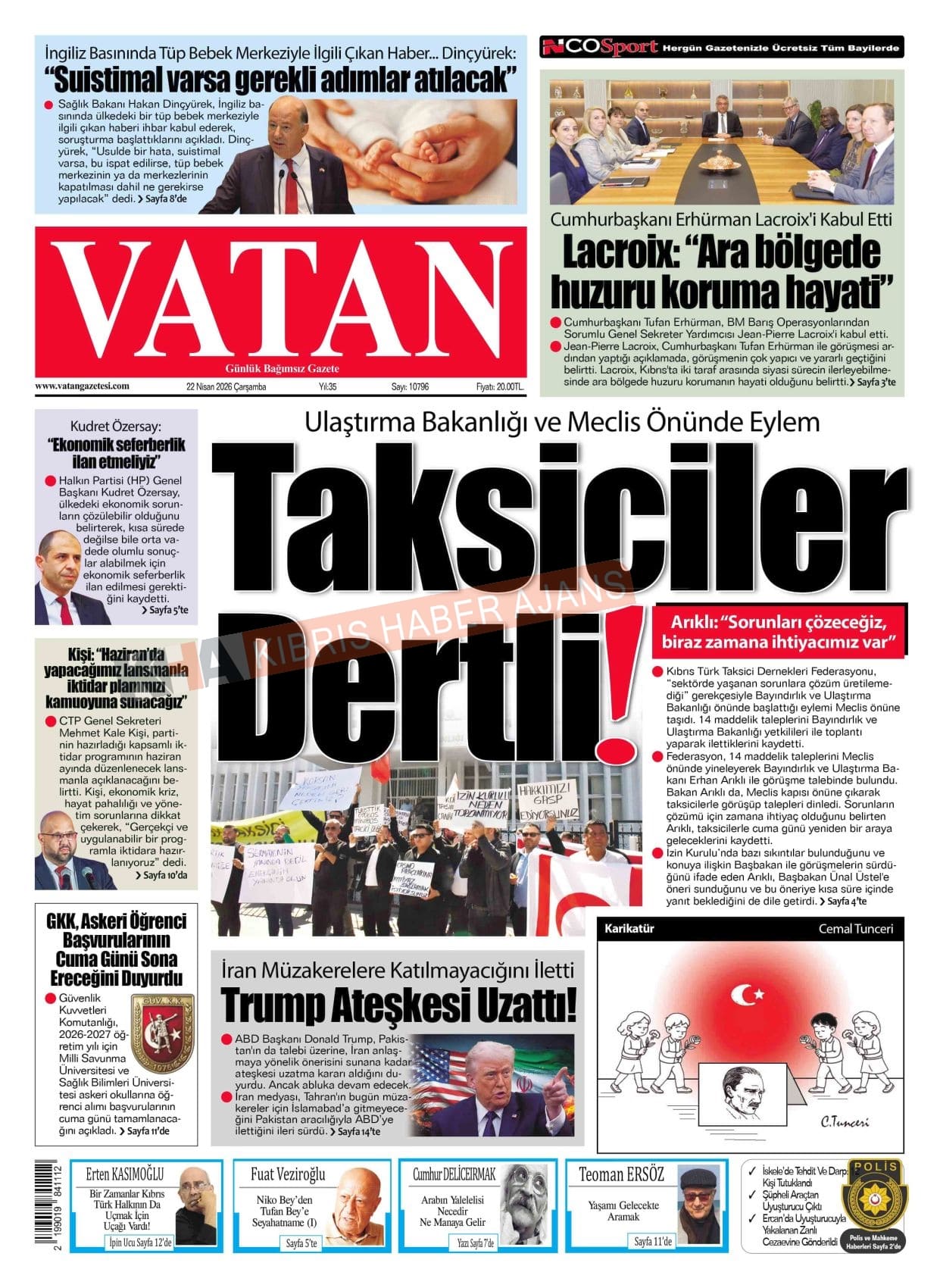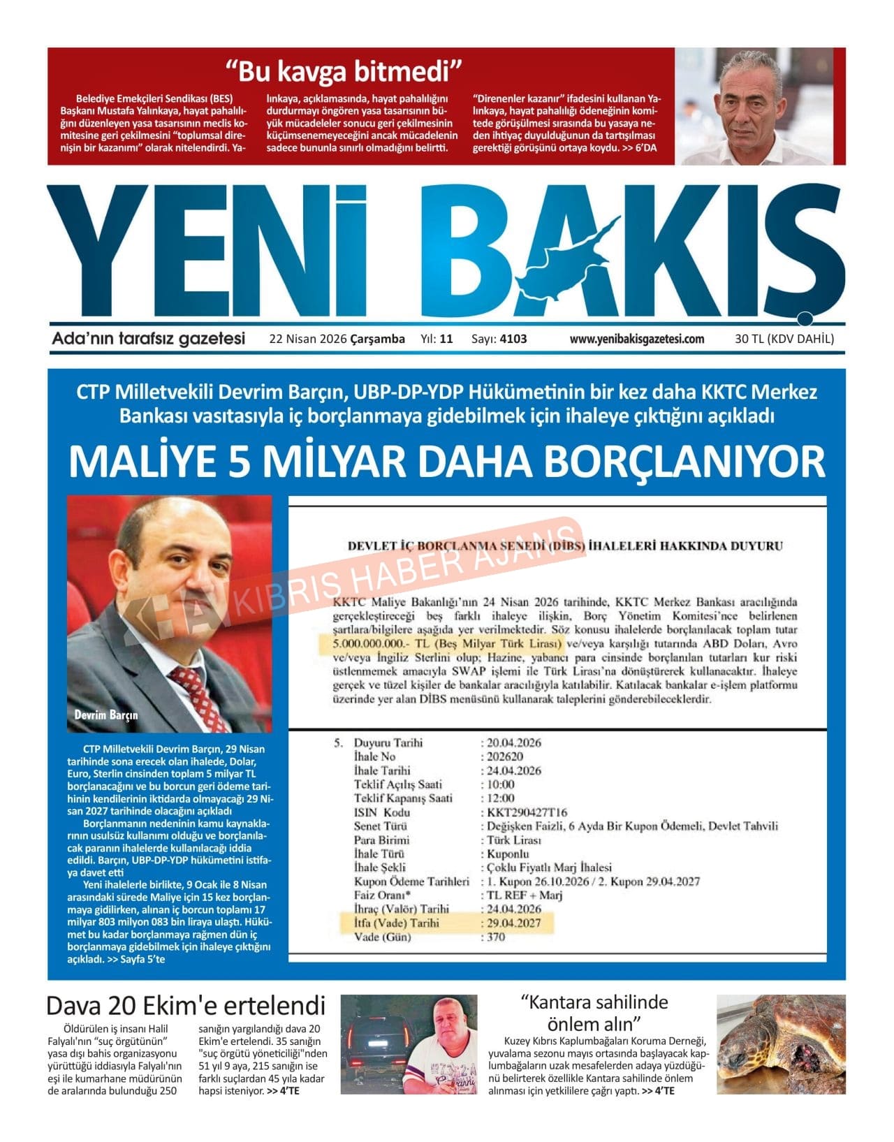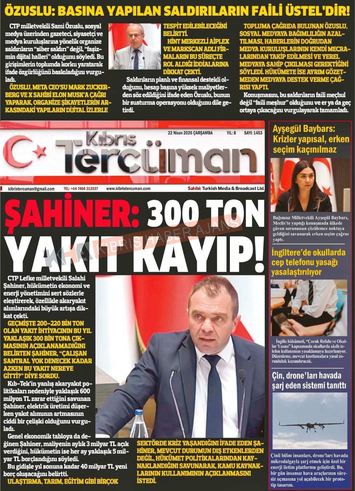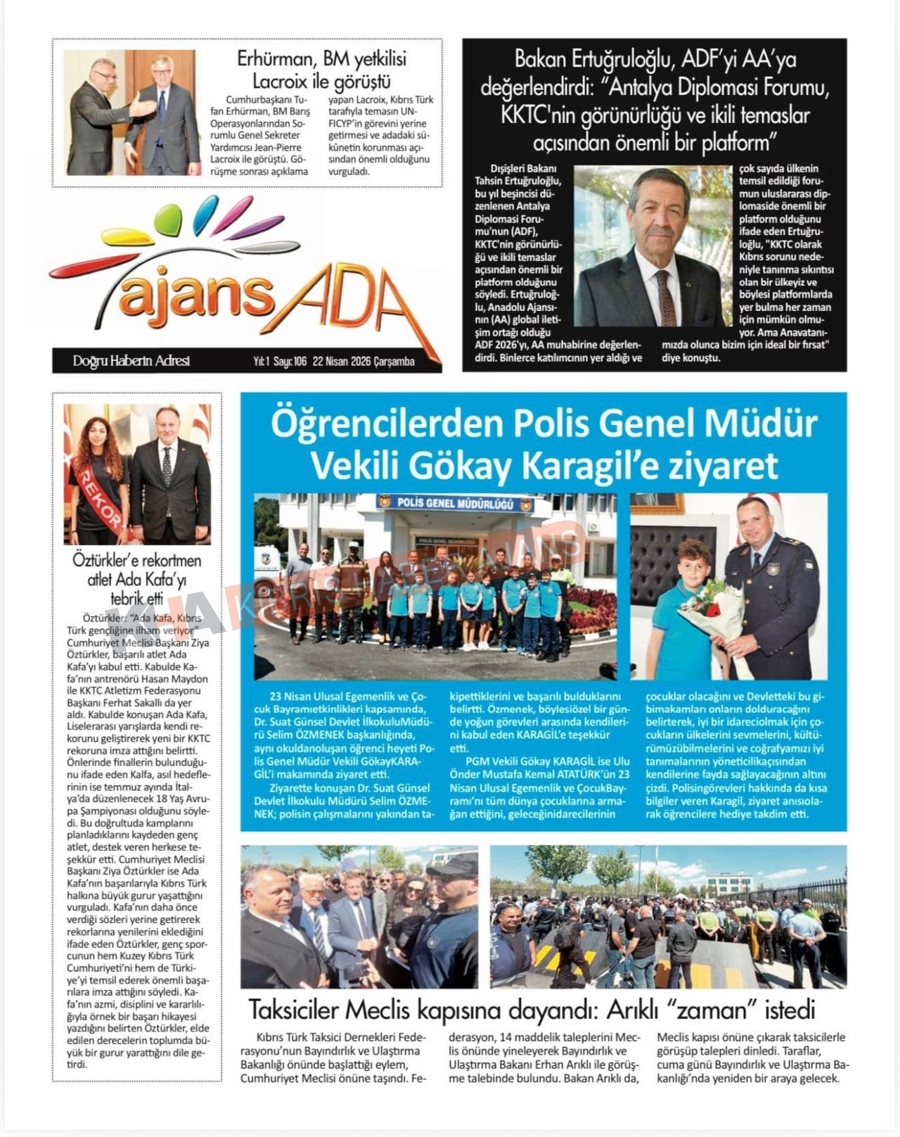 Sitede yayınlanan gazetelerdeki içeriklerden gazete sahipleri sorumludur. Yayınlanan gazeteler ve içeriklerinden Kıbrıs Haber Ajans ve Ajans Cyprus sorumlu tutulamaz.