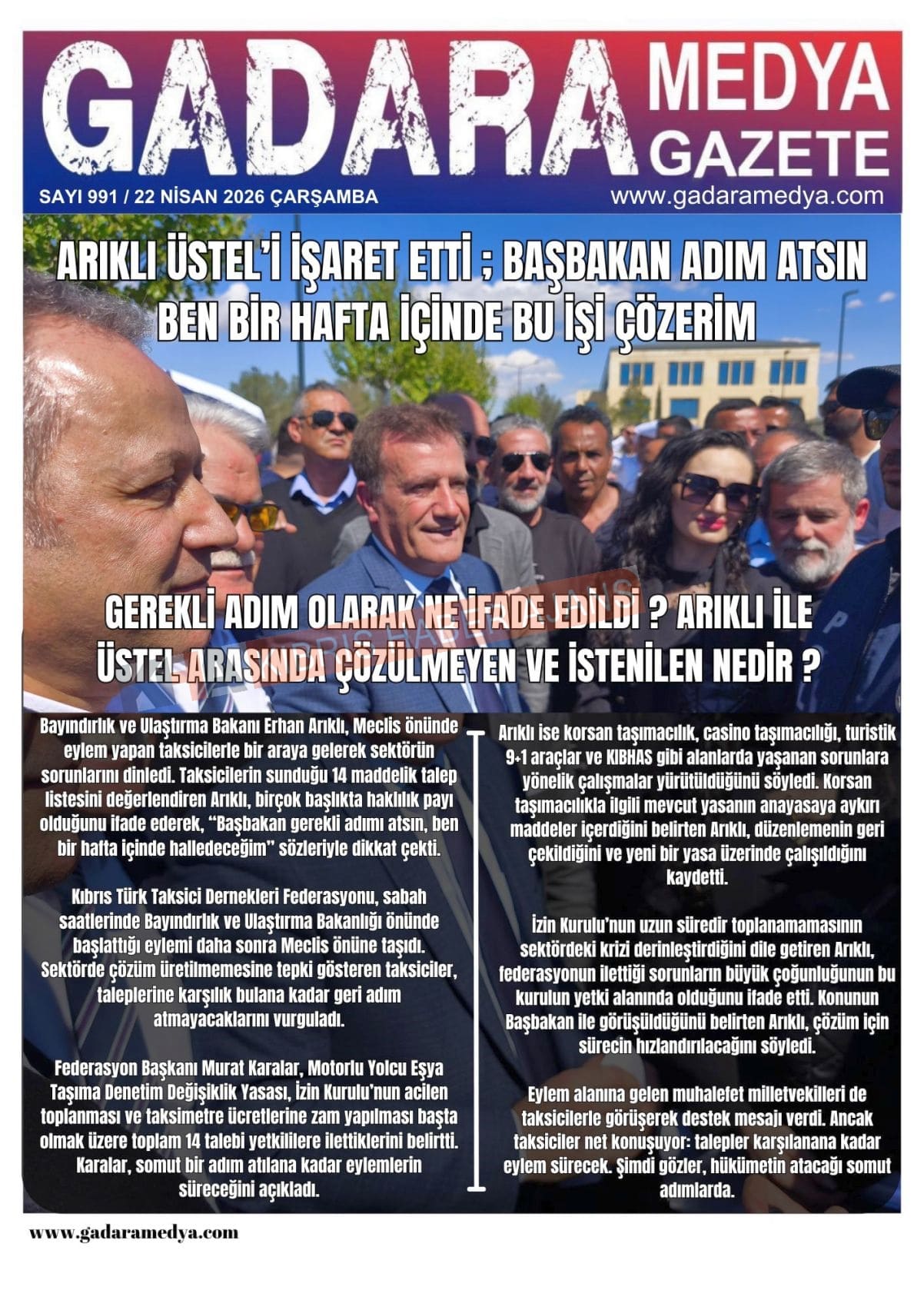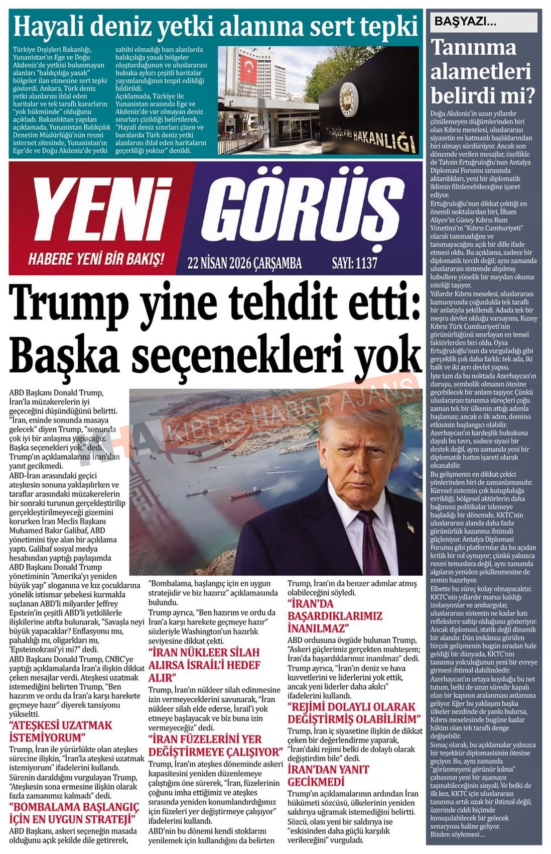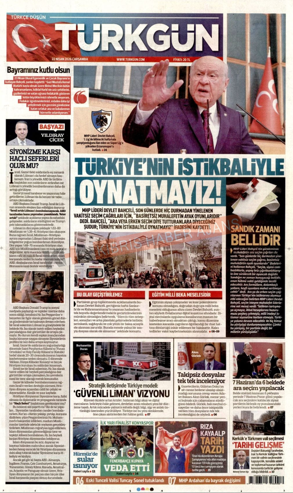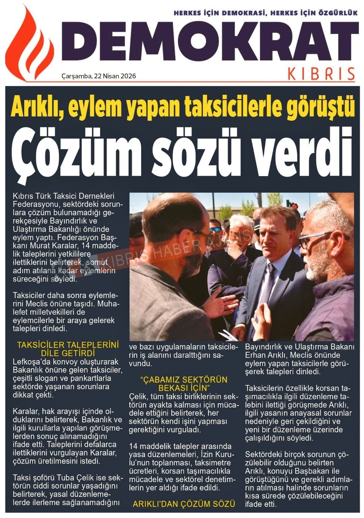 Sitede yayınlanan gazetelerdeki içeriklerden gazete sahipleri sorumludur. Yayınlanan gazeteler ve içeriklerinden Kıbrıs Haber Ajans ve Ajans Cyprus sorumlu tutulamaz.