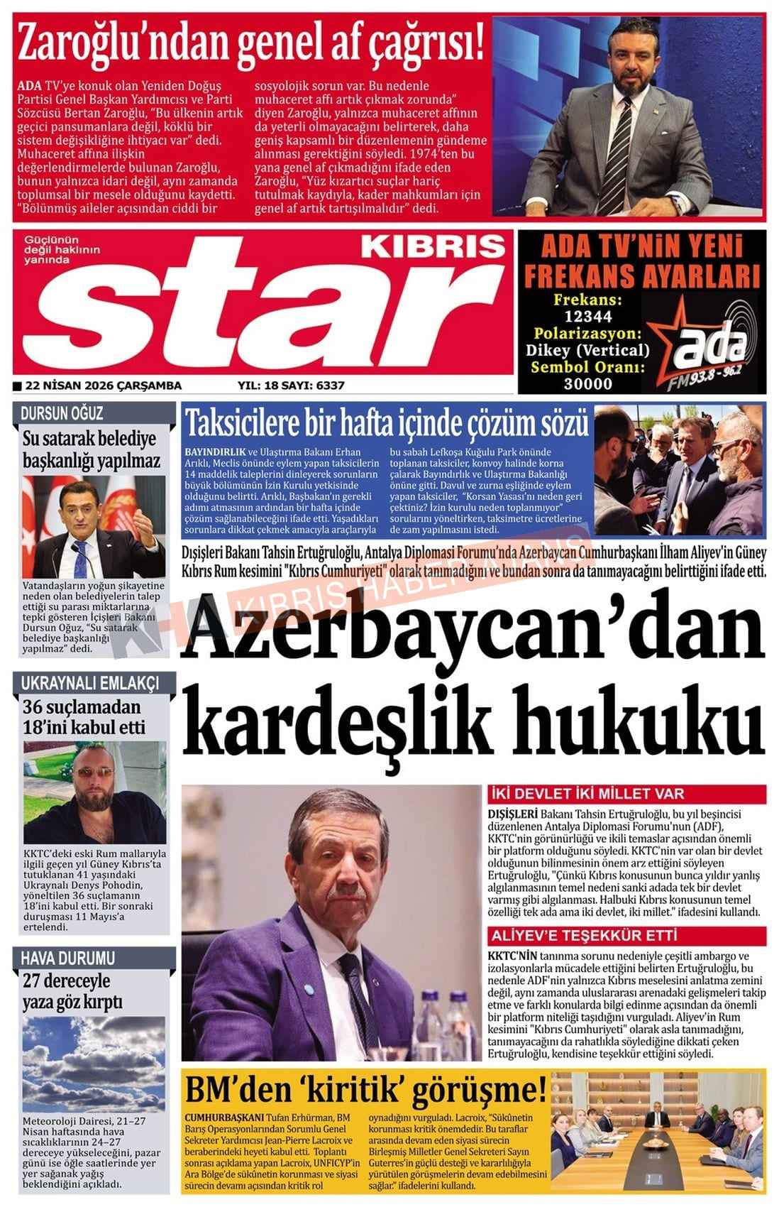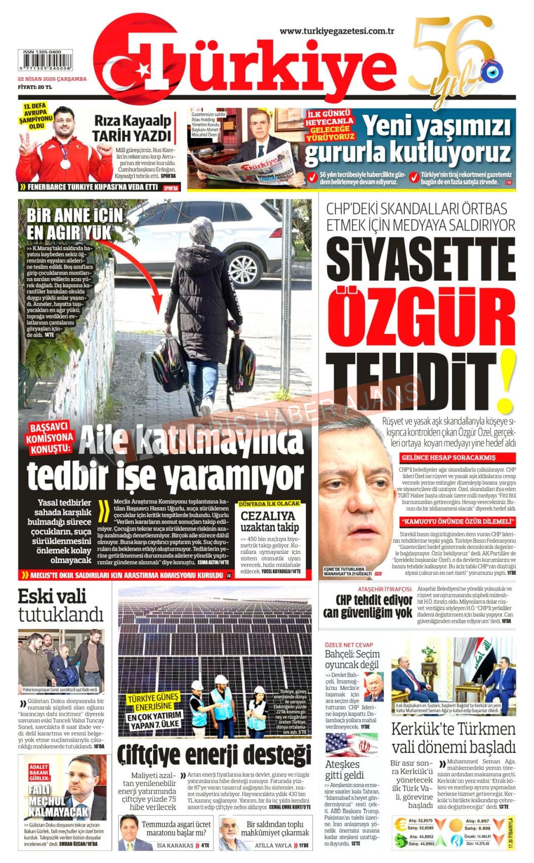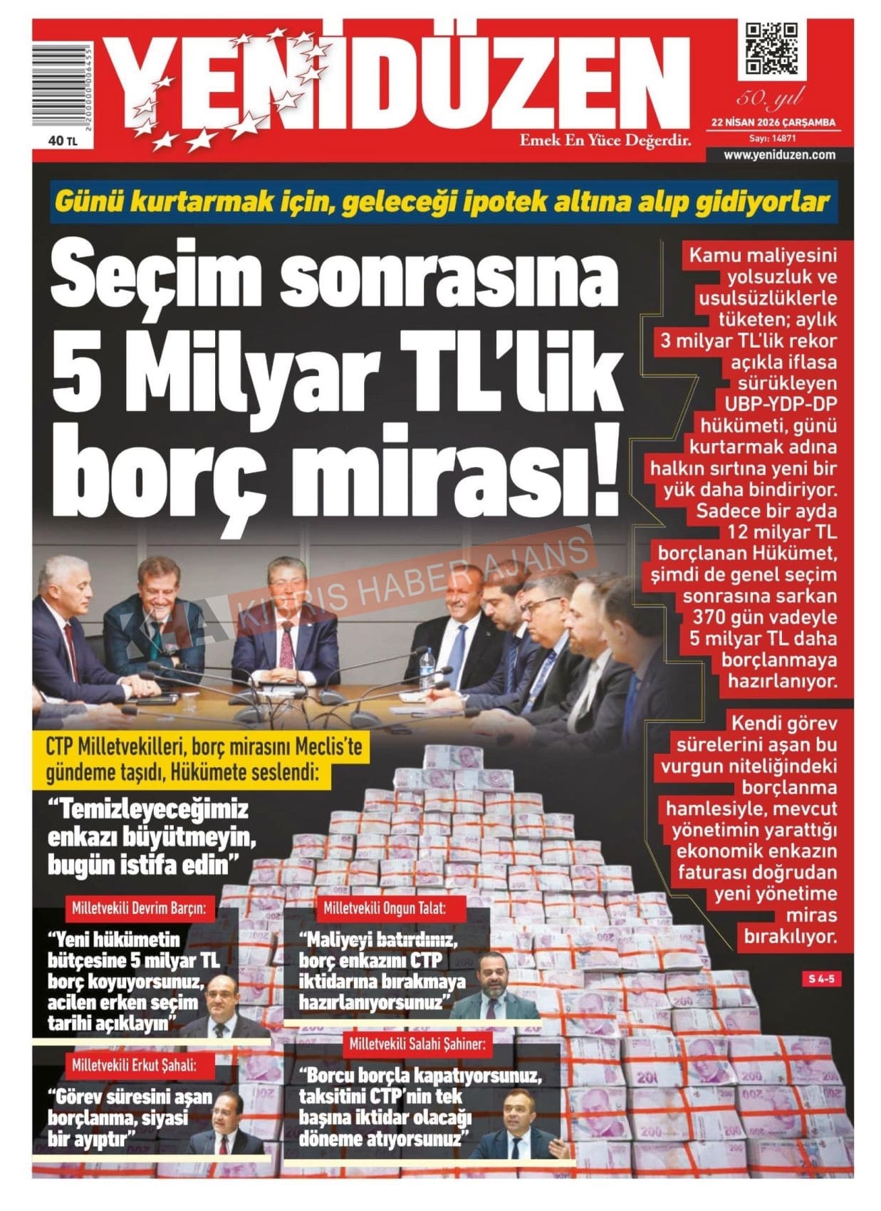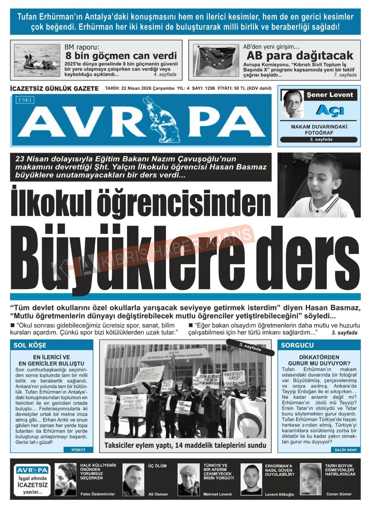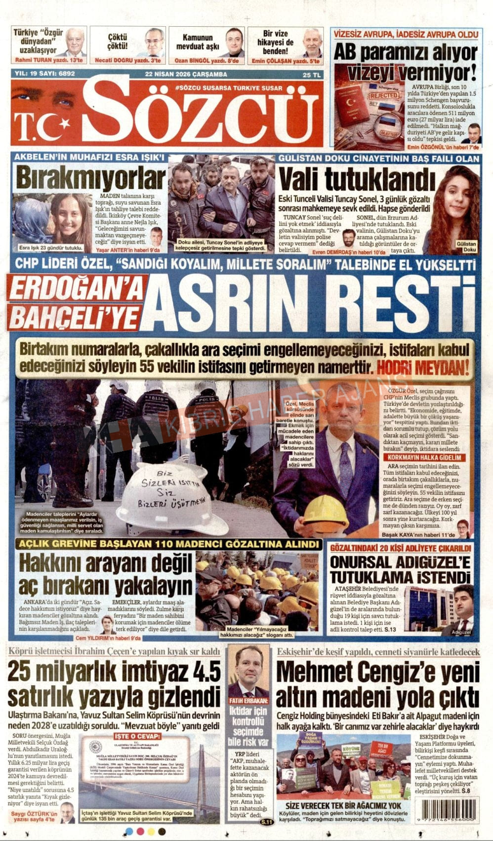 Sitede yayınlanan gazetelerdeki içeriklerden gazete sahipleri sorumludur. Yayınlanan gazeteler ve içeriklerinden Kıbrıs Haber Ajans ve Ajans Cyprus sorumlu tutulamaz.