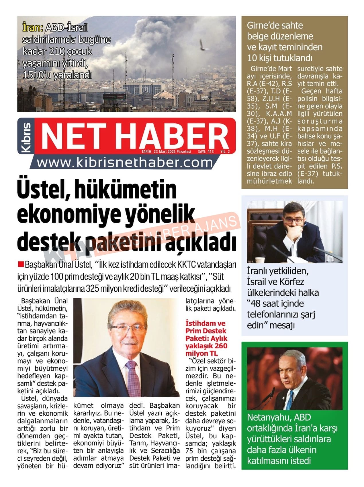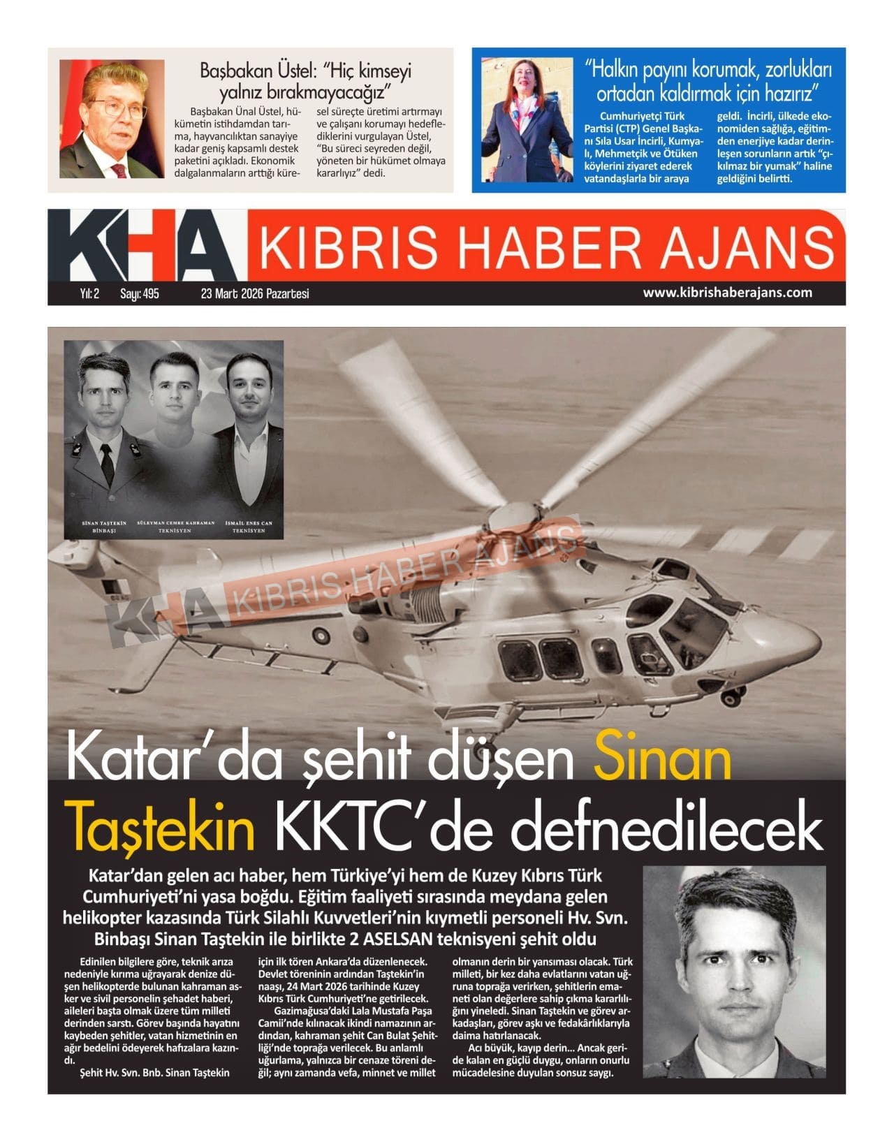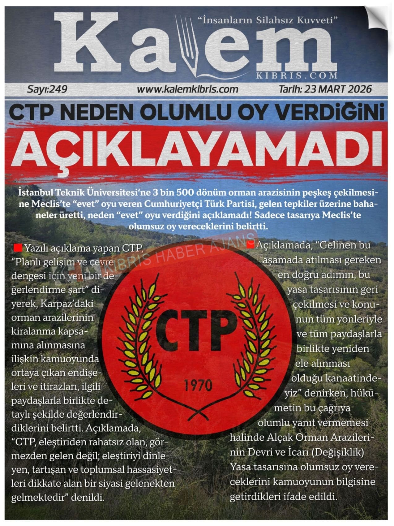 Sitede yayınlanan gazetelerdeki içeriklerden gazete sahipleri sorumludur. Yayınlanan gazeteler ve içeriklerinden Kıbrıs Haber Ajans ve Ajans Cyprus sorumlu tutulamaz.