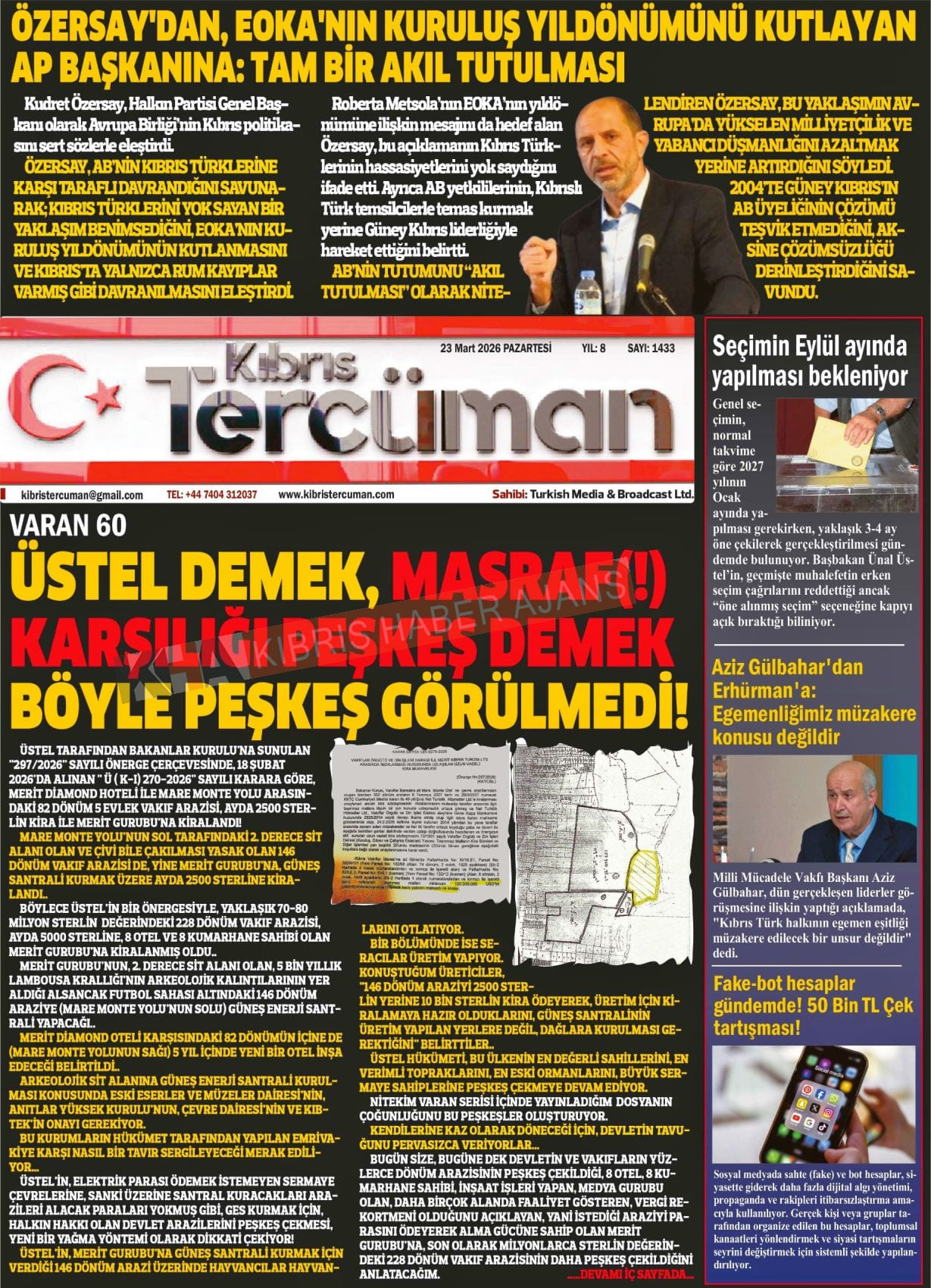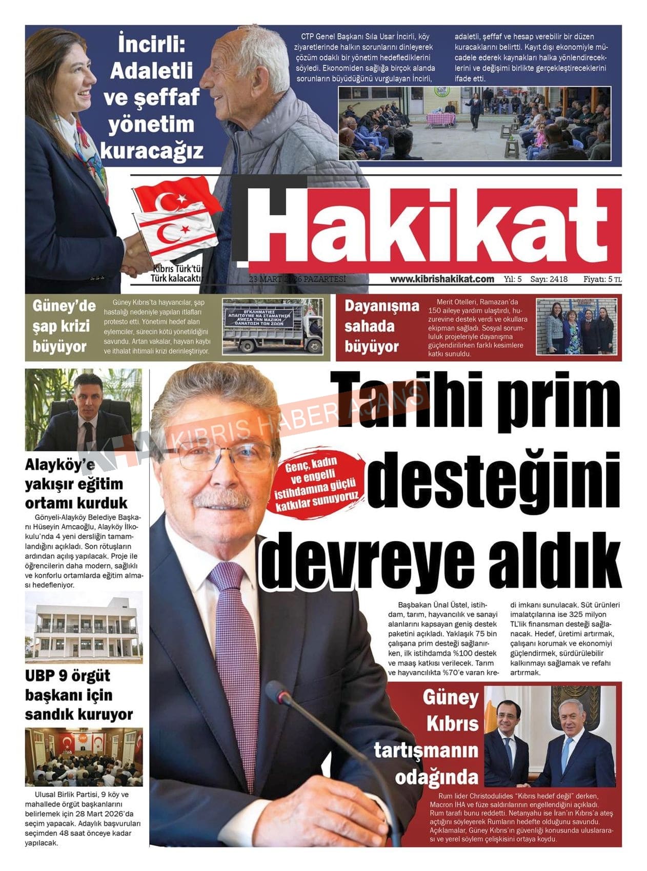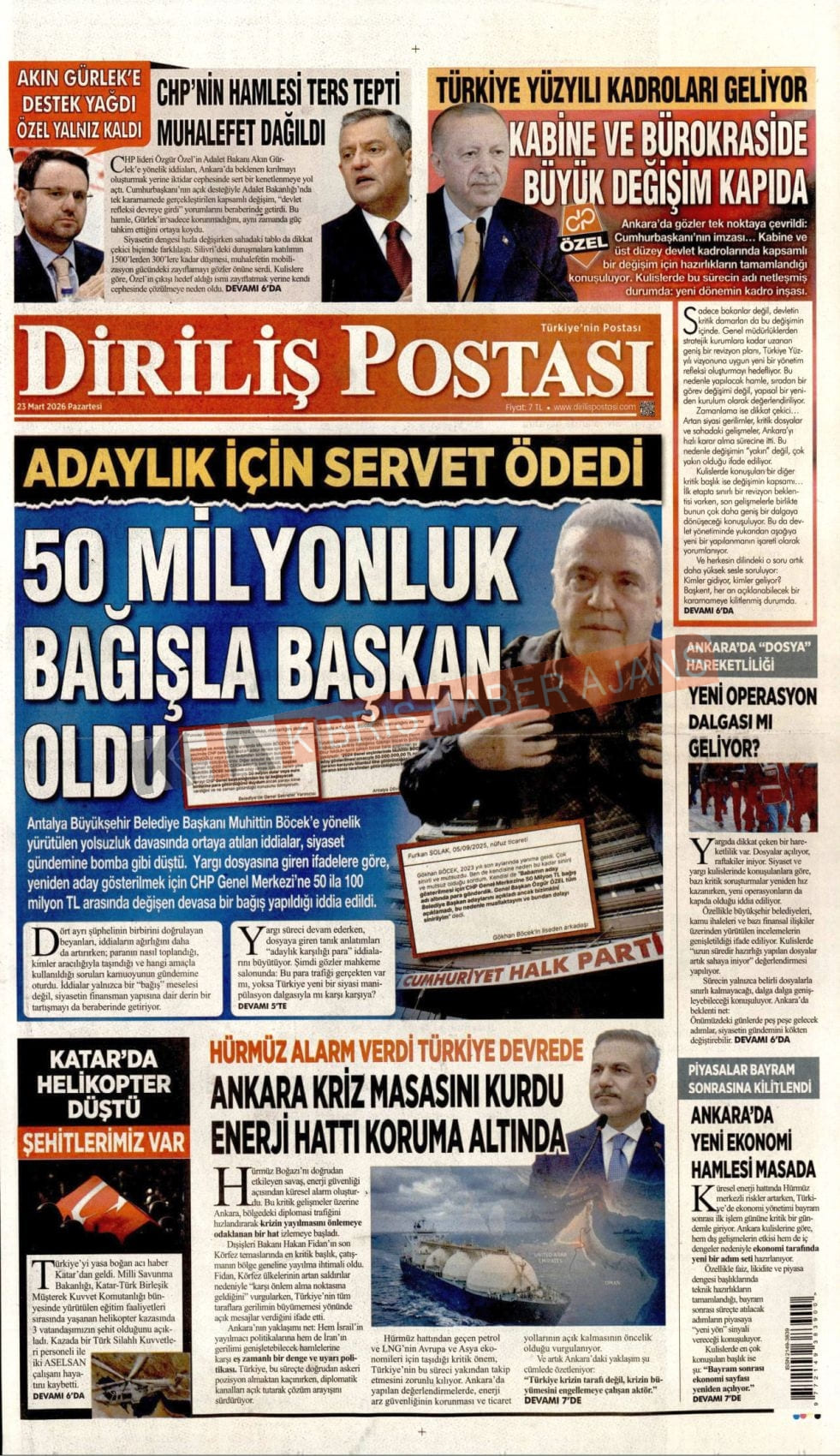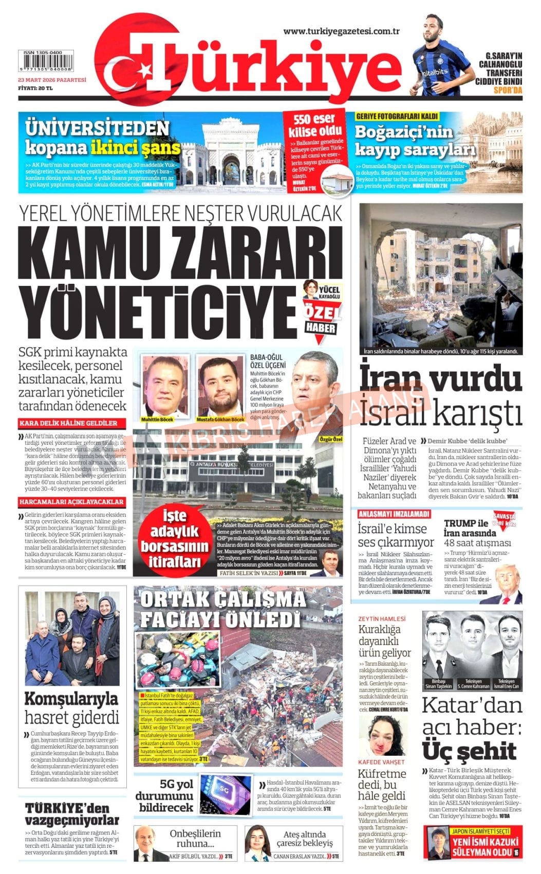 KKTC-TC Gazetelerinde Bugün (23 MART 2026)