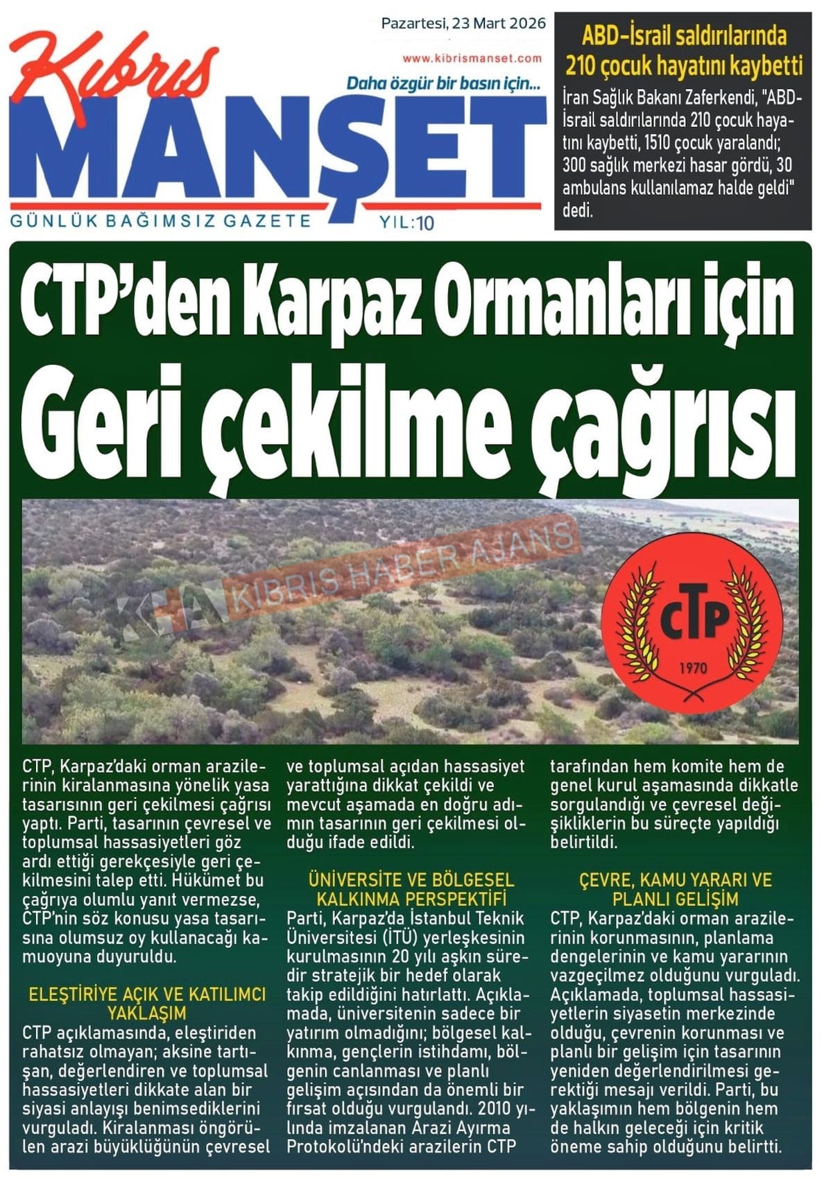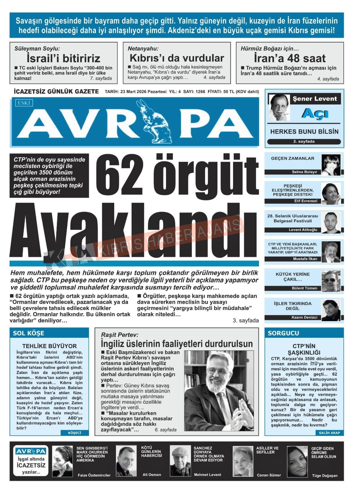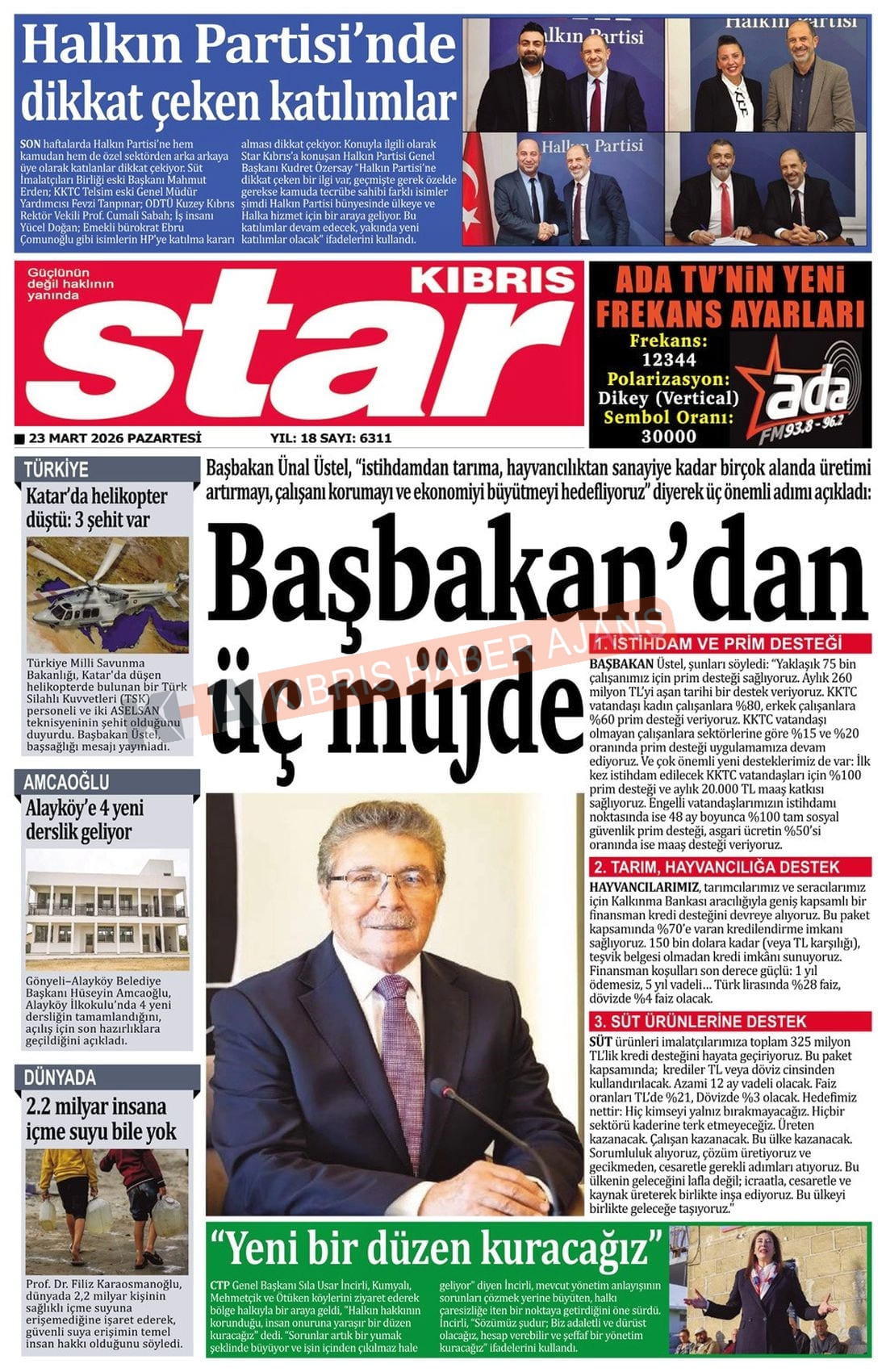 KKTC-TC Gazetelerinde Bugün (23 MART 2026)