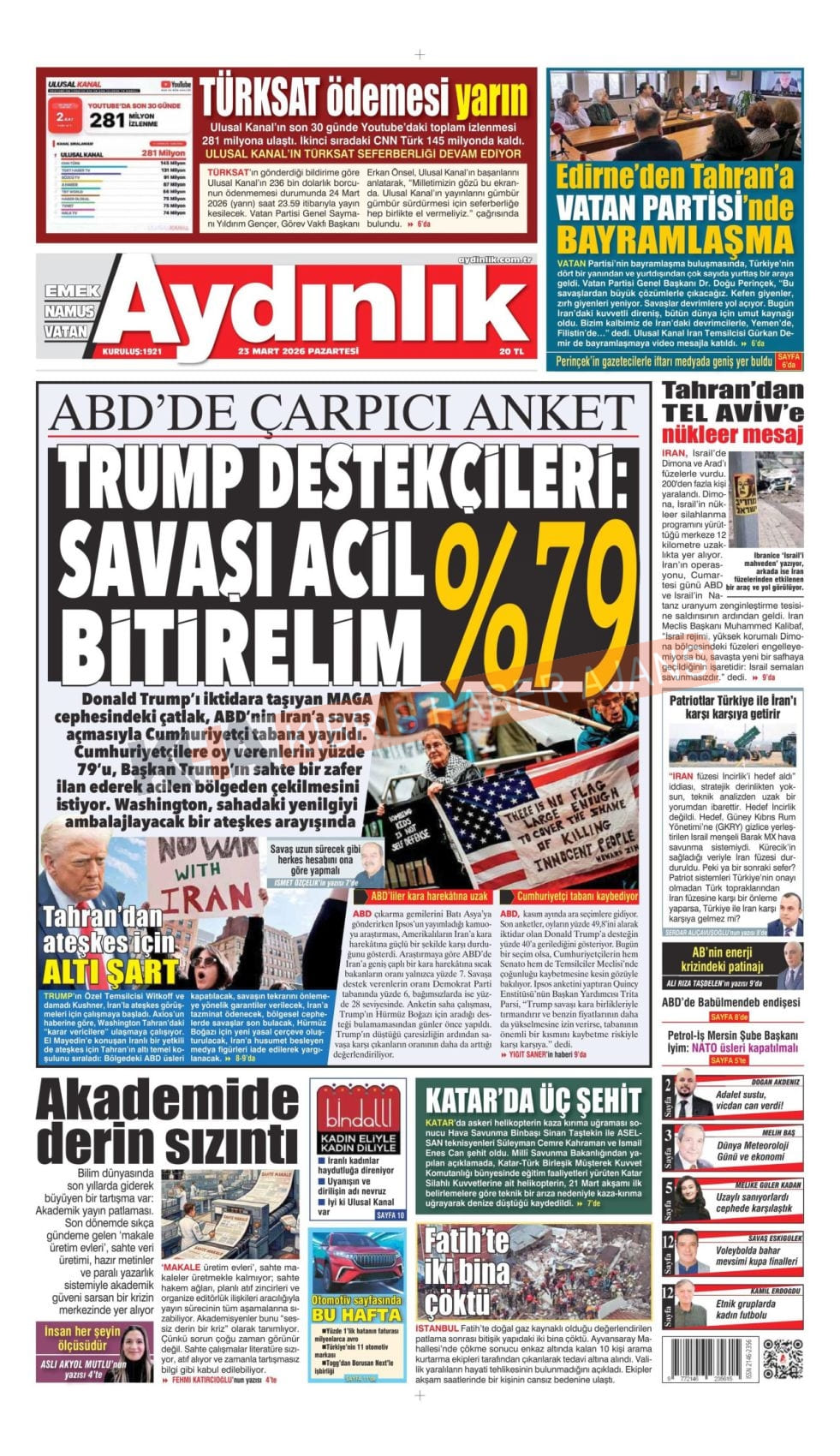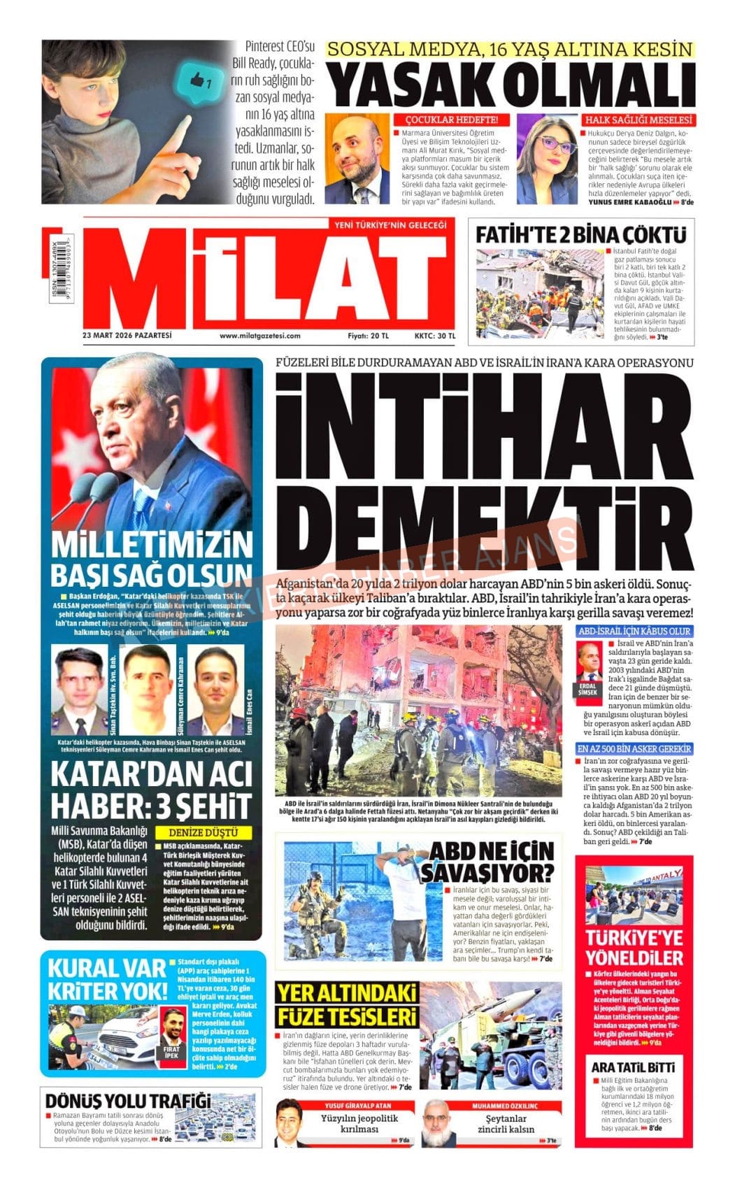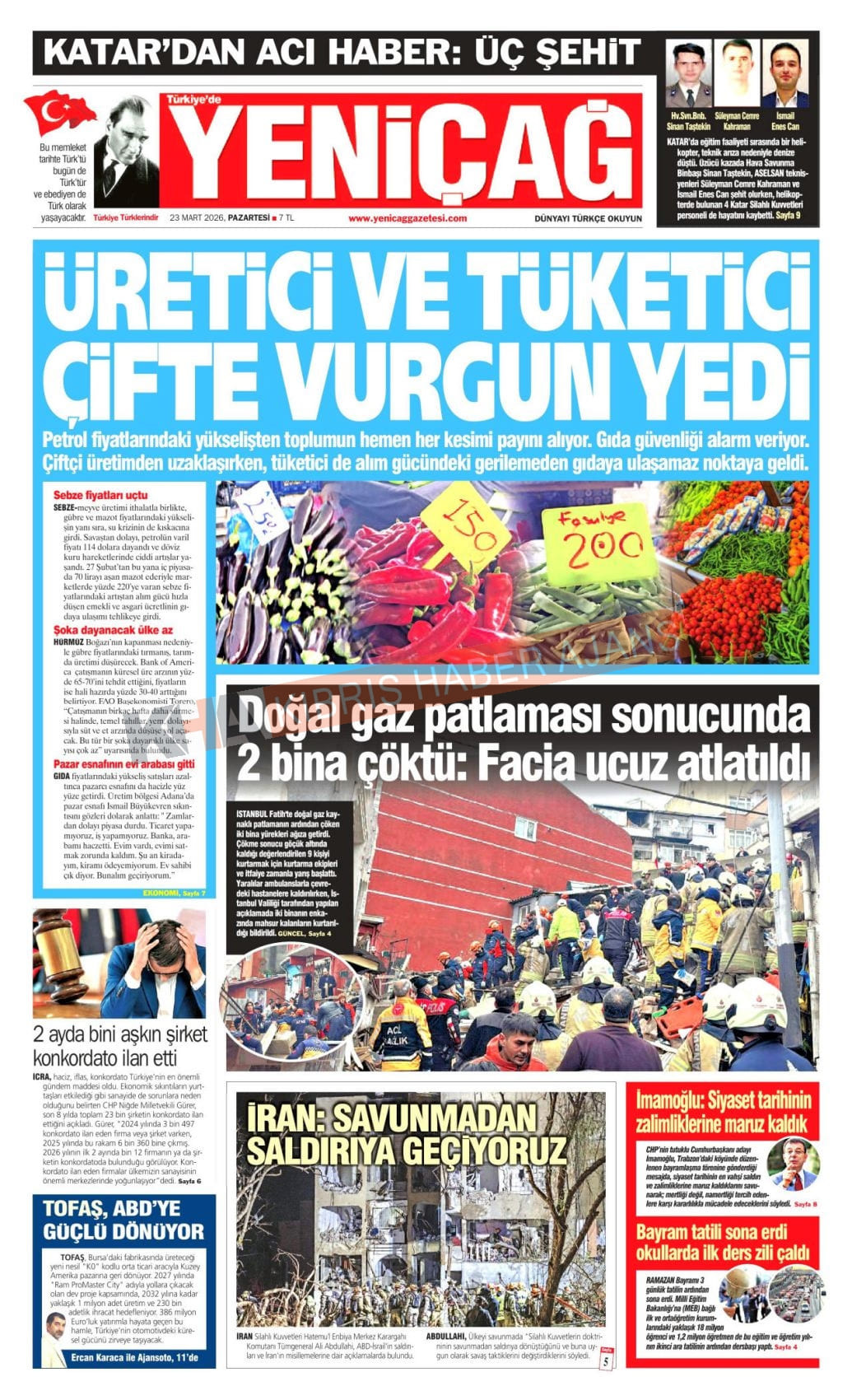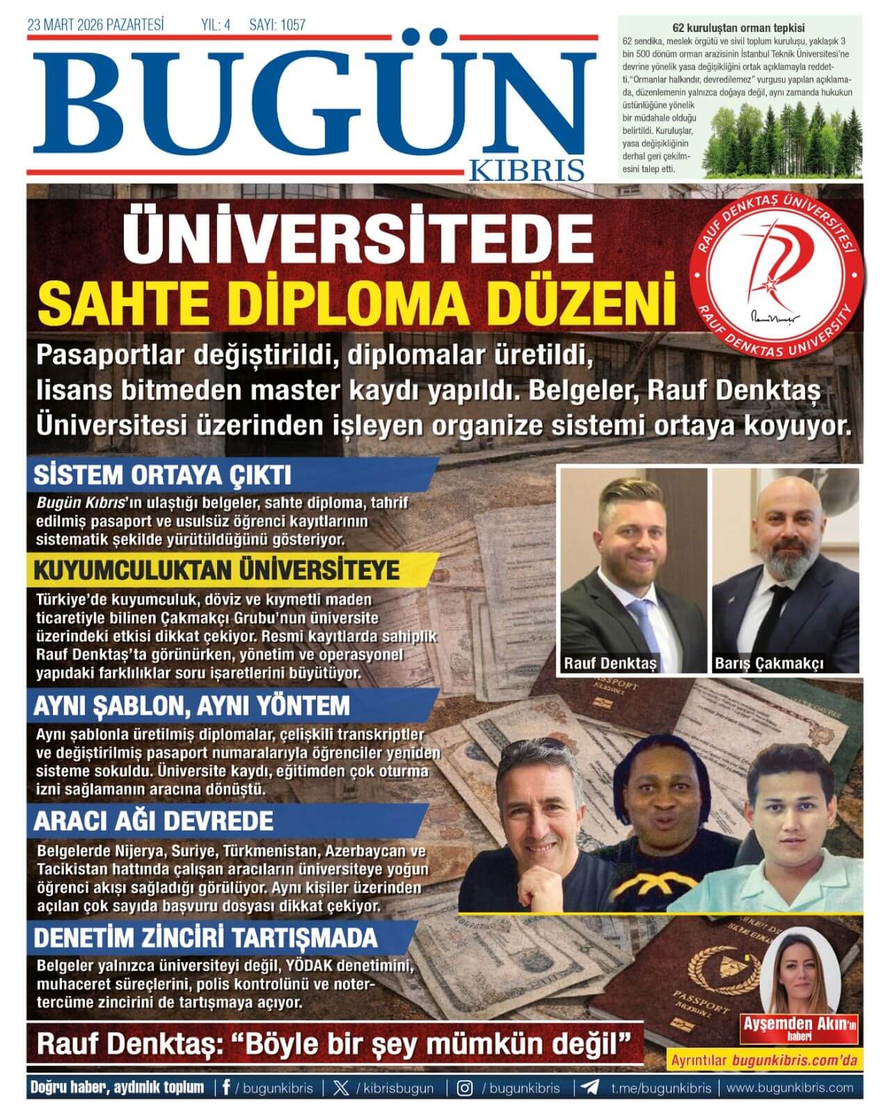 KKTC-TC Gazetelerinde Bugün (23 MART 2026)