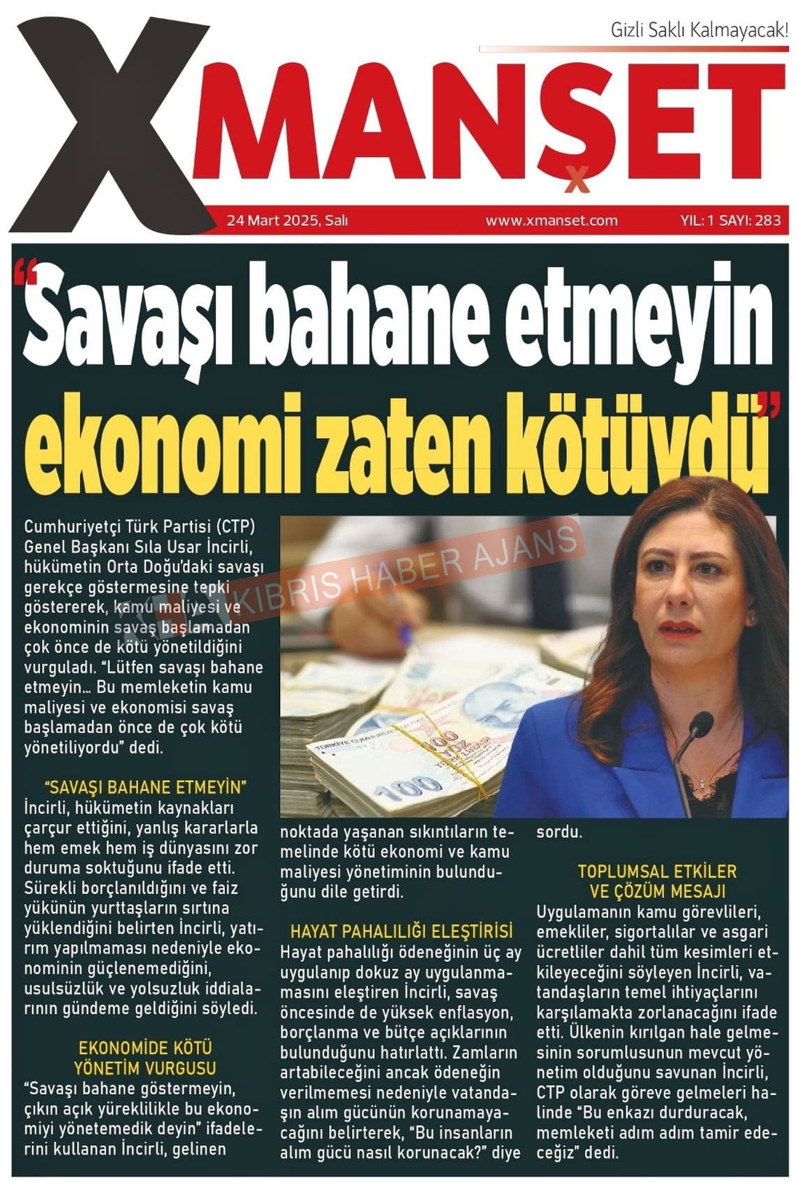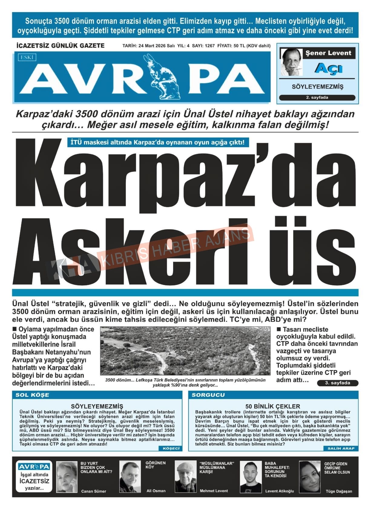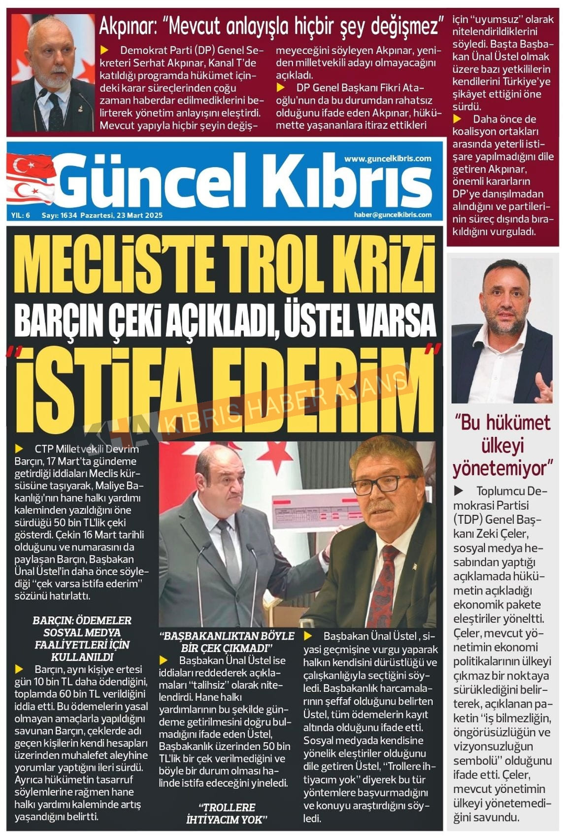Sitede yayınlanan gazetelerdeki içeriklerden gazete sahipleri sorumludur. Yayınlanan gazeteler ve içeriklerinden Kıbrıs Haber Ajans ve Ajans Cyprus sorumlu tutulamaz.