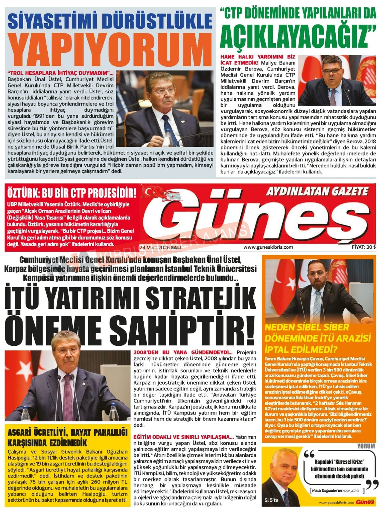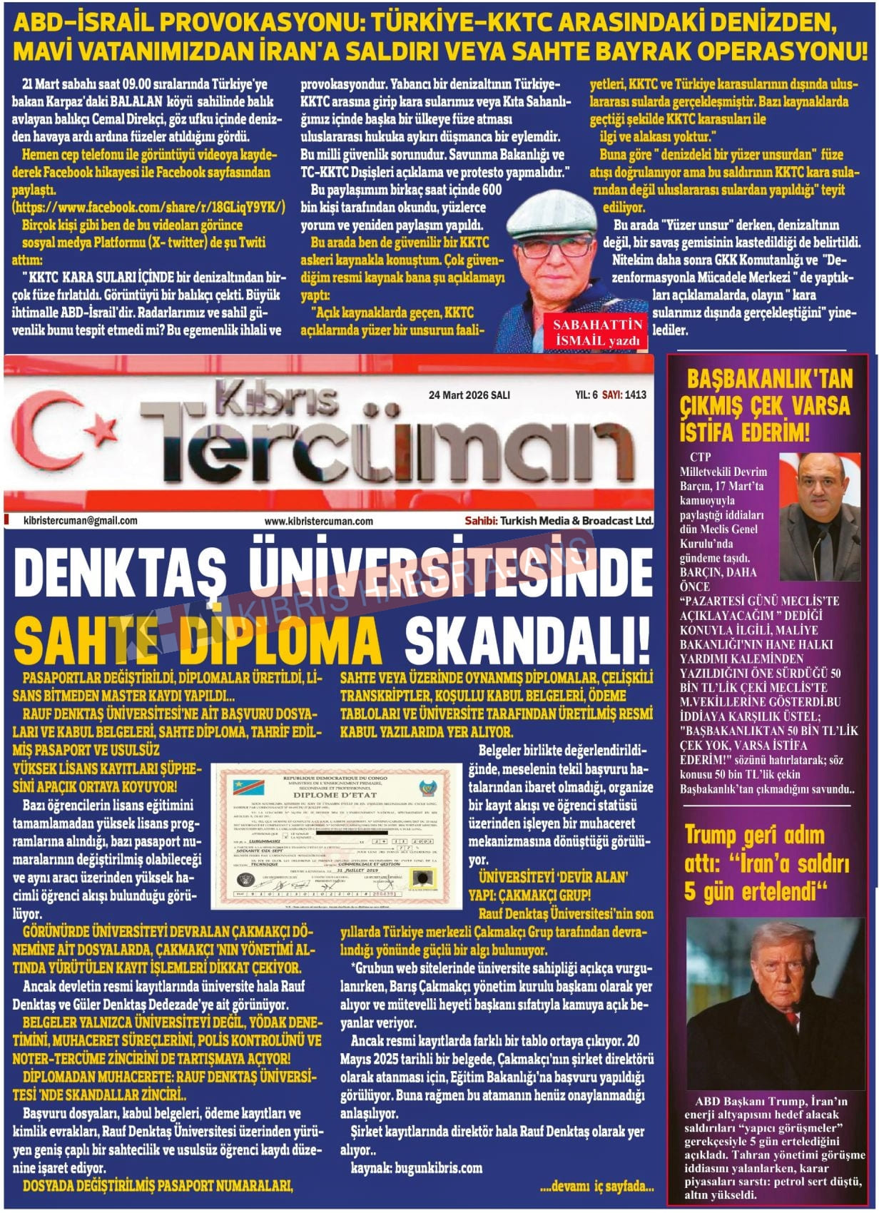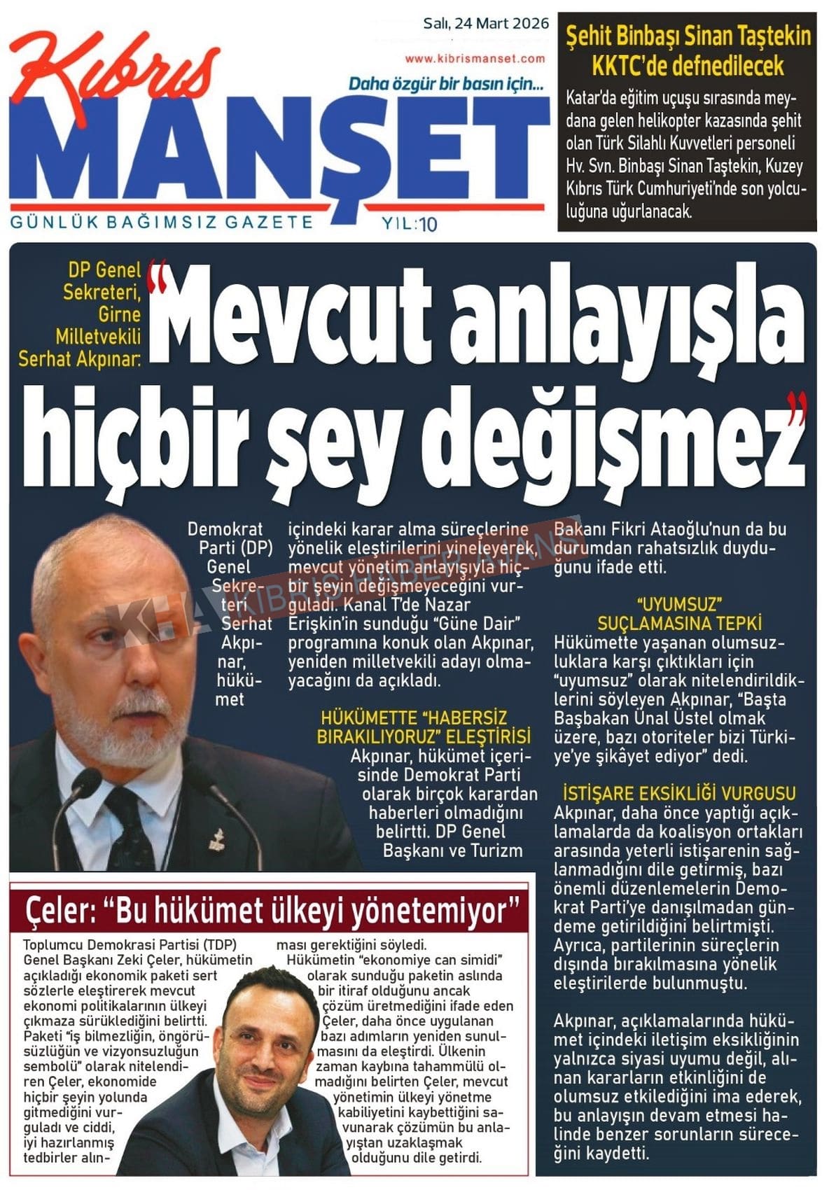 KKTC-TC Gazetelerinde Bugün (24 MART 2026)