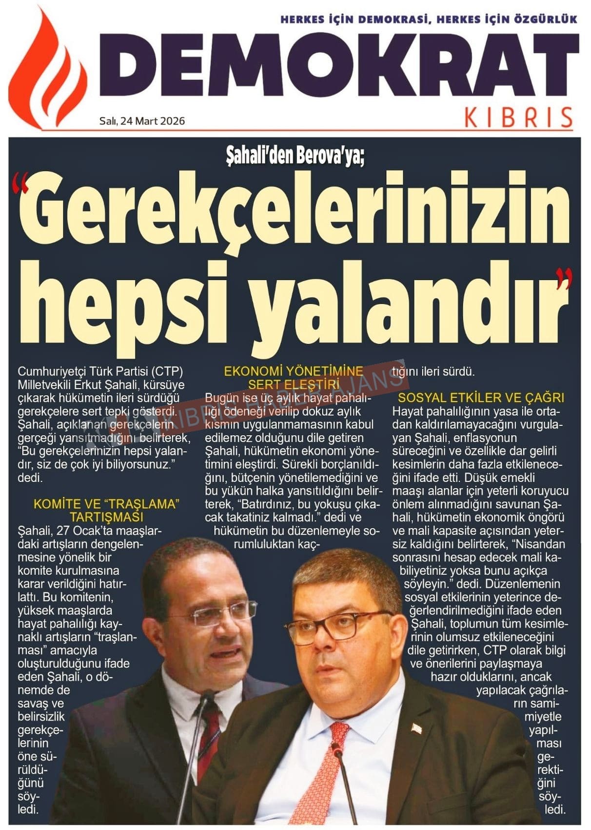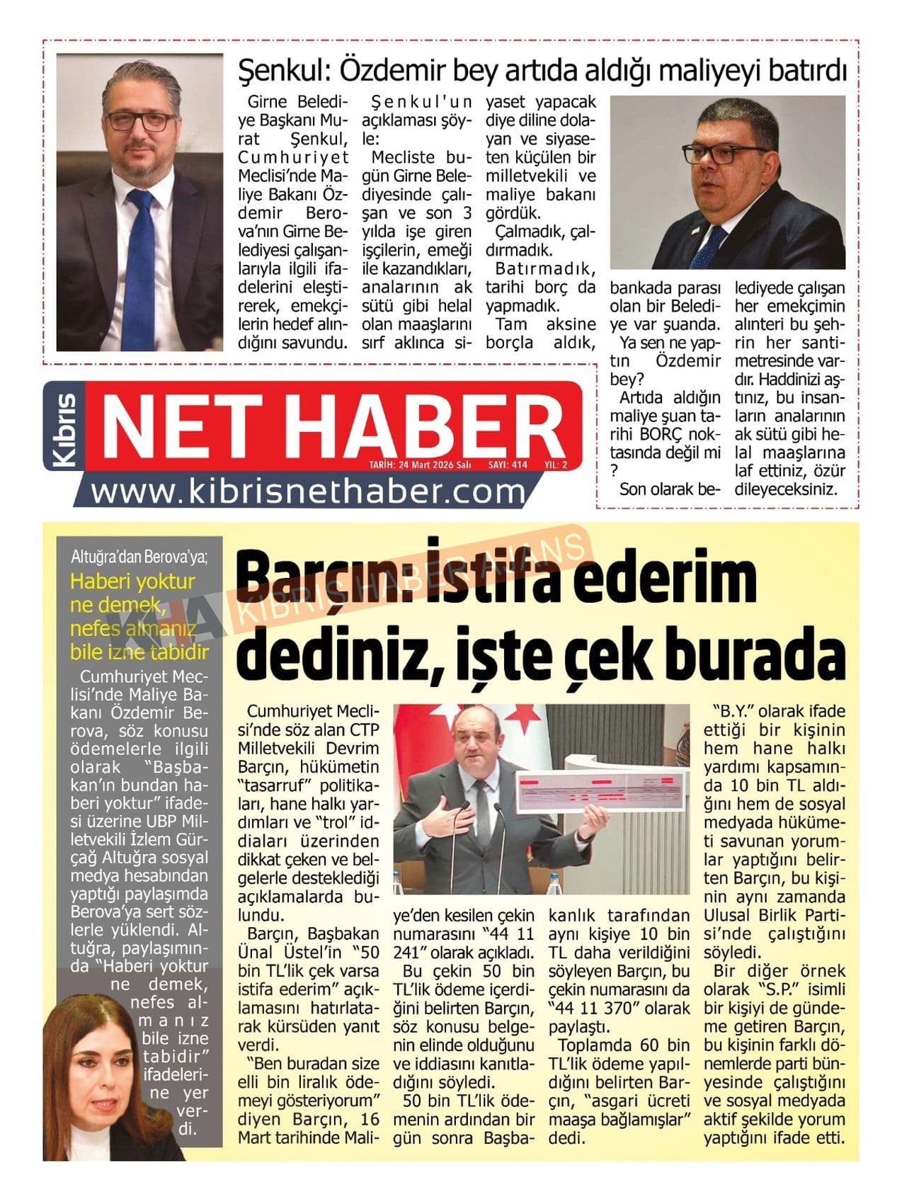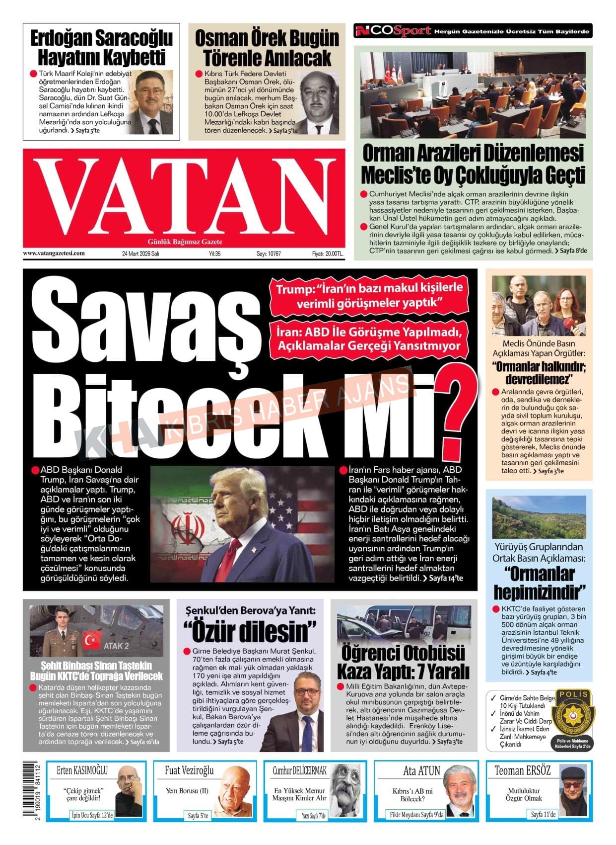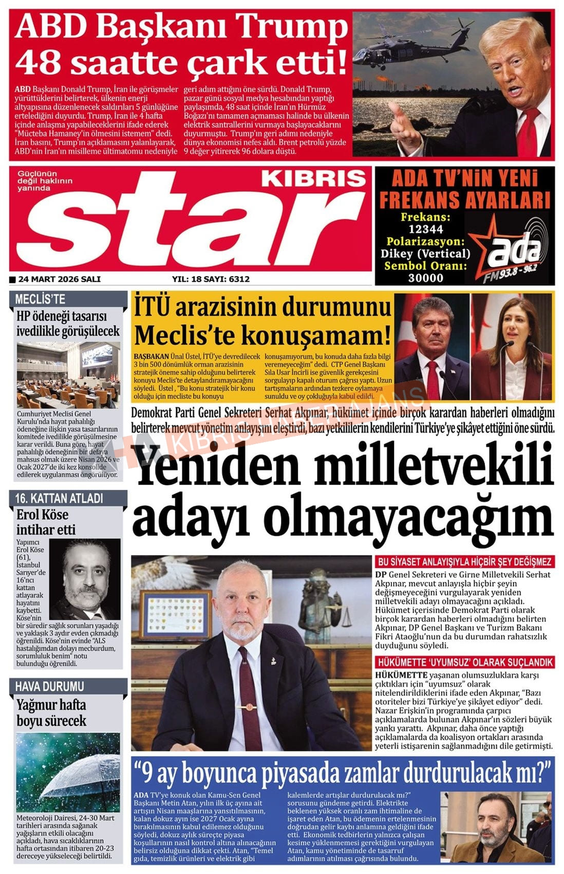 KKTC-TC Gazetelerinde Bugün (24 MART 2026)