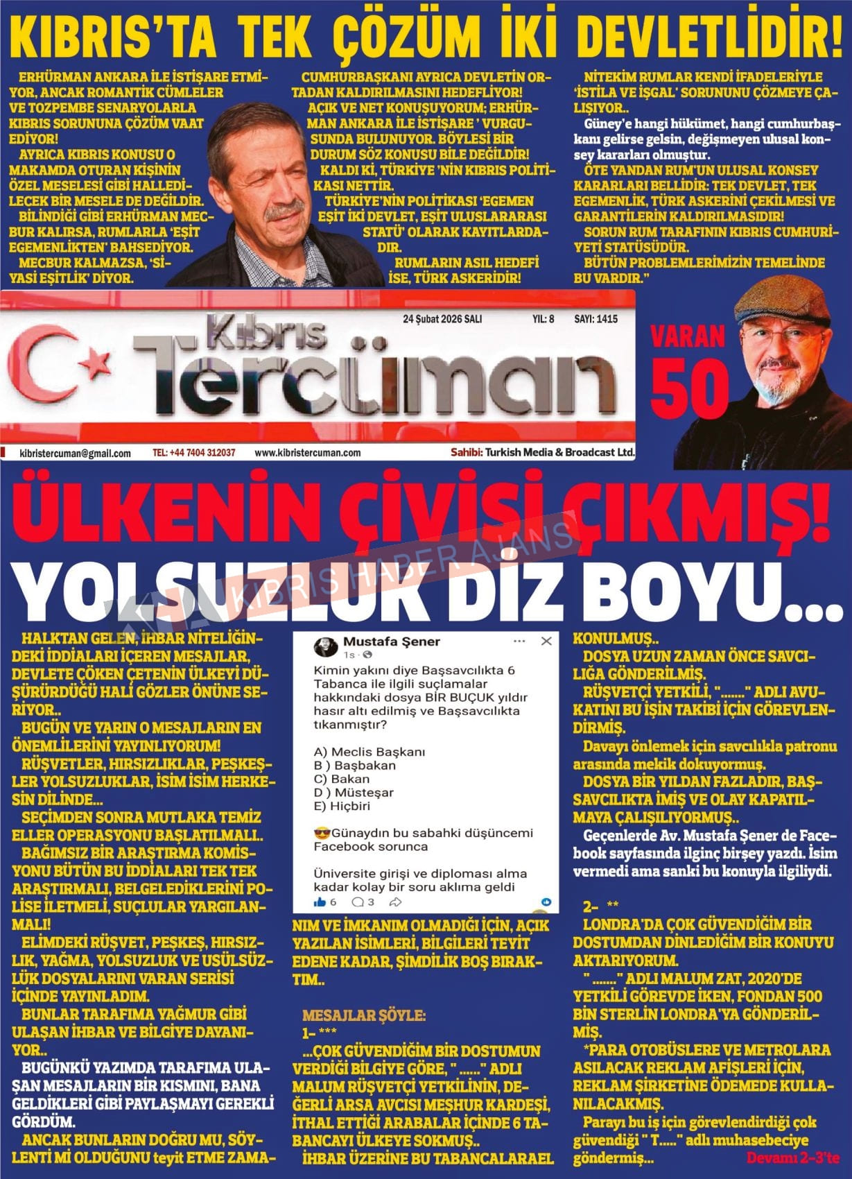Sitede yayınlanan gazetelerdeki içeriklerden gazete sahipleri sorumludur. Yayınlanan gazeteler ve içeriklerinden Kıbrıs Haber Ajans ve Ajans Cyprus sorumlu tutulamaz.
