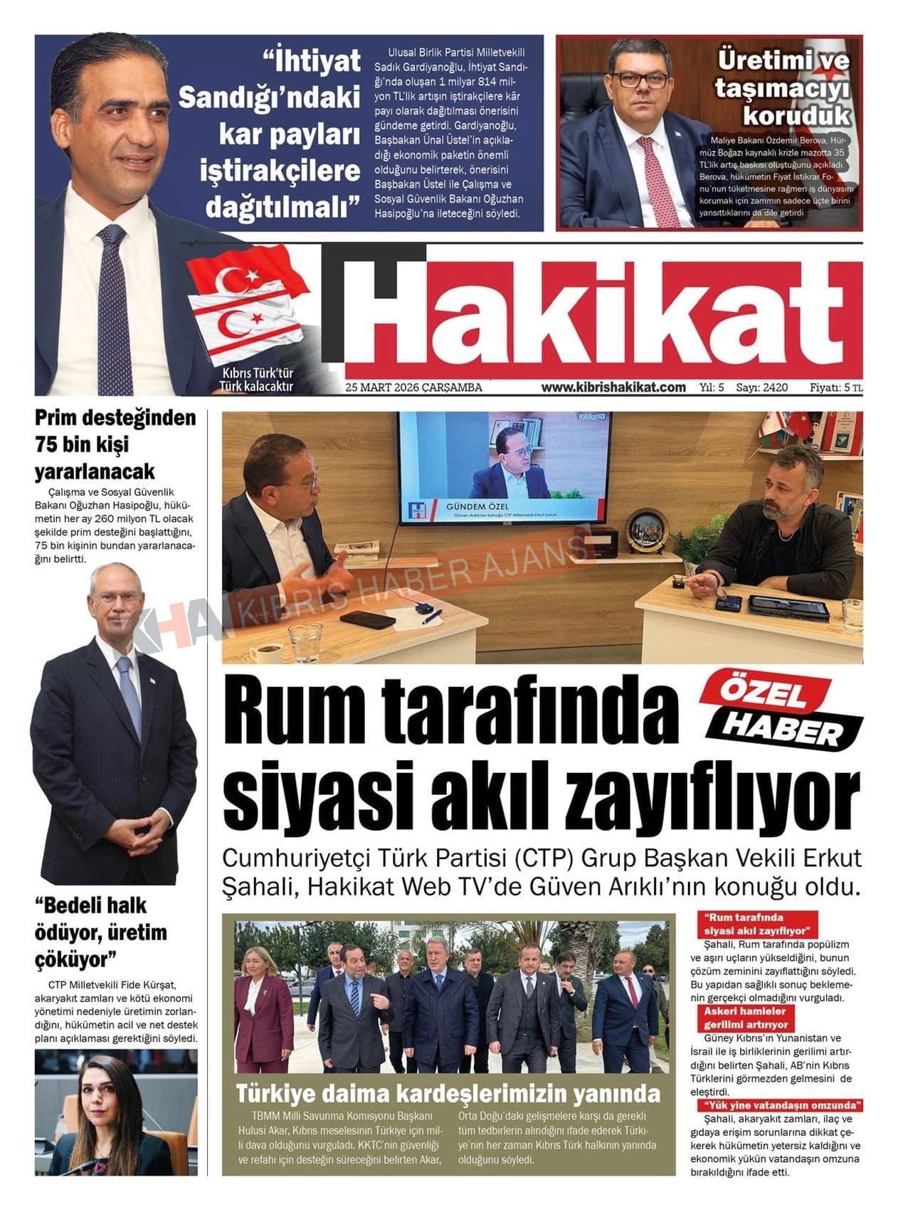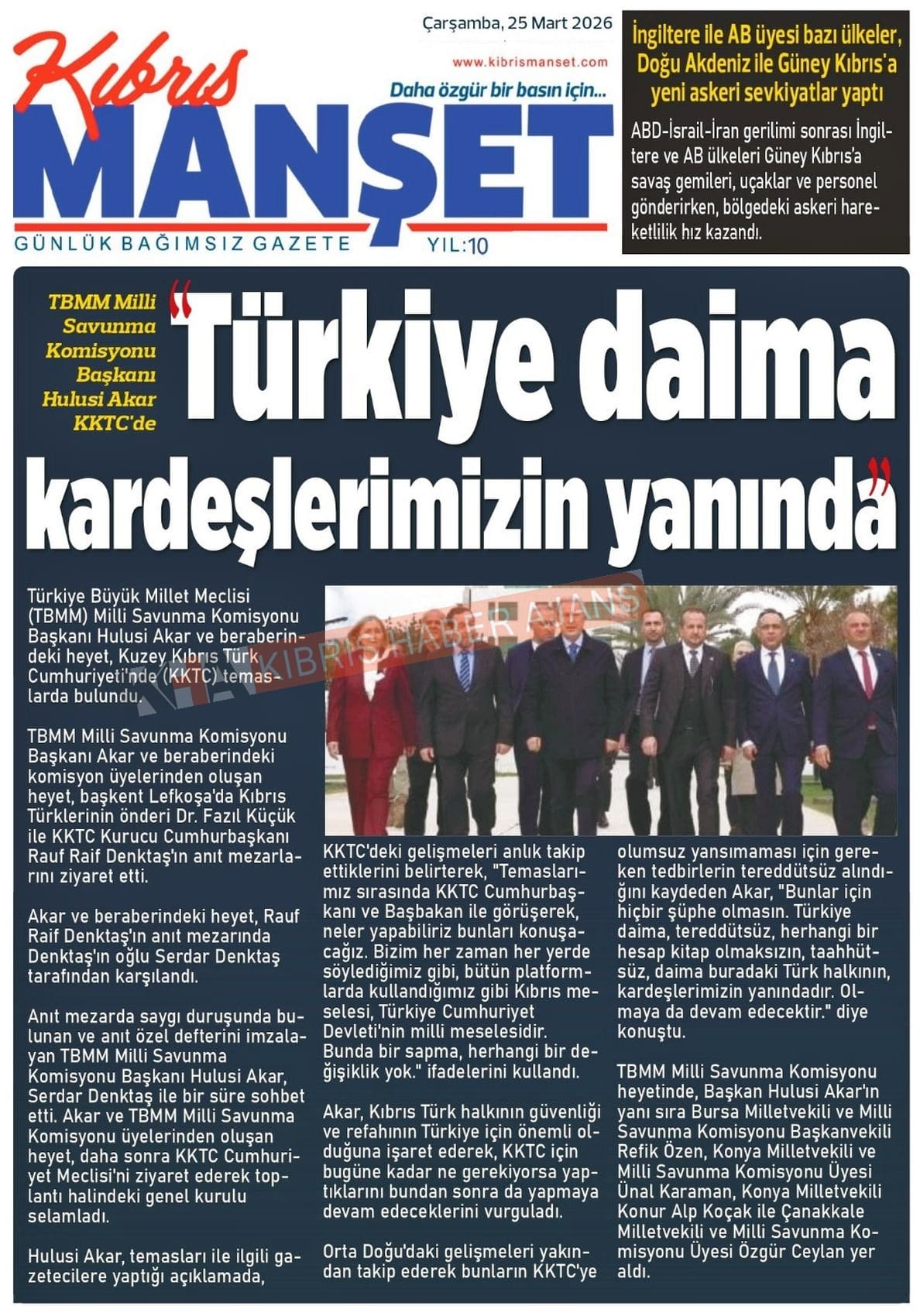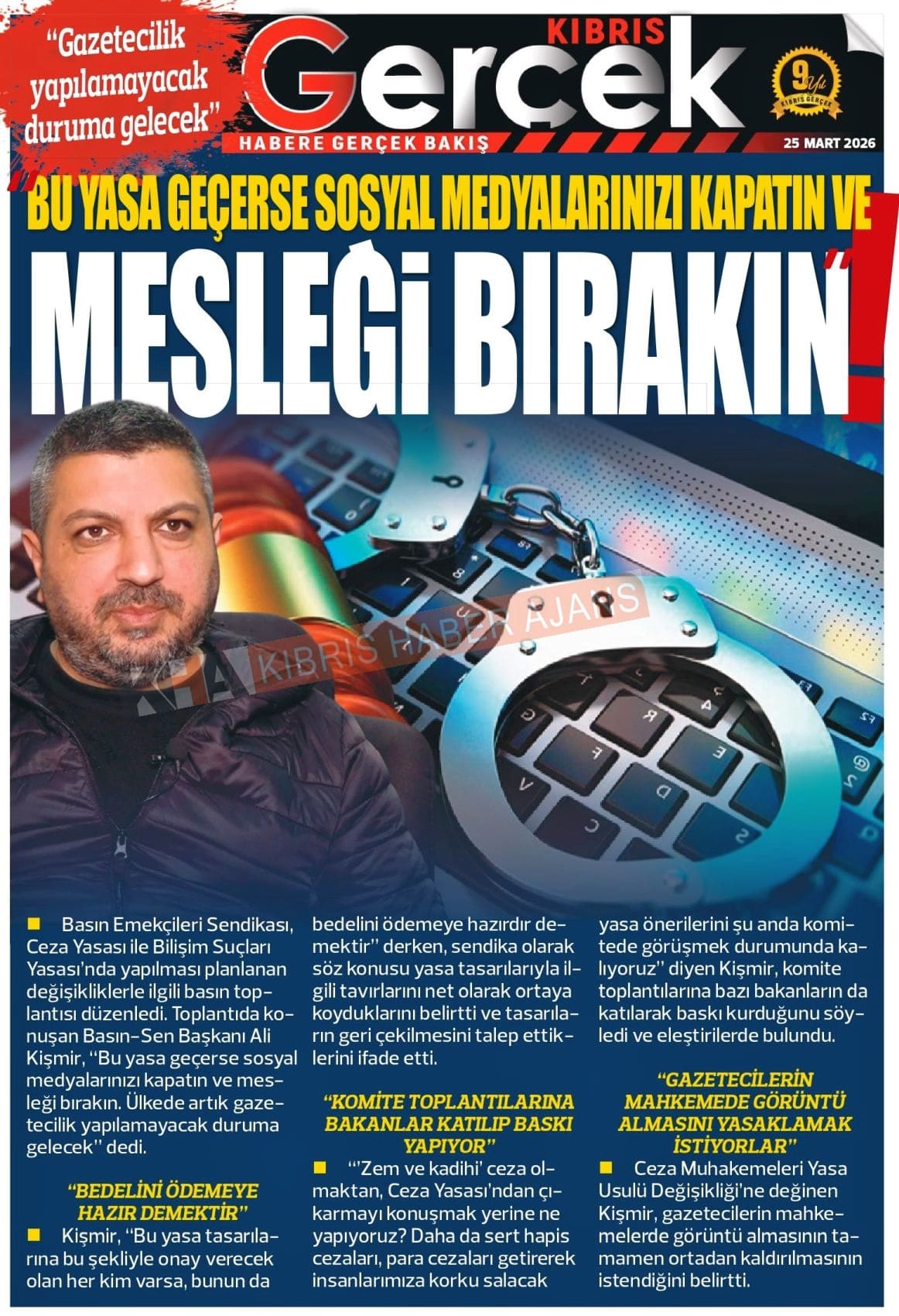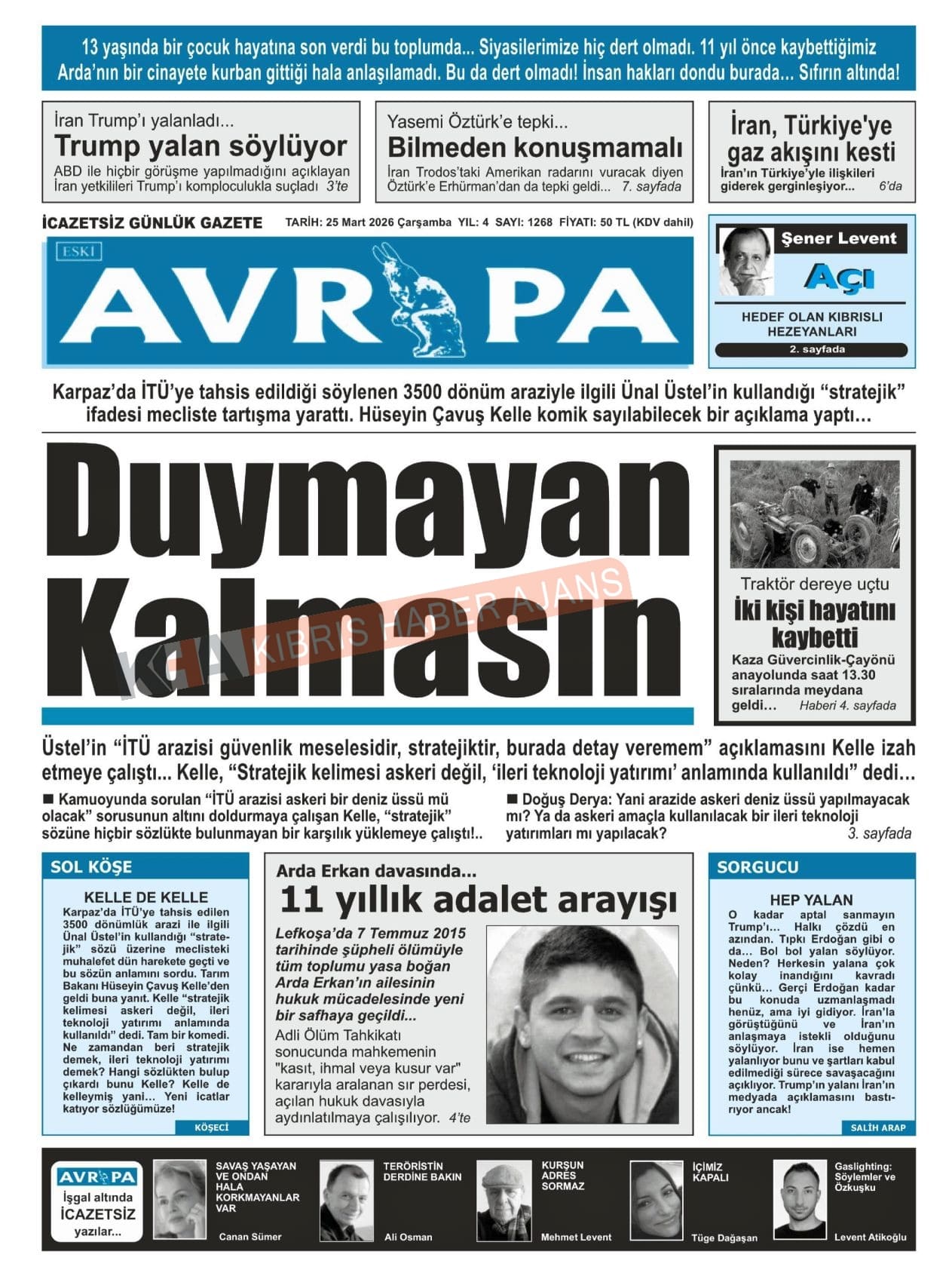 Sitede yayınlanan gazetelerdeki içeriklerden gazete sahipleri sorumludur. Yayınlanan gazeteler ve içeriklerinden Kıbrıs Haber Ajans ve Ajans Cyprus sorumlu tutulamaz.