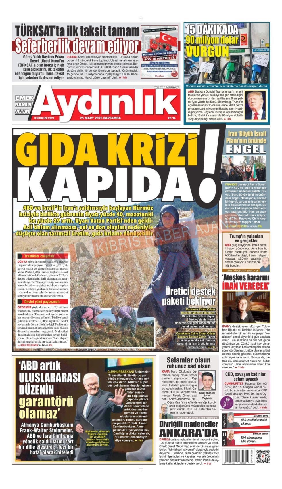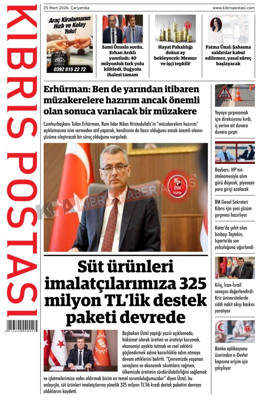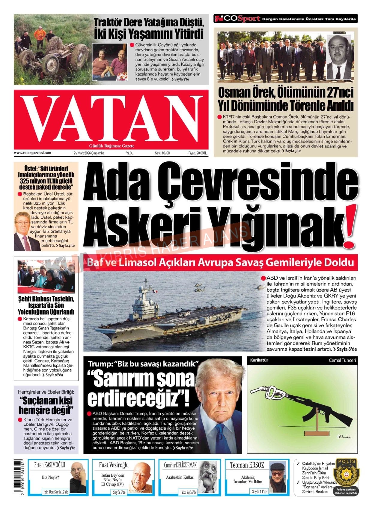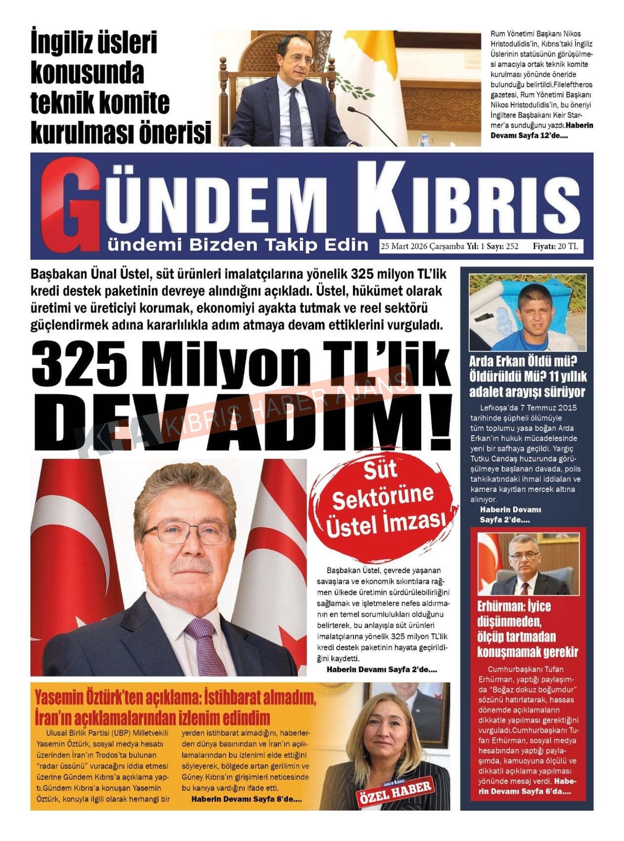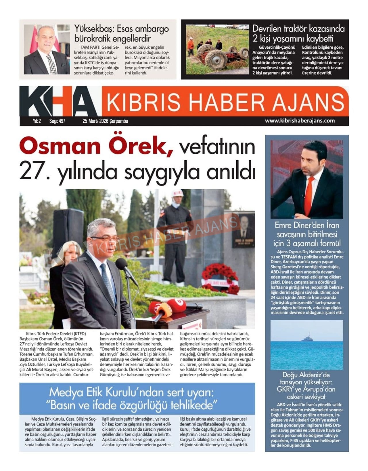 Sitede yayınlanan gazetelerdeki içeriklerden gazete sahipleri sorumludur. Yayınlanan gazeteler ve içeriklerinden Kıbrıs Haber Ajans ve Ajans Cyprus sorumlu tutulamaz.