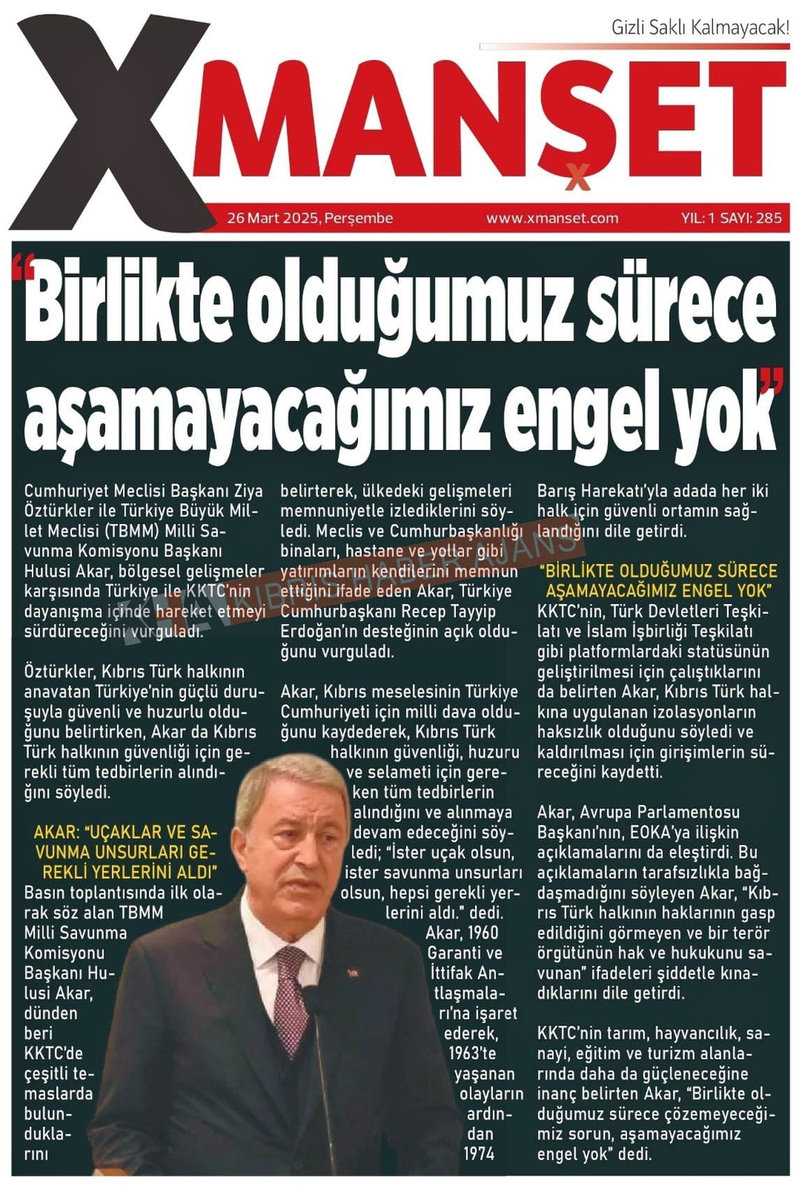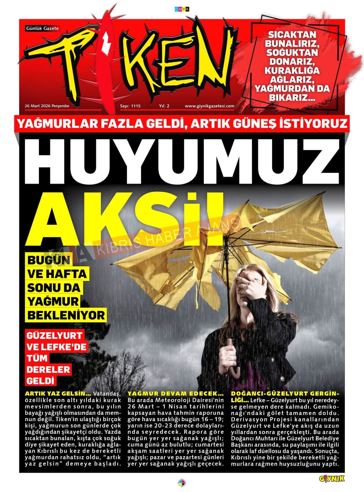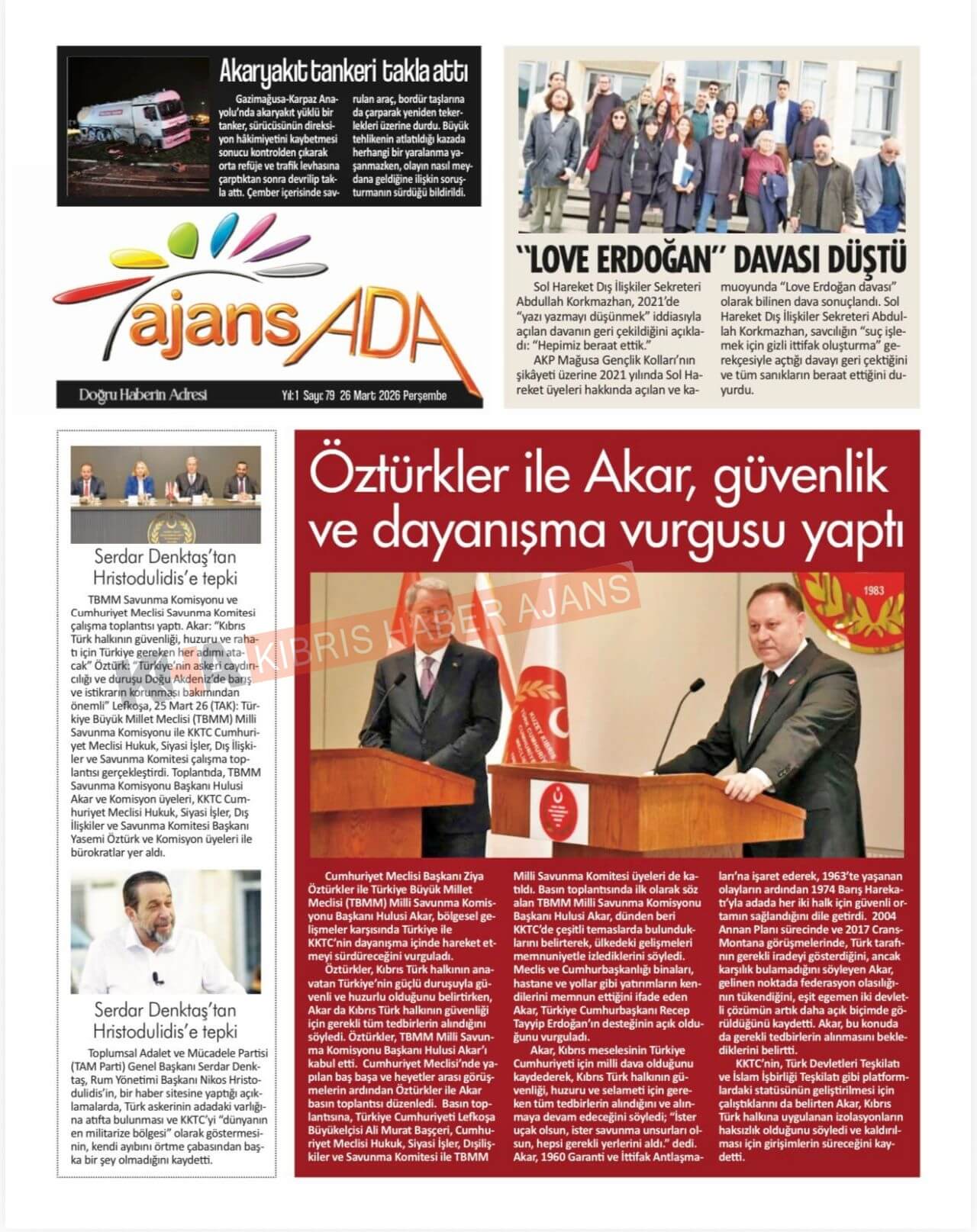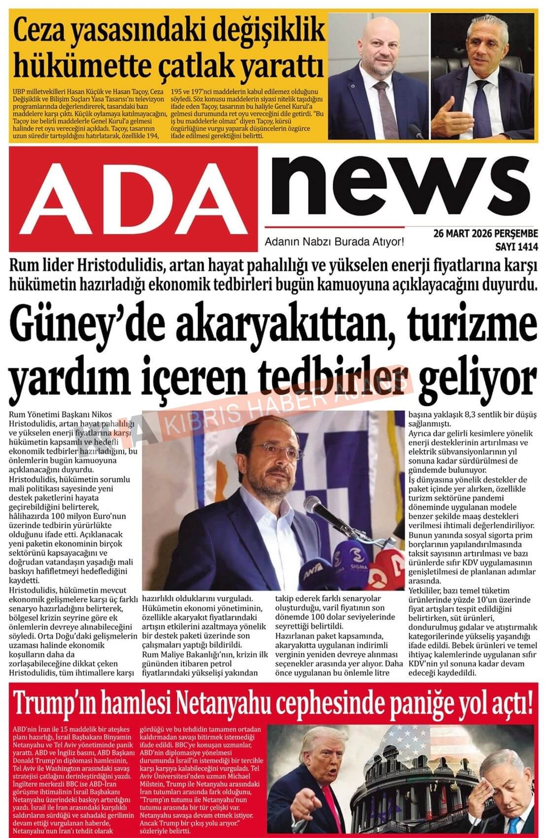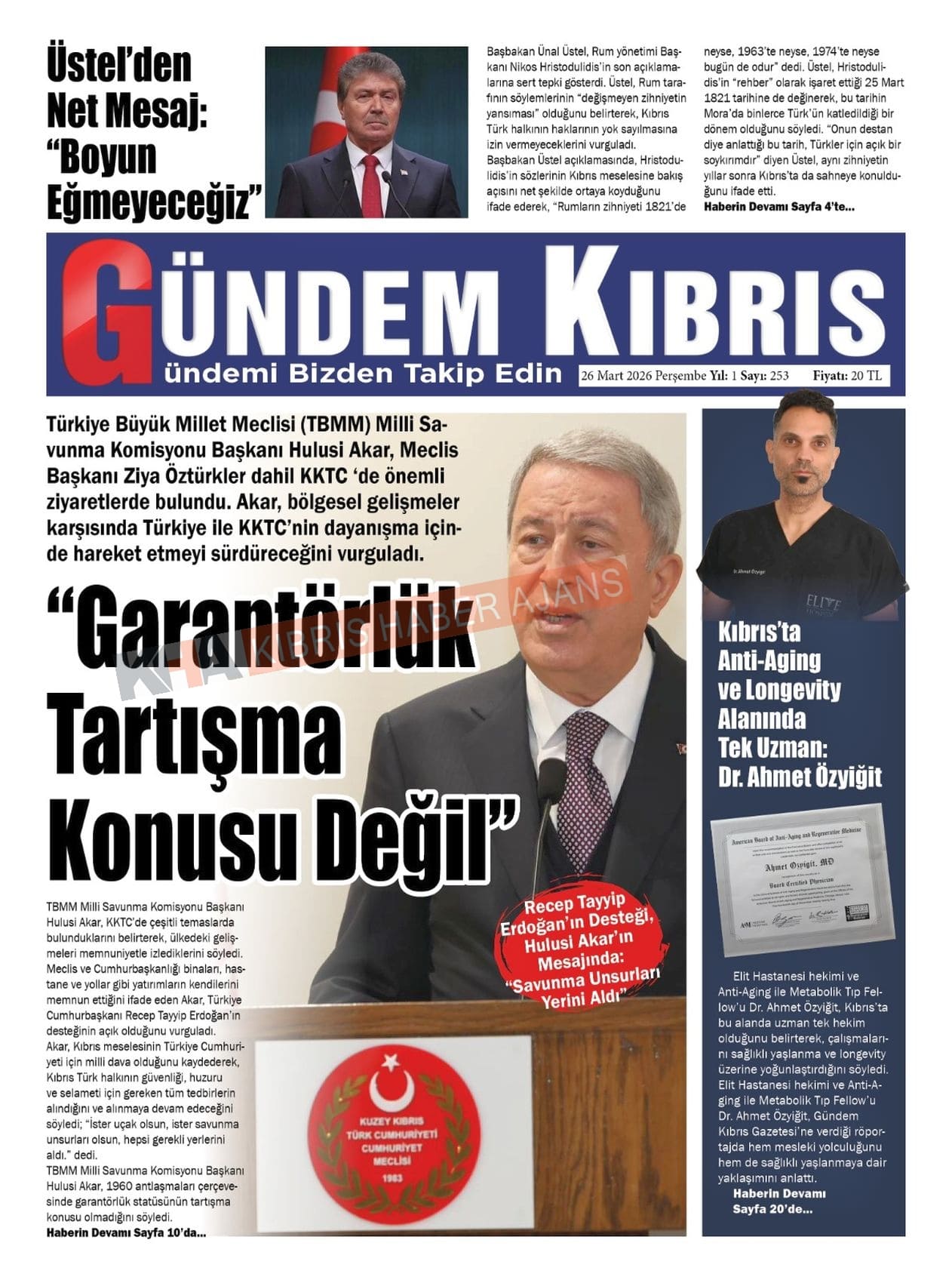 Sitede yayınlanan gazetelerdeki içeriklerden gazete sahipleri sorumludur. Yayınlanan gazeteler ve içeriklerinden Kıbrıs Haber Ajans ve Ajans Cyprus sorumlu tutulamaz.