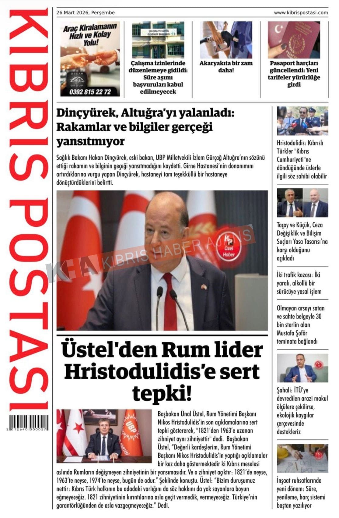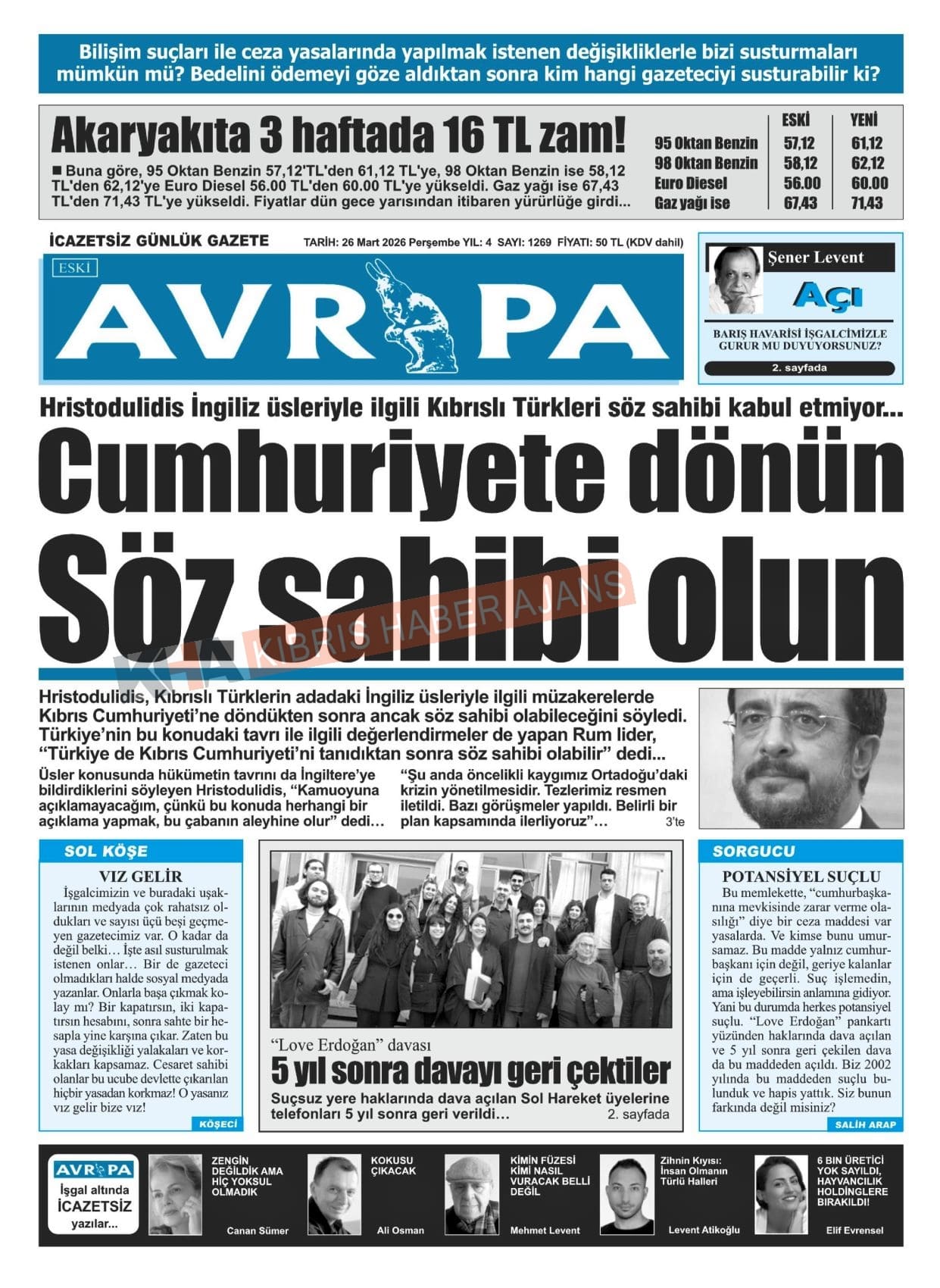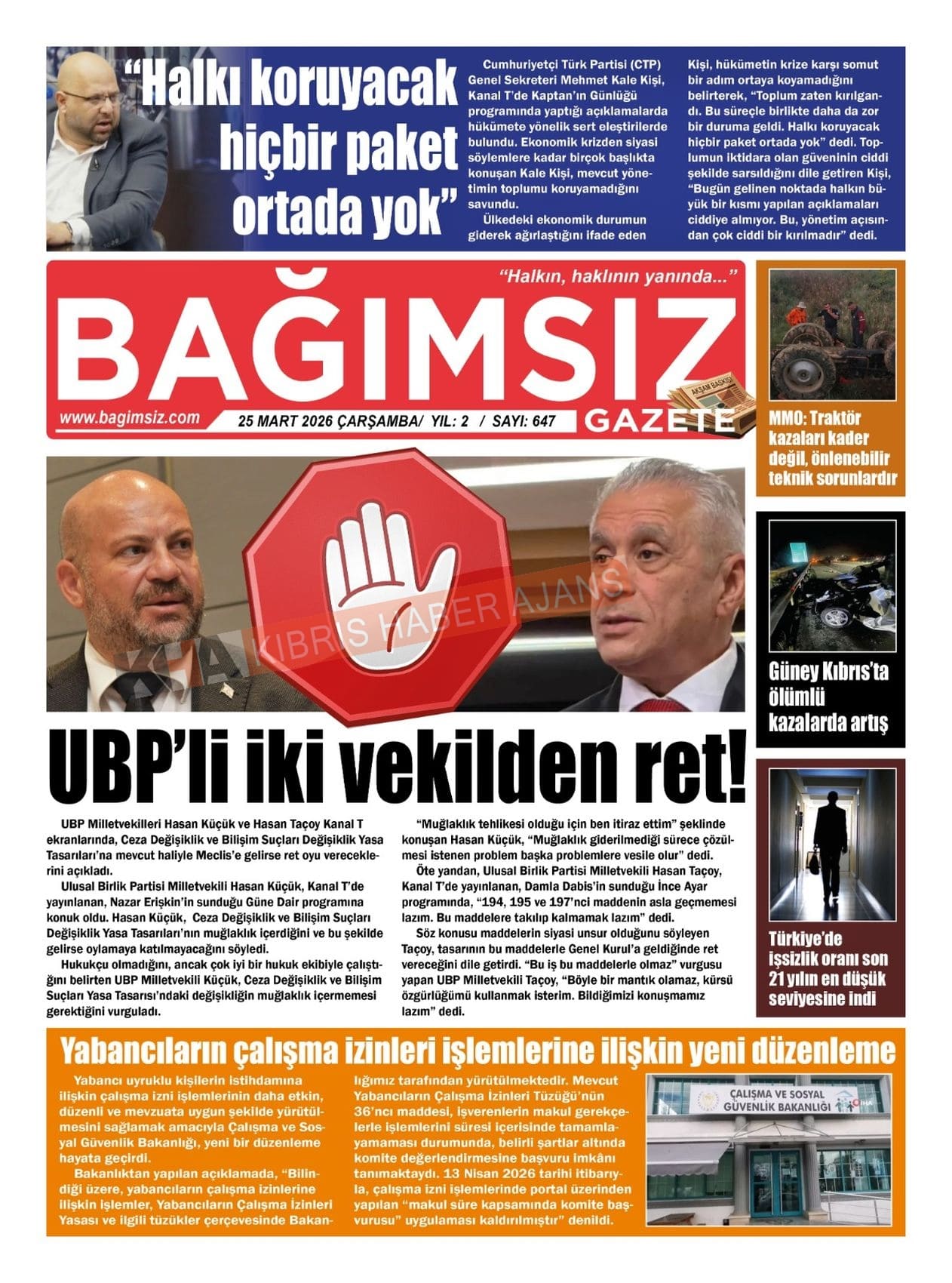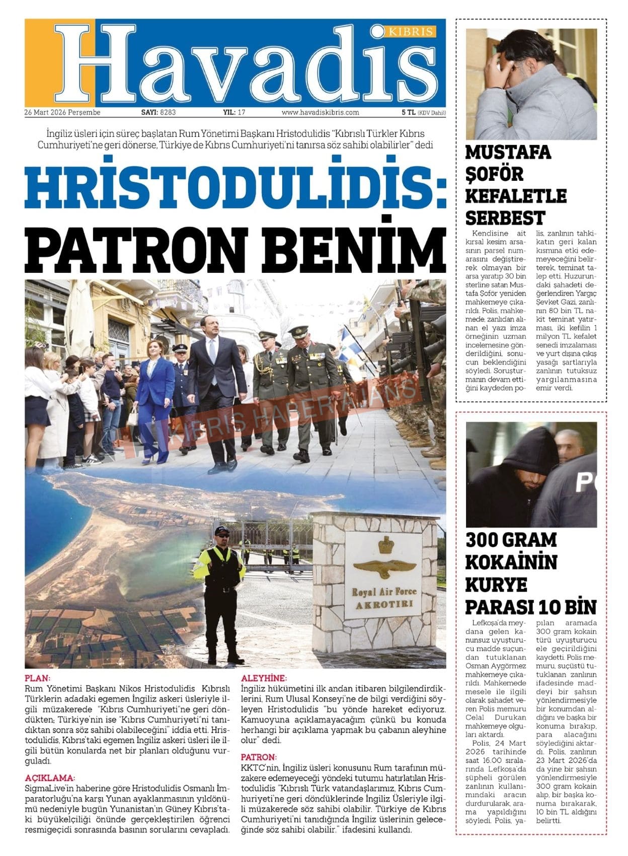 Sitede yayınlanan gazetelerdeki içeriklerden gazete sahipleri sorumludur. Yayınlanan gazeteler ve içeriklerinden Kıbrıs Haber Ajans ve Ajans Cyprus sorumlu tutulamaz.