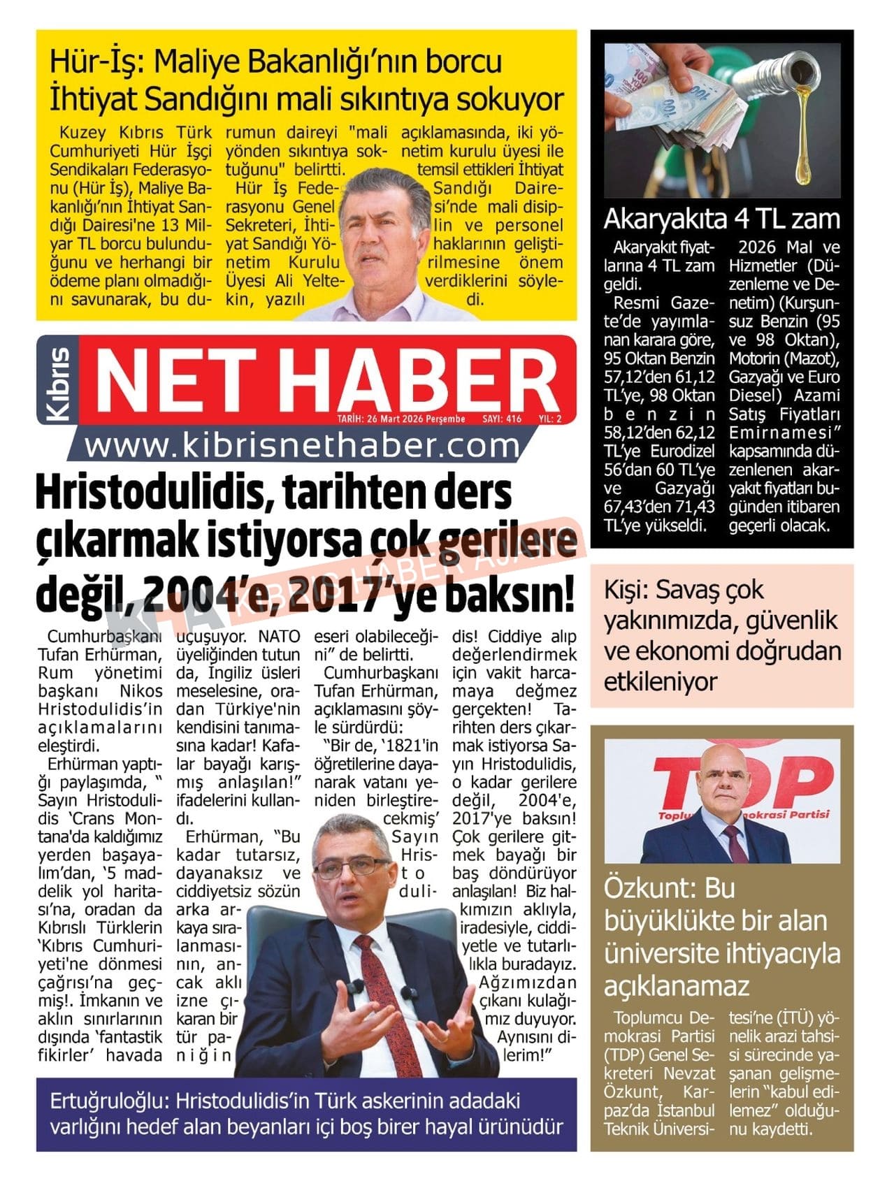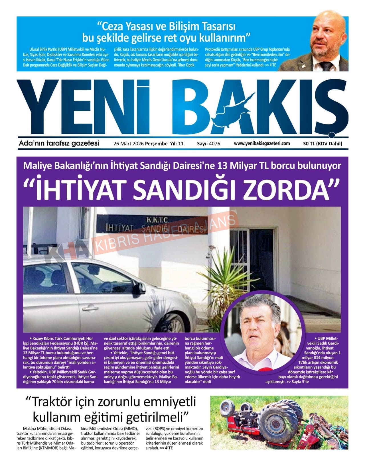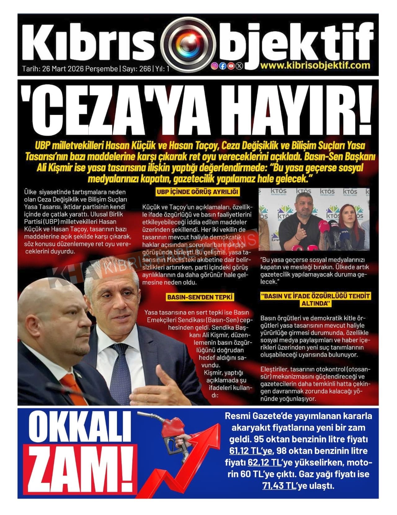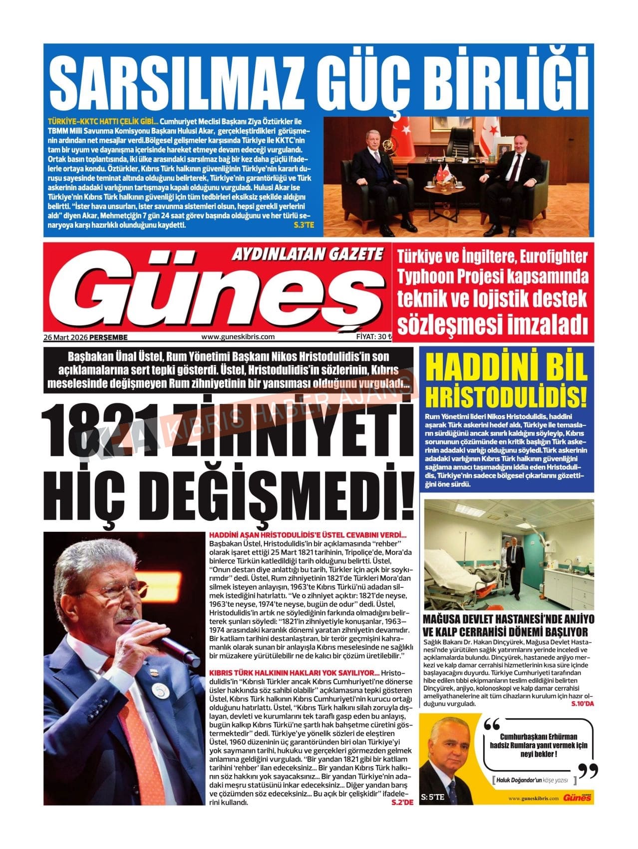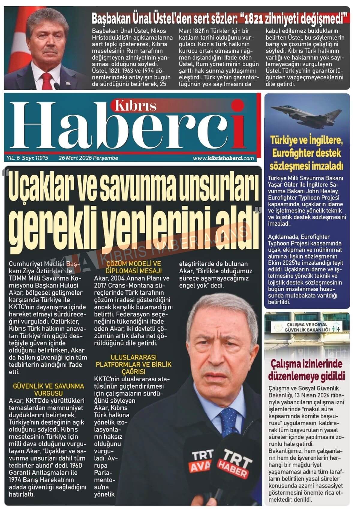 Sitede yayınlanan gazetelerdeki içeriklerden gazete sahipleri sorumludur. Yayınlanan gazeteler ve içeriklerinden Kıbrıs Haber Ajans ve Ajans Cyprus sorumlu tutulamaz.