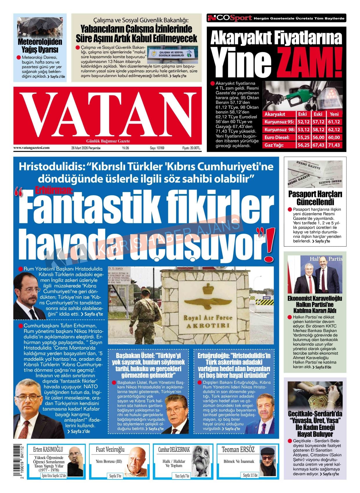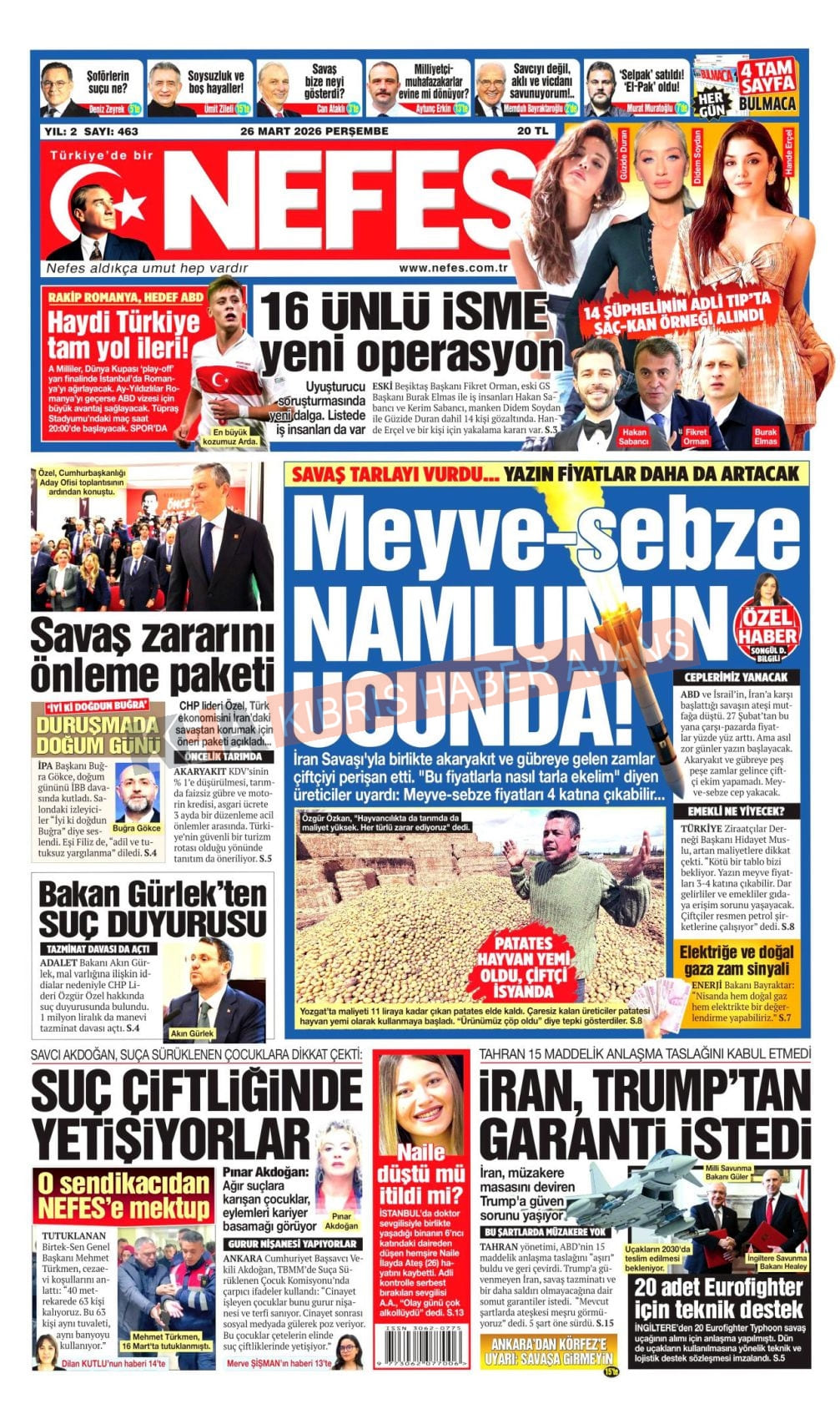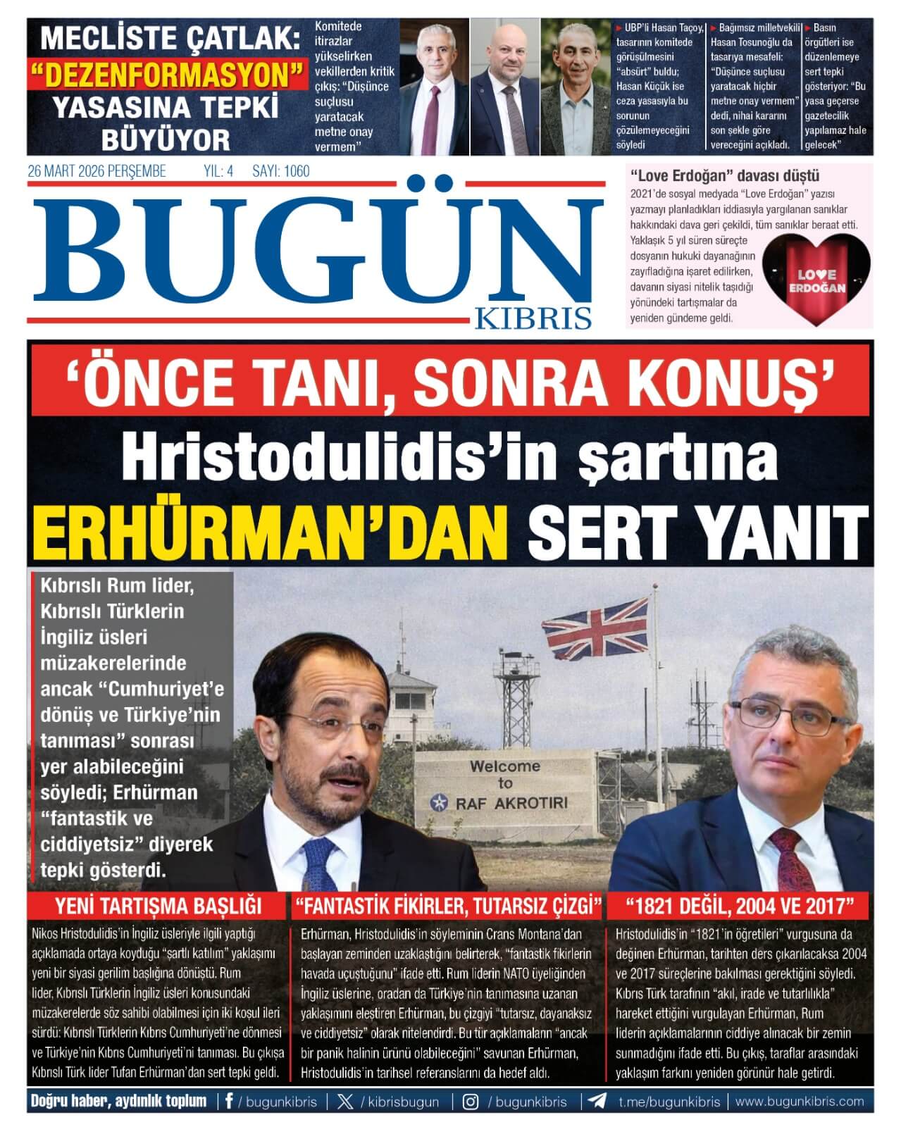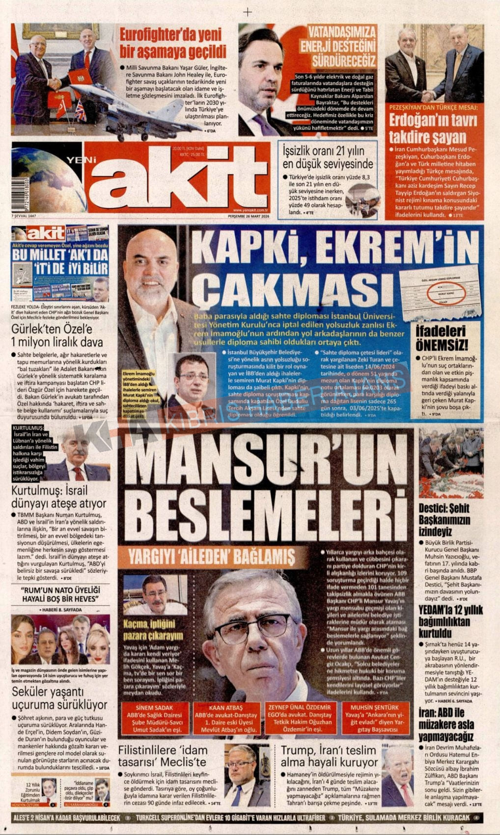 Sitede yayınlanan gazetelerdeki içeriklerden gazete sahipleri sorumludur. Yayınlanan gazeteler ve içeriklerinden Kıbrıs Haber Ajans ve Ajans Cyprus sorumlu tutulamaz.