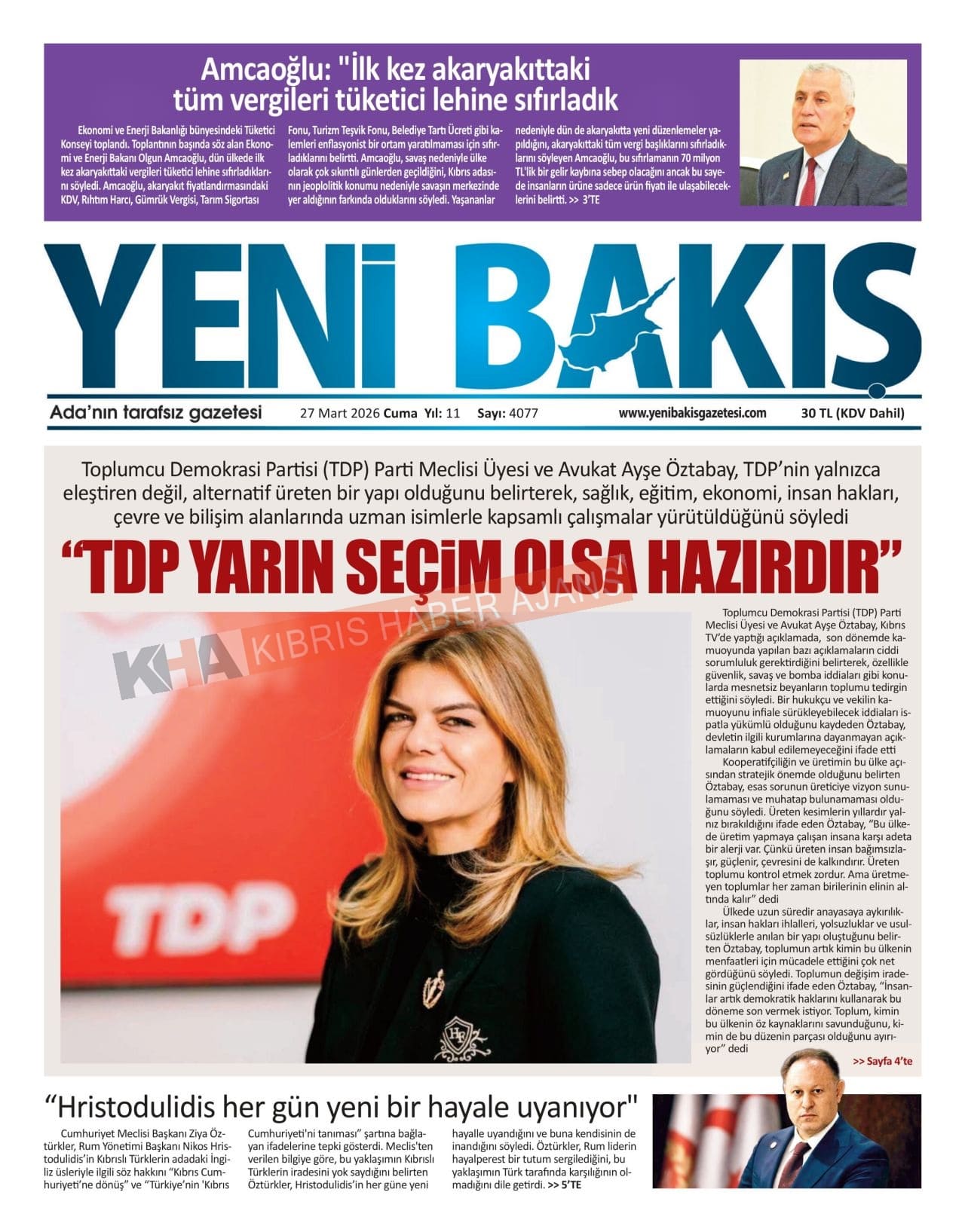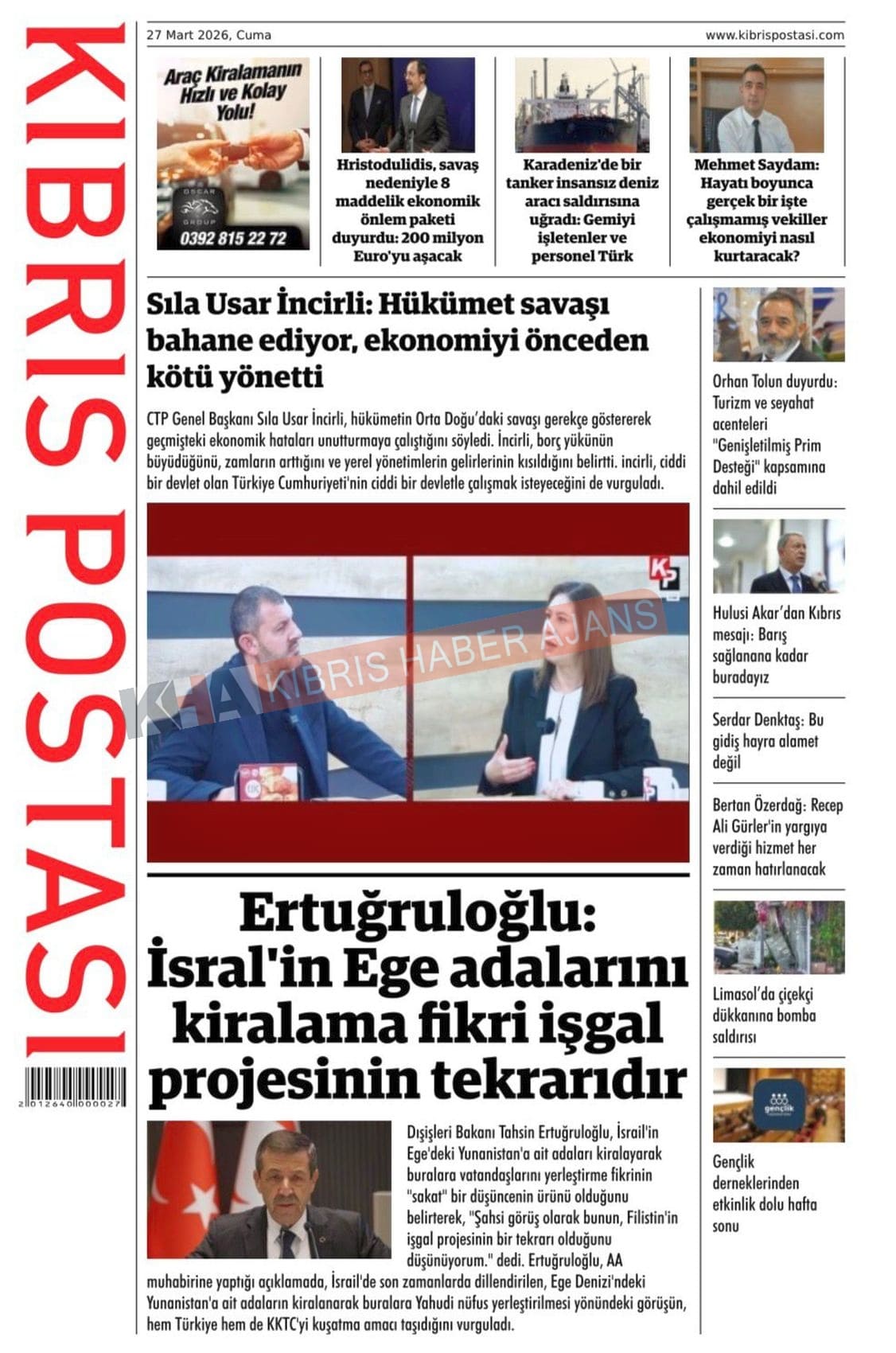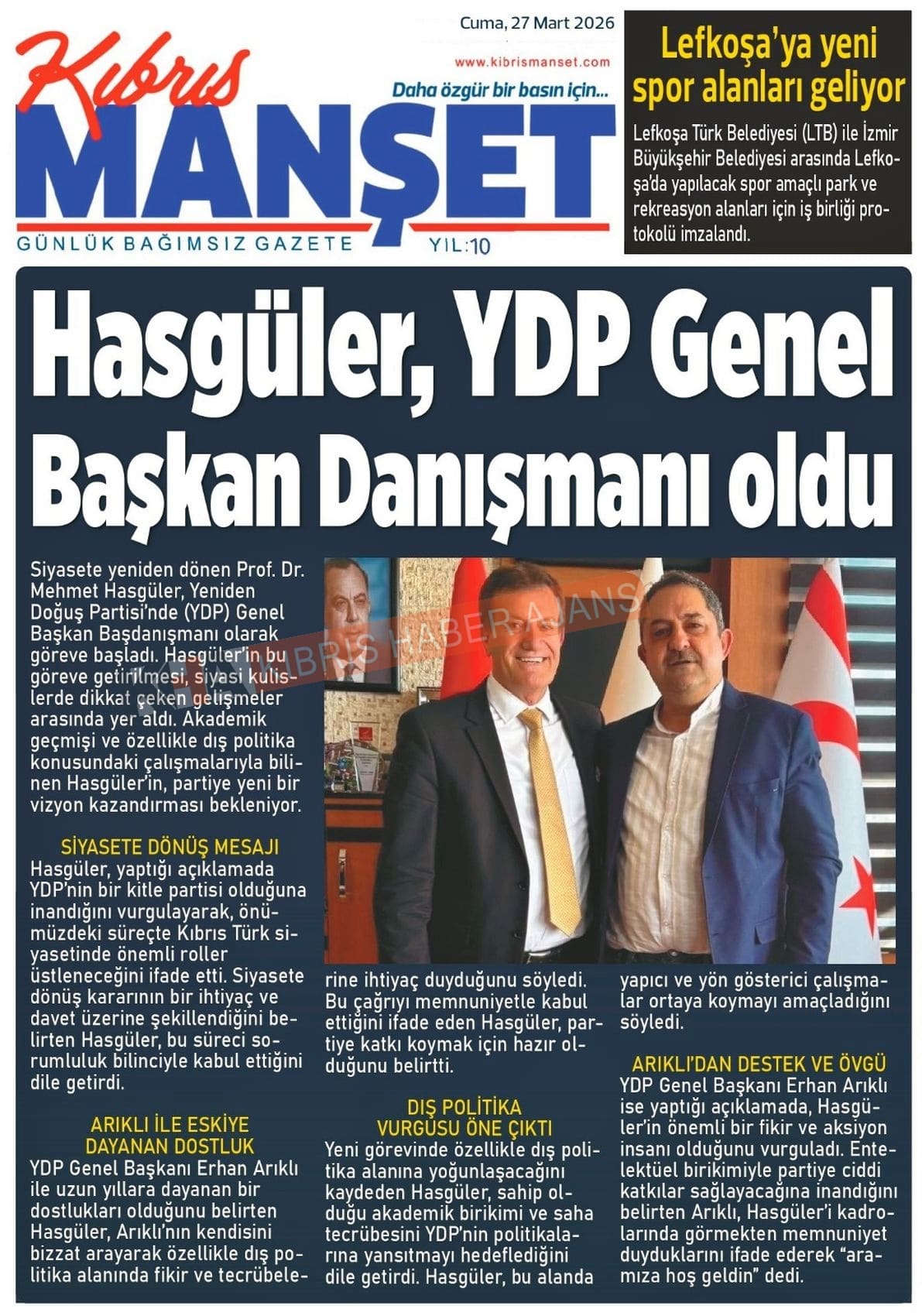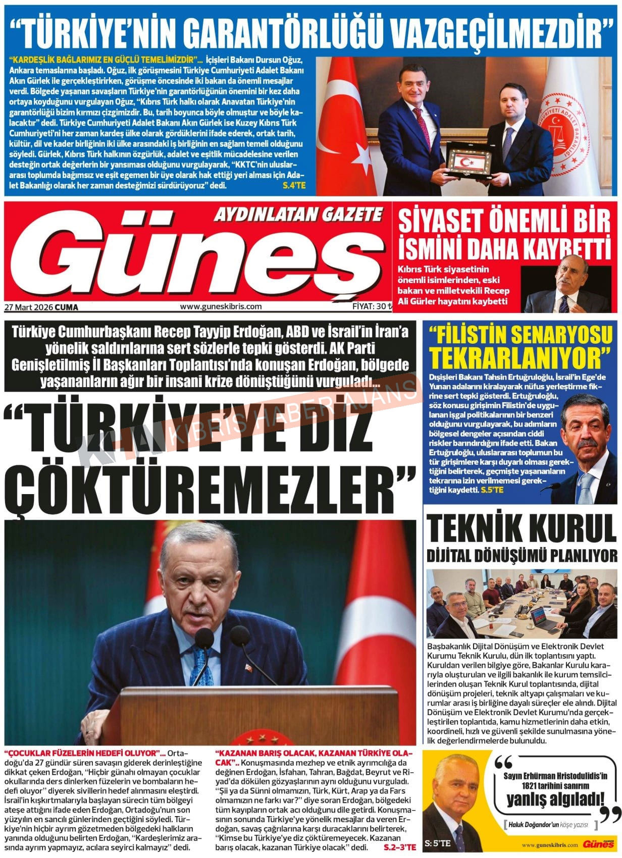 KKTC-TC Gazetelerinde Bugün (27 MART 2026)