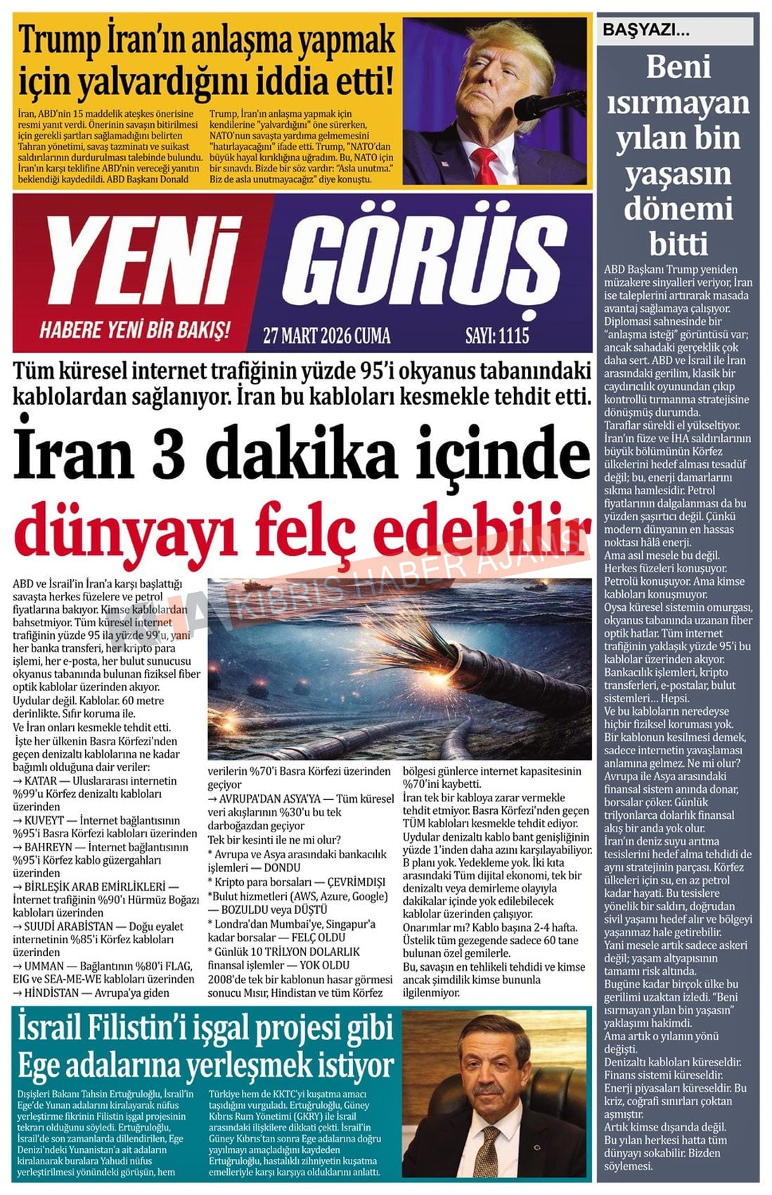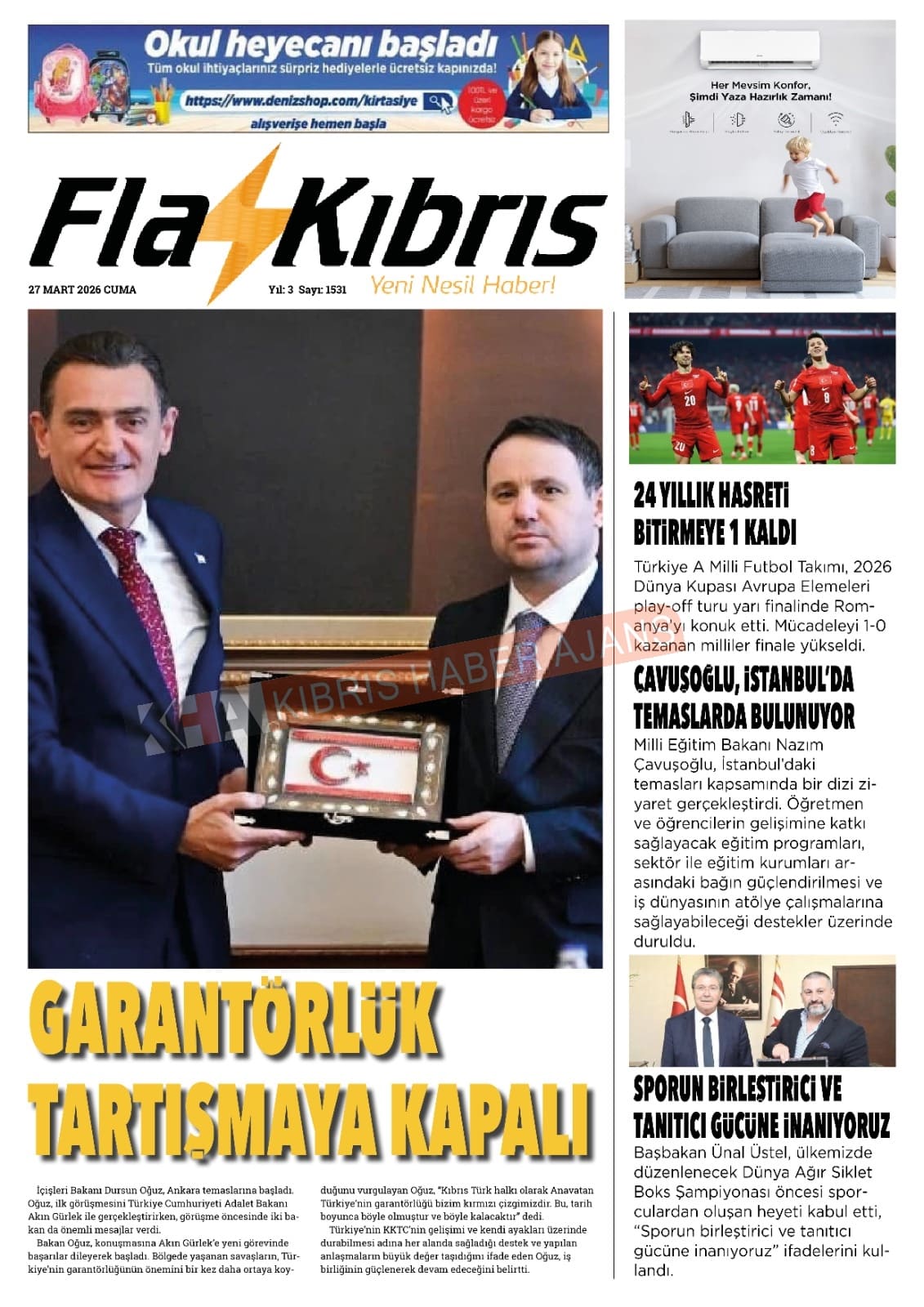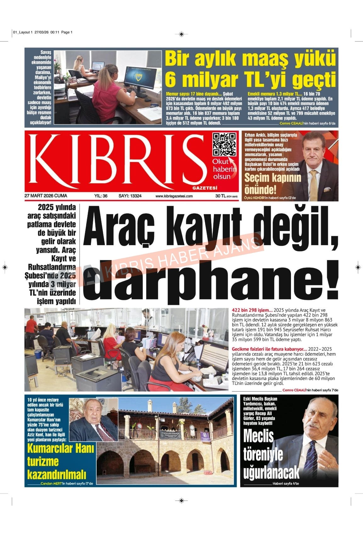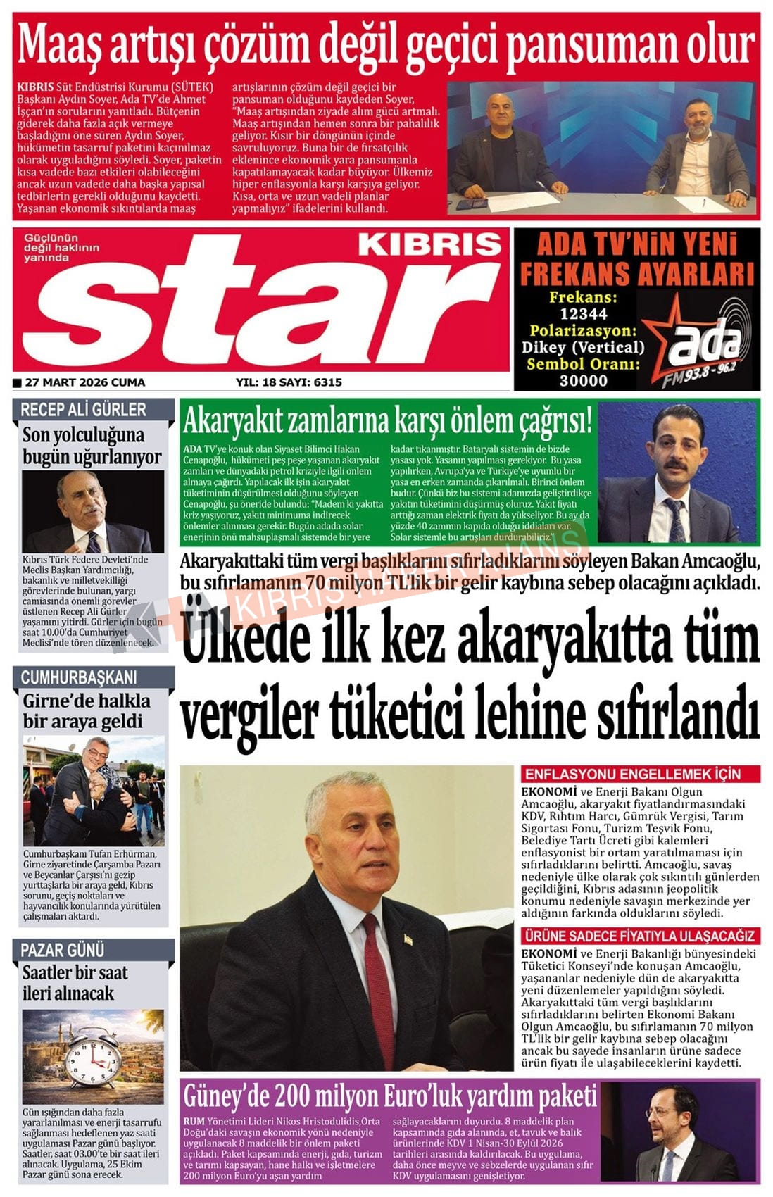 KKTC-TC Gazetelerinde Bugün (27 MART 2026)