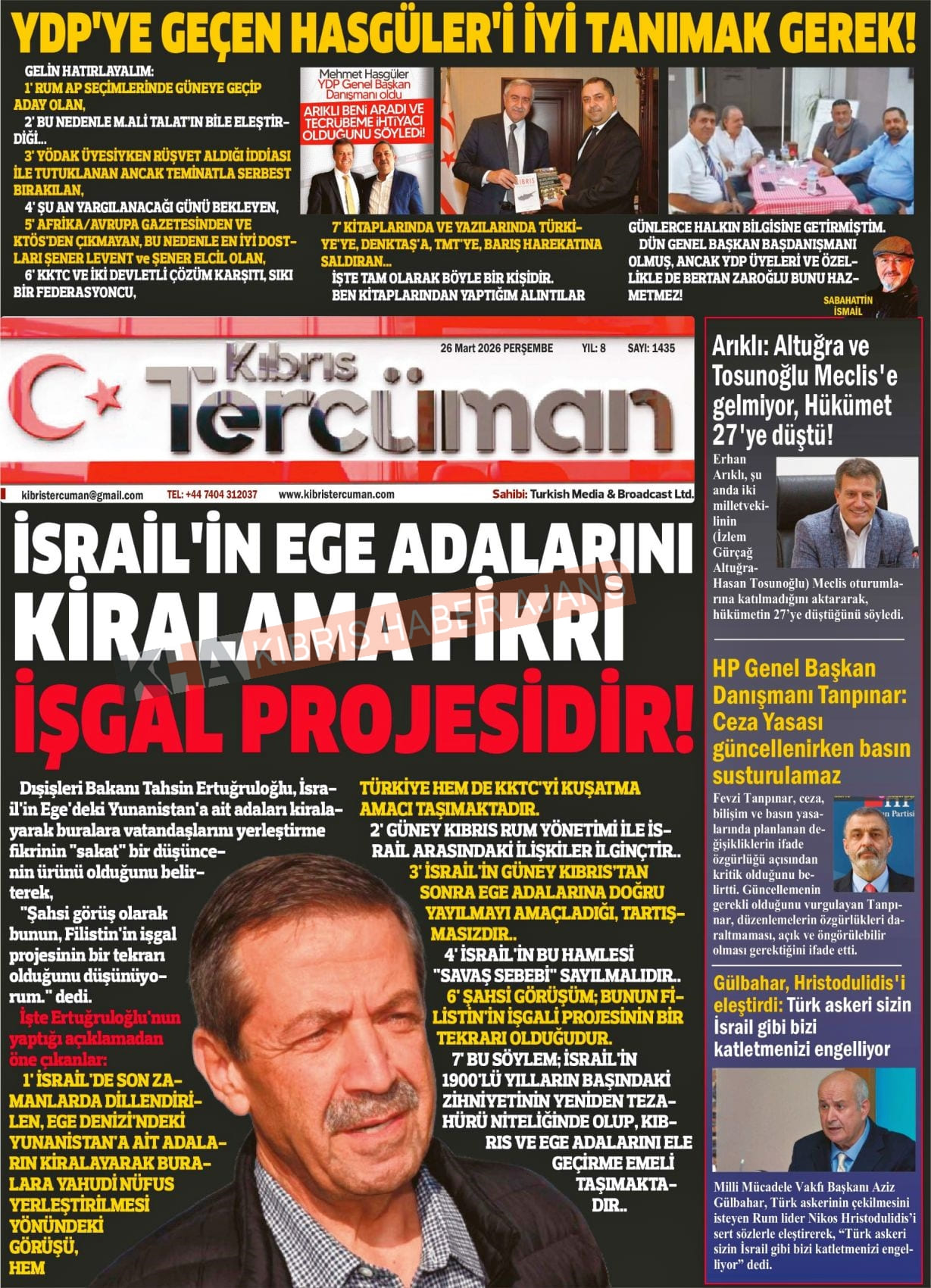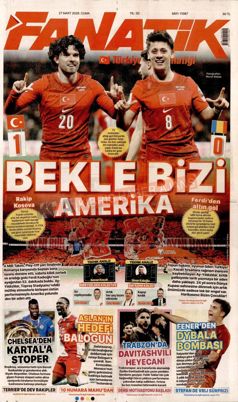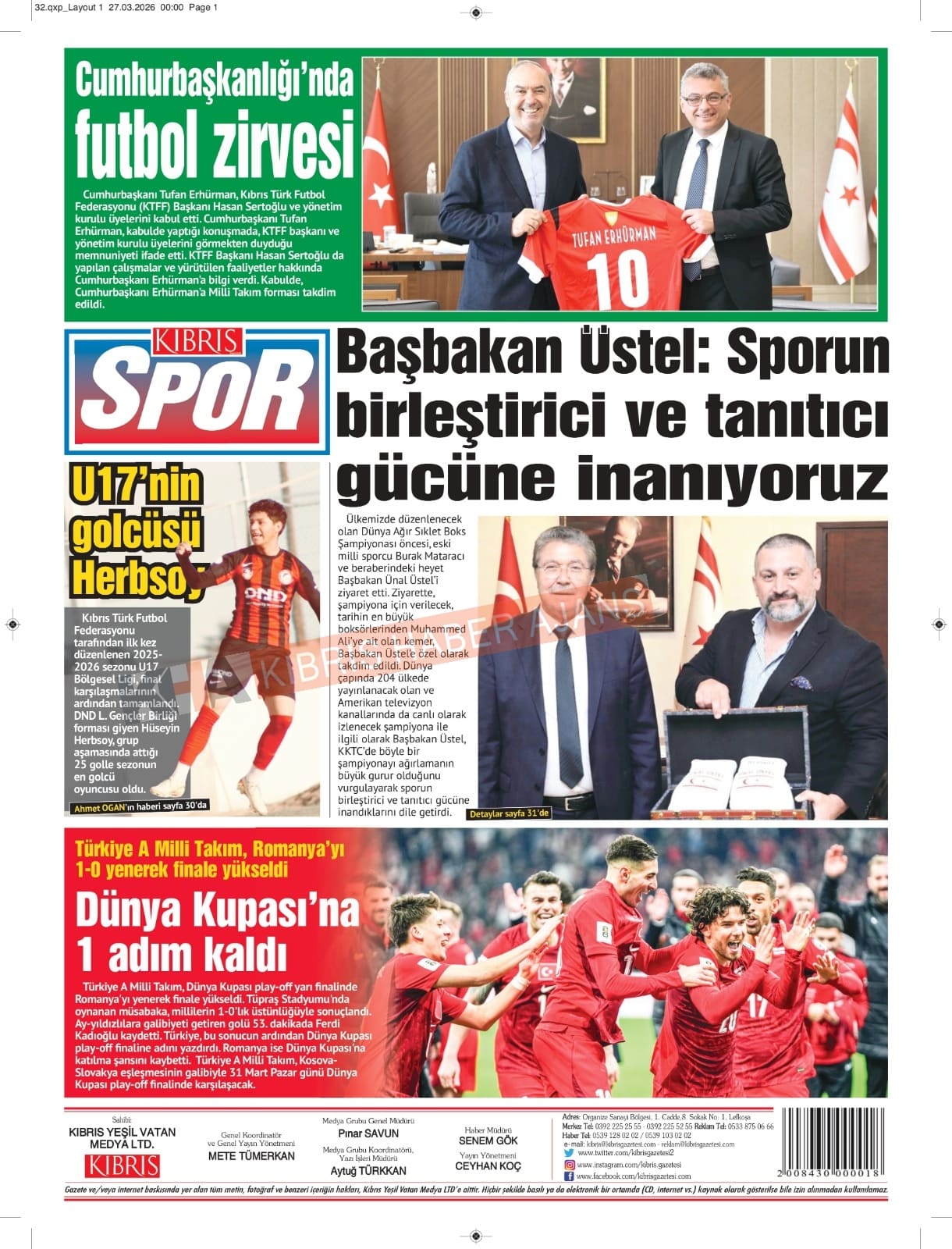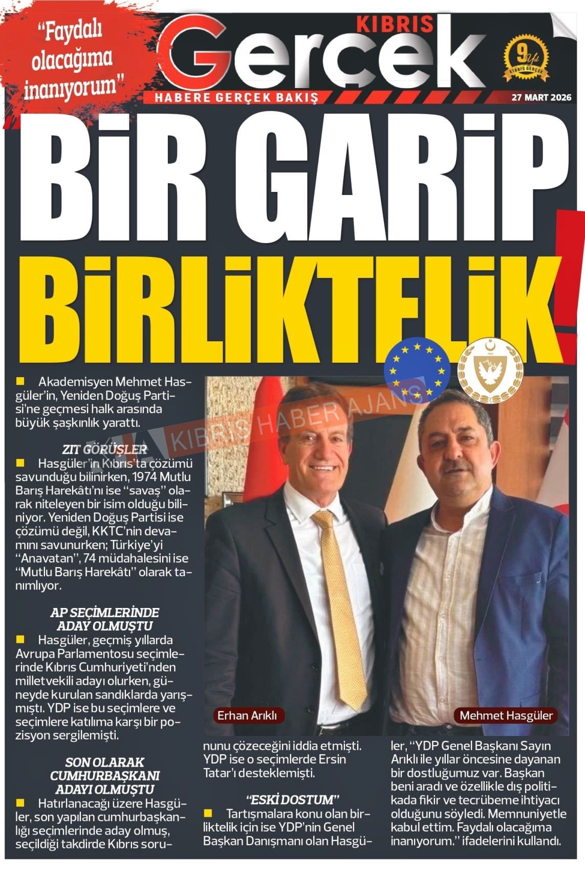 KKTC-TC Gazetelerinde Bugün (27 MART 2026)