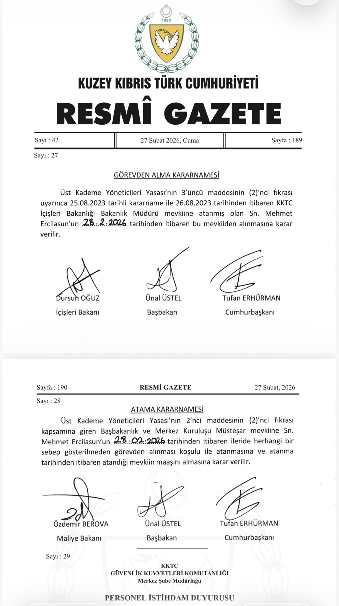 İçişleri Bakanlığı Bakanlık Müdürü Mehmet Ercilasun, Başbakanlık ve Merkez Kuruluşu Müsteşarlığı görevine atandı. Atama kararı, bugün yayımlanan Resmi Gazete ile resmiyet kazandı.