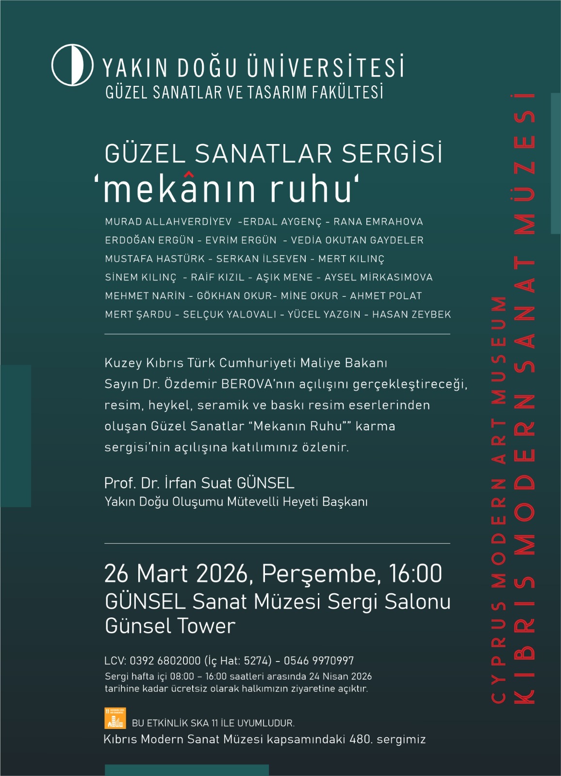 Kıbrıs Modern Sanat Müzesi’nin 480’inci sergisi olma özelliği taşıyan organizasyonun küratörlüğünü, Yakın Doğu Üniversitesi Rektör Danışmanı ve GÜNSEL Sanat Müzesi Müdürü Prof. Erdoğan Ergün üstleniyor.