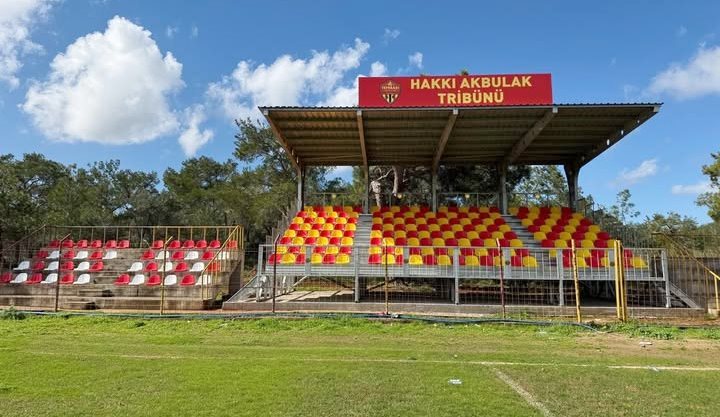 Bu bağlamda eski tribünleri tribün sandalyesi ile güzelleştirdik. Yeni yapılan tribüne kuruluştan itibaren kulübümüze ve köyümüze gerek sporcu gerek öğretmen gerekse müdür olarak sayısız hizmeti geçen Hakkı Akbulak hocamızın ismini verdik.”
