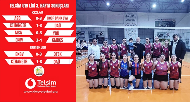 Voleybol Liglerinde 19. hafta programı içerisinde yer alan Telsim U19 Liglerinde 3. hafta müsabakaları dün akşam Mağusa ve Erenköy’de oynanan 5 karşılaşma ile tamamlandı.