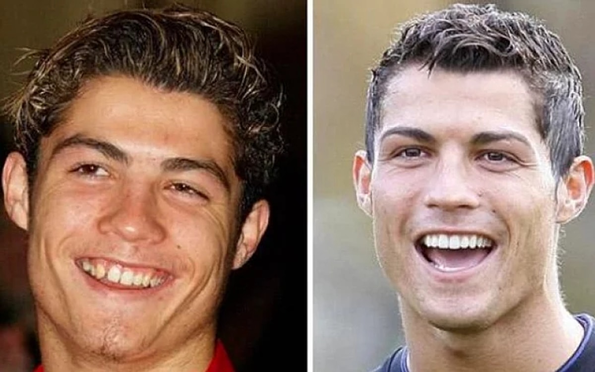 2. Cristiano Ronaldo: İşte tam bir “neydim ne oldum” karesi! Dünya starı Ronaldo, estetiğin bir insanı nasıl baştan yaratabileceğinin en somut kanıtı. Dişlerinden yüz hattına kadar yapılan şok edici değişim, magazin haberleri dünyasında hala ders niyetine okutuluyor.