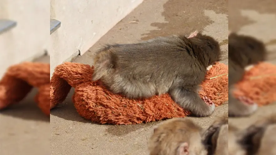 Hayvanat bahçesi yetkilileri, yaklaşık bir ay önce Punch’ı kademeli olarak diğer makak grubuna dahil etmeye başladı. Ancak anne bakımından mahrum kalması nedeniyle özgüven eksikliği yaşayan küçük maymun, sürünün içine girdiğinde de oyuncağını yanından ayırmıyor.